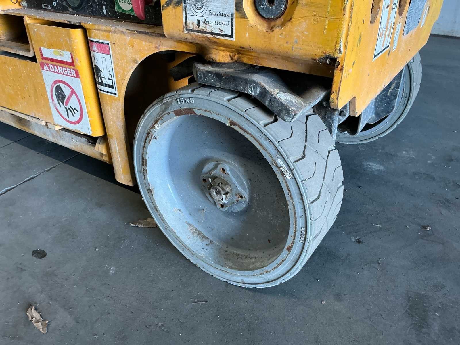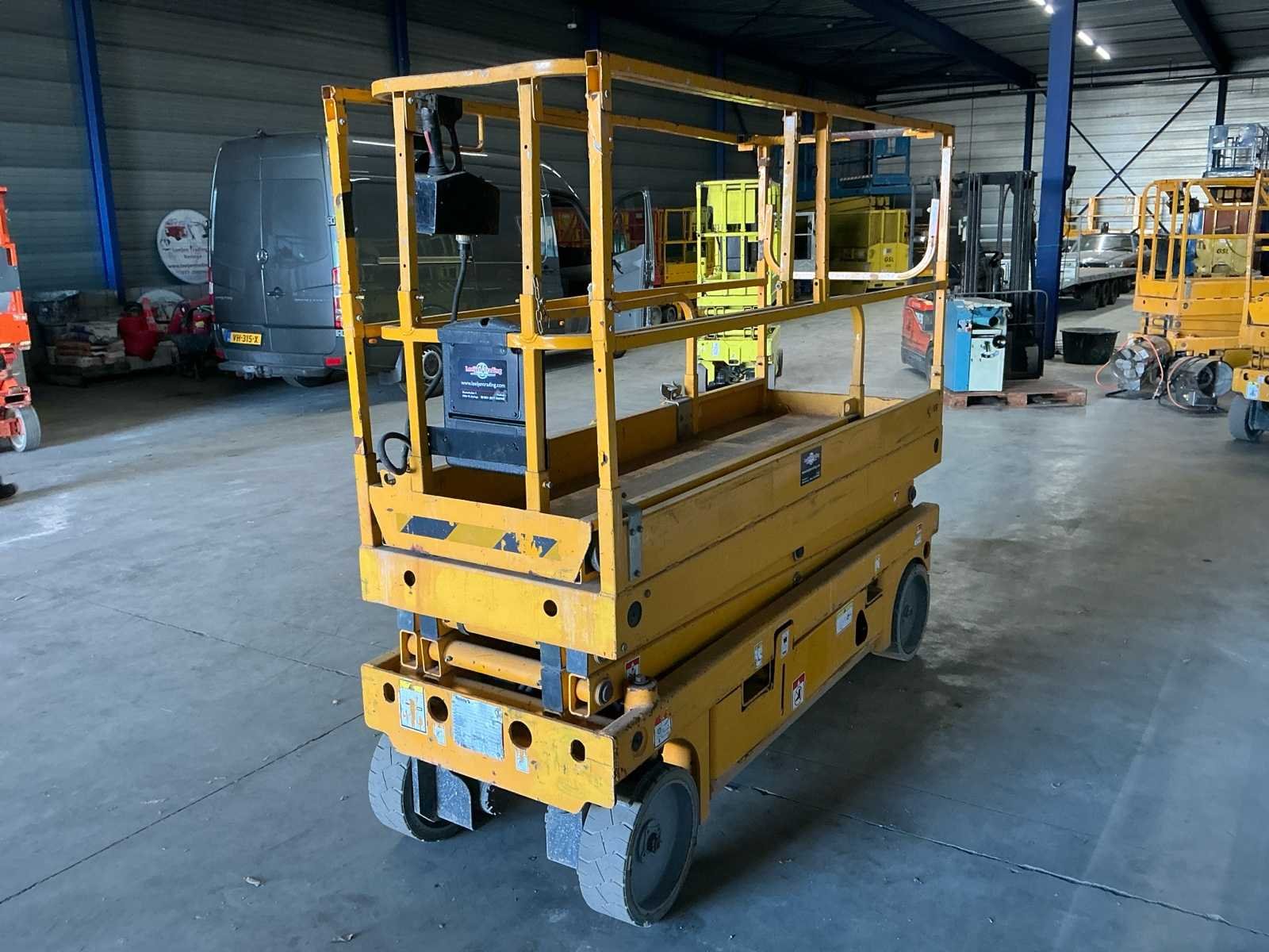 Voorzien van: batterijlaadindicator, proportionele hef- en aandrijffunctie, verwijderbare bedieningskast in het platform, uitklapbare componentenbak, geïntrigeerde batterijlader met automatische stop, vrijloopmechanisme, laadbeheersysteem in het platform, handmatig ventiel voor het laten zakken van het platform, geïntegreerde vorkheftruckvakken, trekhaken, claxon, urenteller, werkhoogte 8,25 m, platformhoogte 6,25 m, hefcapaciteit - binnen 450 kg, platformlengte - buiten 2,30 m, platformlengte - uitgeschoven 3,22 m, opbergoogte - ingeklapt 2,14 m, draaicirkel - buiten 2,50m, banden - non-marking, gewicht 1655 No Merk: Haulotte Type: Compact 8 Bouwjaar: 2012 Serienummer: CE147349 Elektrisch: true Motorvermogen (kW): 3kW Schaarhoogwerker: true Platform capaciteit: 350kg Accu lader: true Afgelezen urenstand: 483 Eigen gewicht: 1655kg Totale afmeting L: 2500mm Totale afmeting Breedte: 800mm Totale afmeting Hoogte: 2000mm