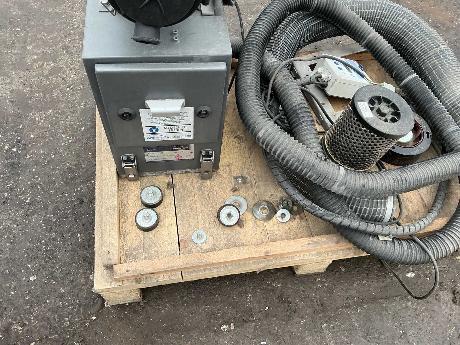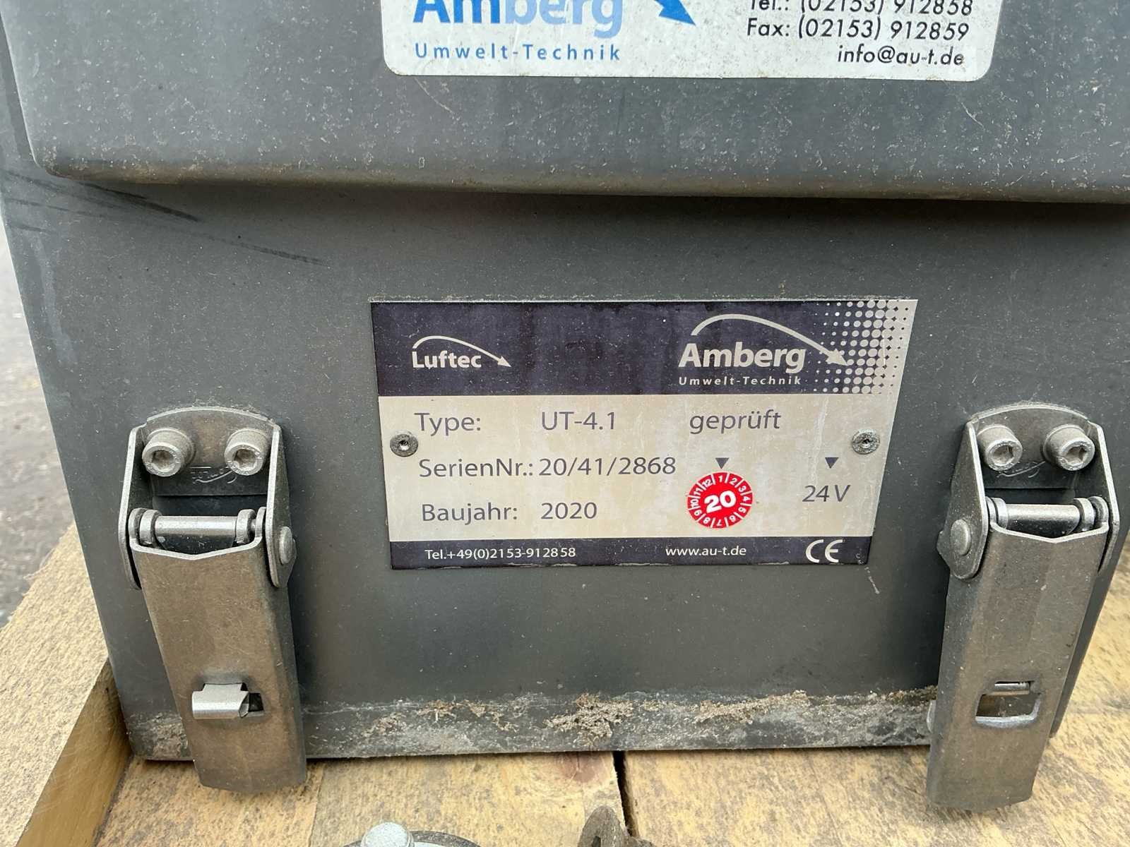 Voorzien van: Komt van Caterpillar Amberg Umwelt-Technik (Luftec) afzuigunit type UT-4.1 uit bouwjaar 2020 met serienummer 20/41/2868, 24 V uitvoering, industriële stof-/dampafzuiging met ventilator, filterelement en slangenpakket, CE-gekeurd, geschikt voor aansluiting op machines of installaties voor luchtzuivering en afzuiging. No Serienummer: r20/41/2868. Bouwjaar: 2020 Afmeting l: 650mm Afmeting b: 1000mm Afmeting h: 450mm