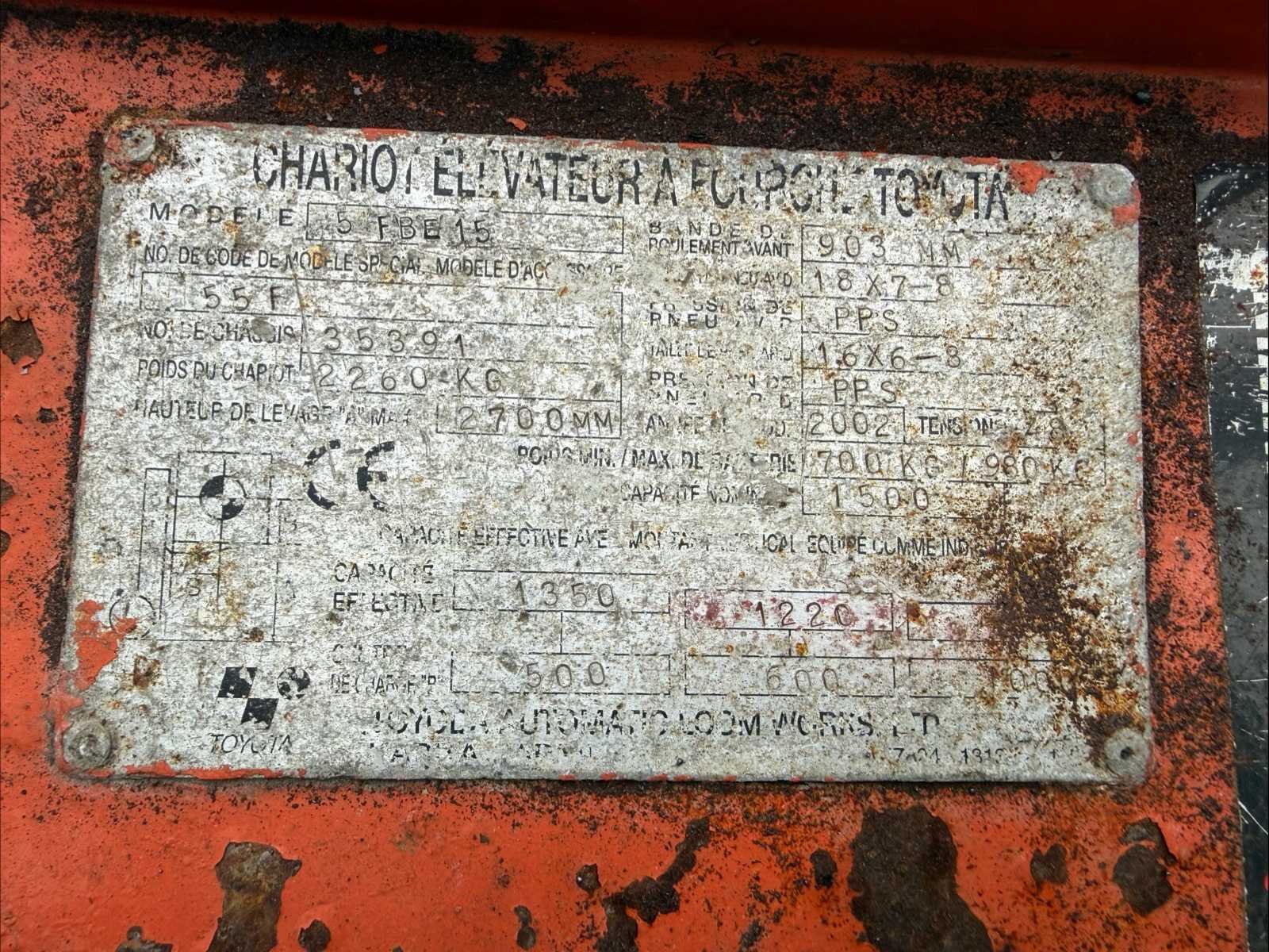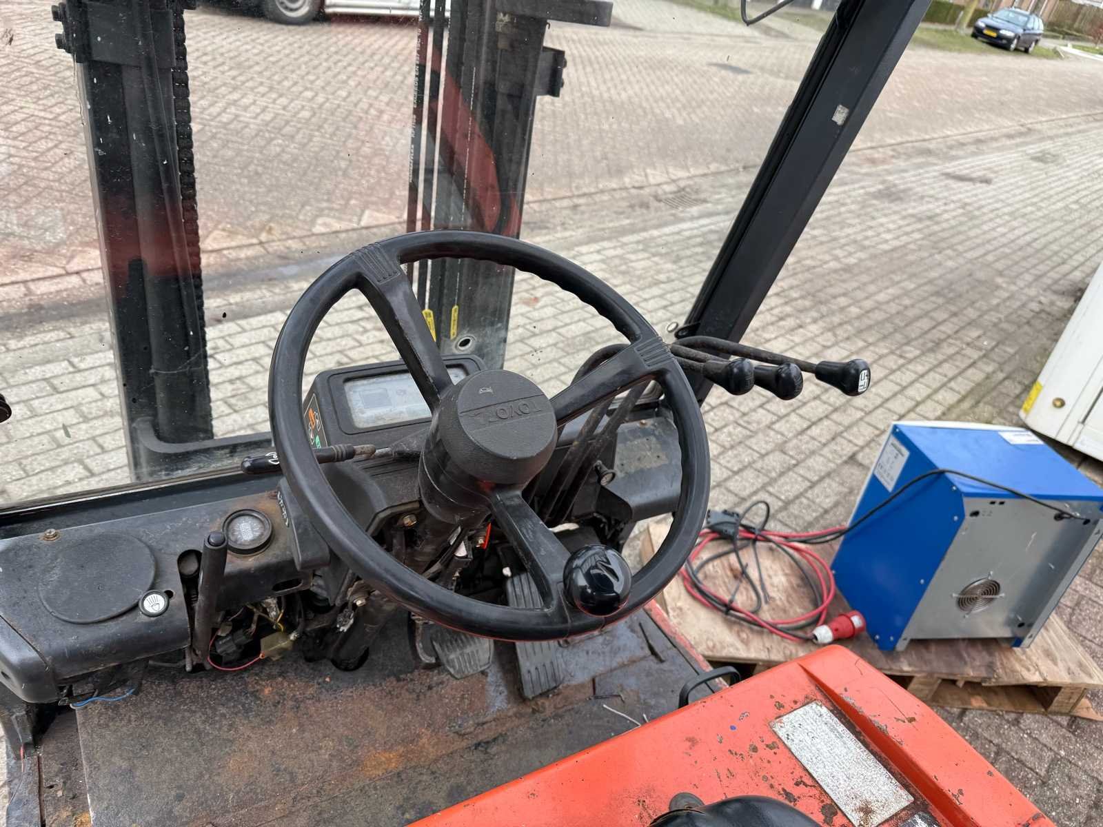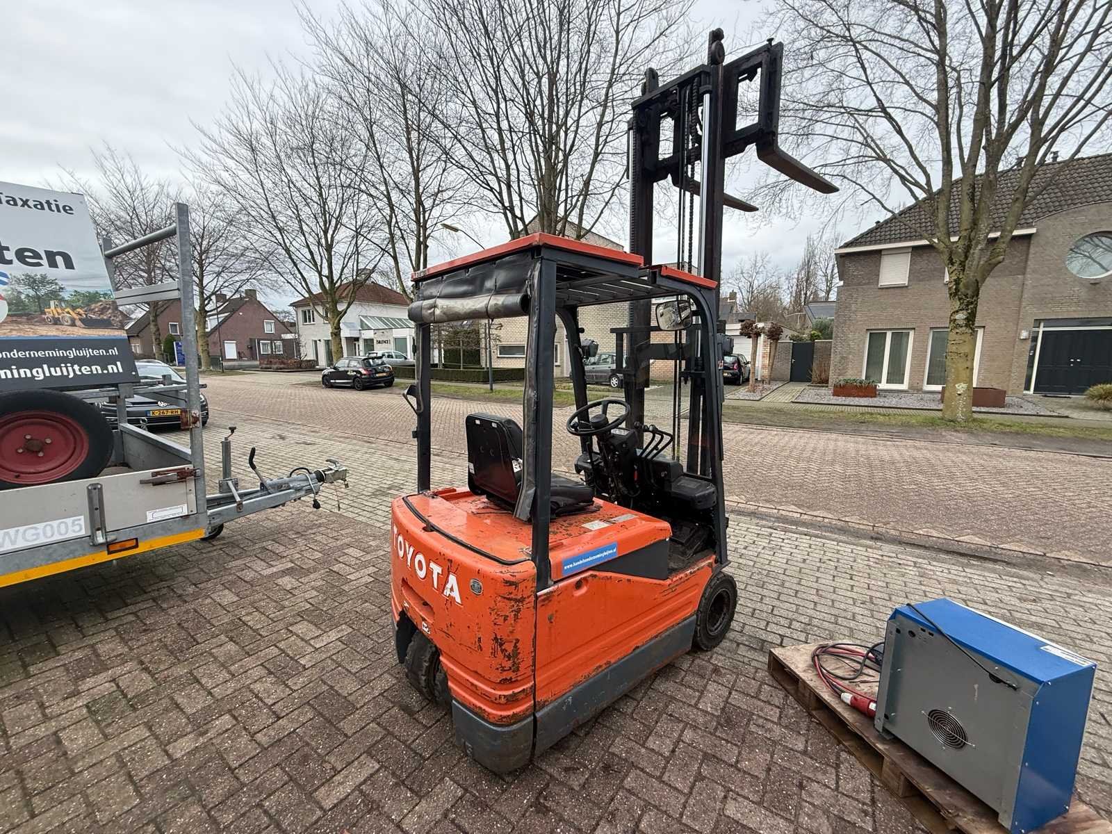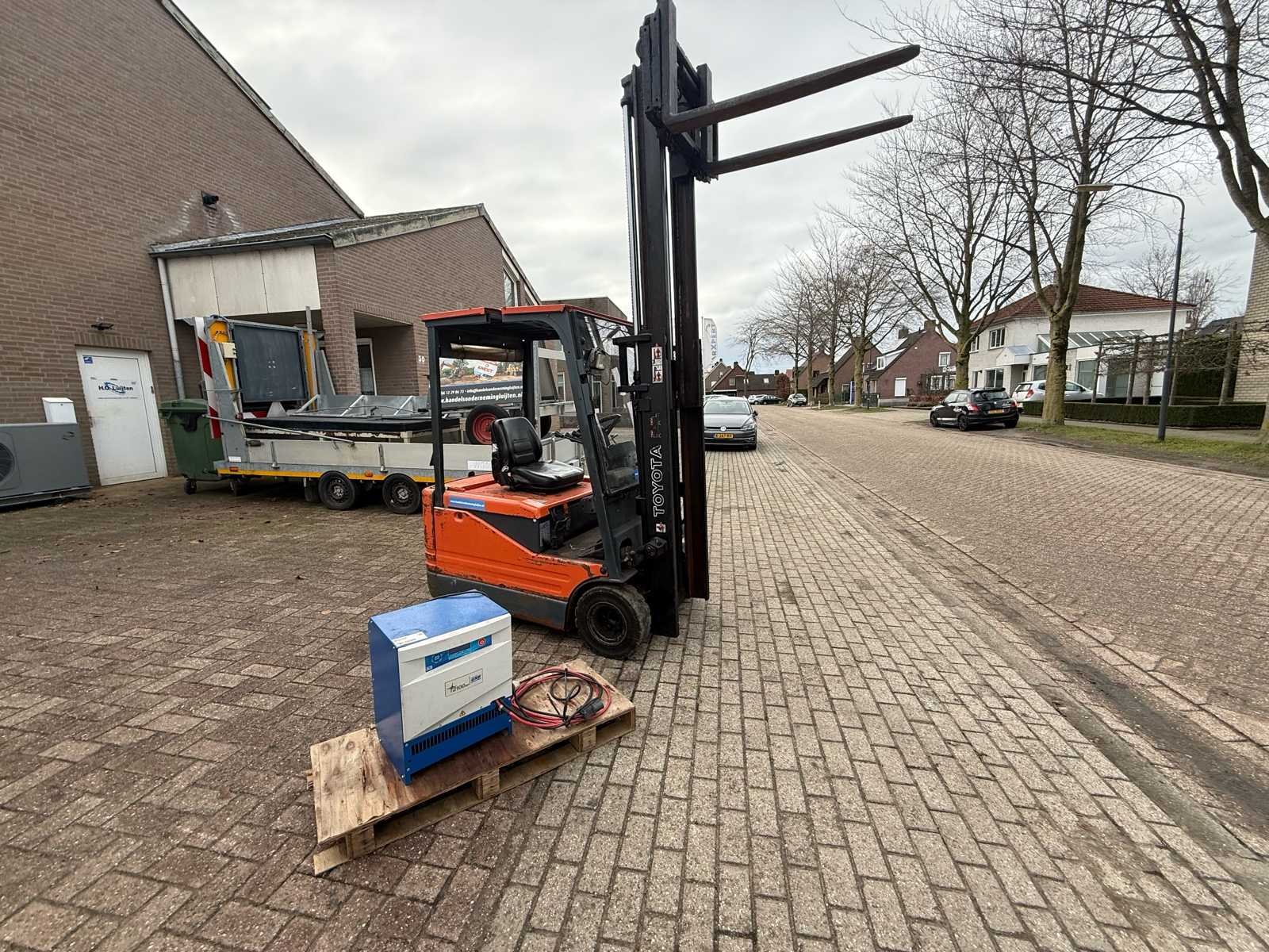 Voorzien van: side shift, duplex mast, 1500kg hef, voltage 48v, gewicht 2950kg, met acculader, No Merk: Toyota Type: 5FBE15 Bouwjaar: 2002 Brandstof: Elektrisch Mast: Duplex Soort band: Lucht Aantal wielen: 4 Afgelezen urenstand: 35696 Accu lader: true Side-shift: true Duplex mast: true Eigen gewicht: 2950kg Hefvermogen: 1500kg Lepellengte: 1000mm Luchtbanden: true
