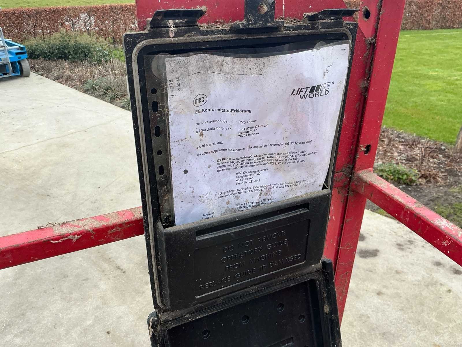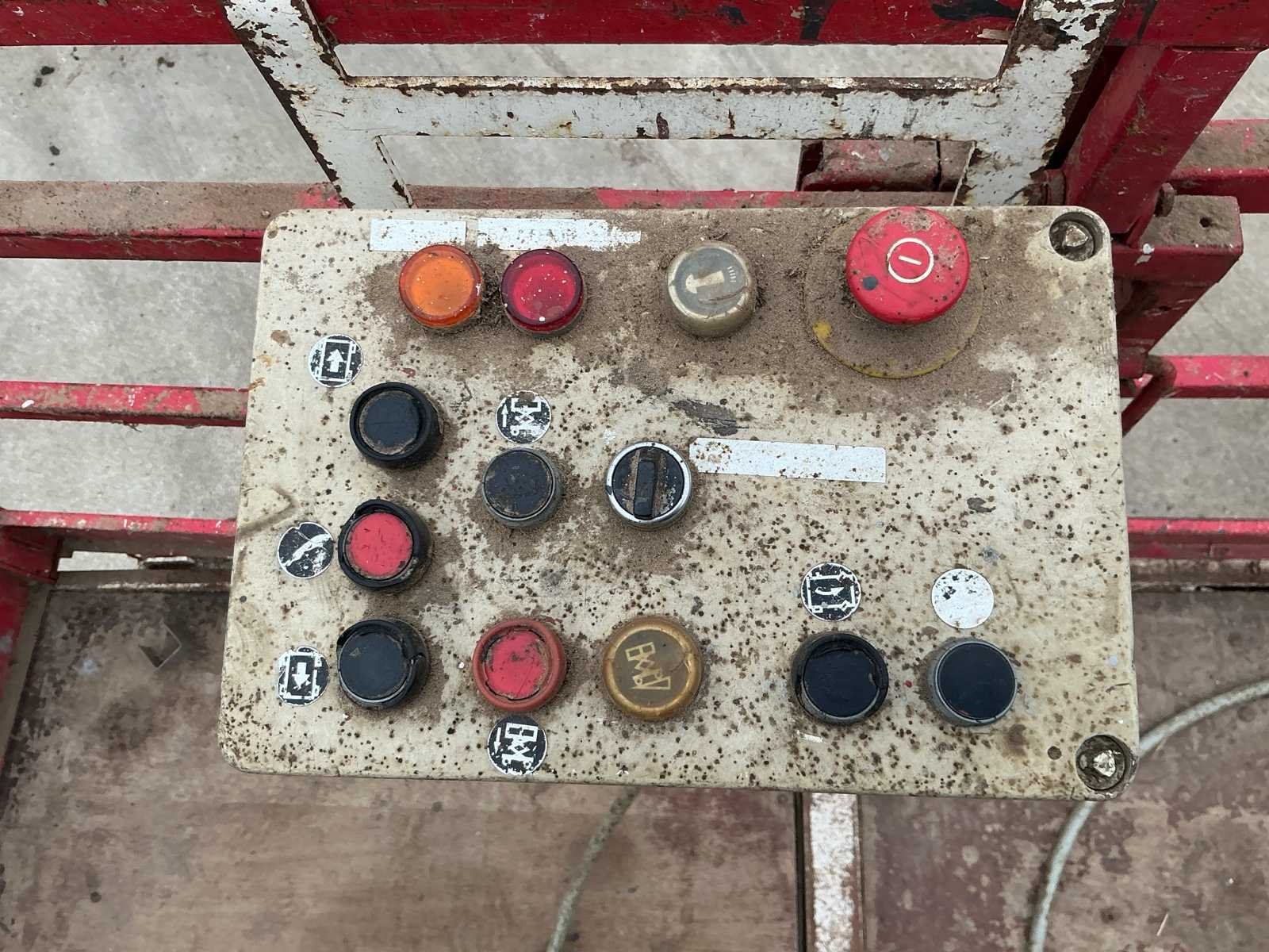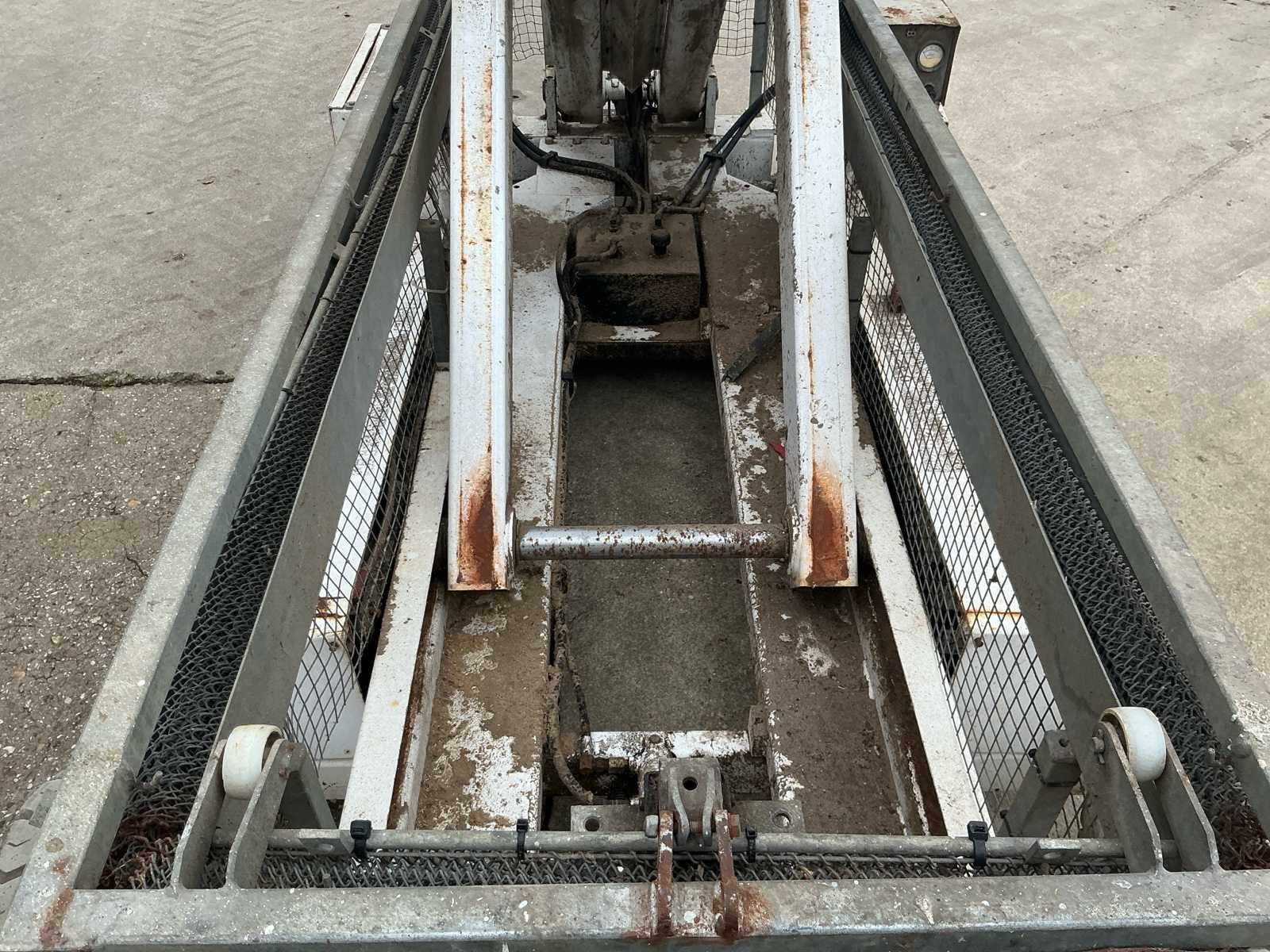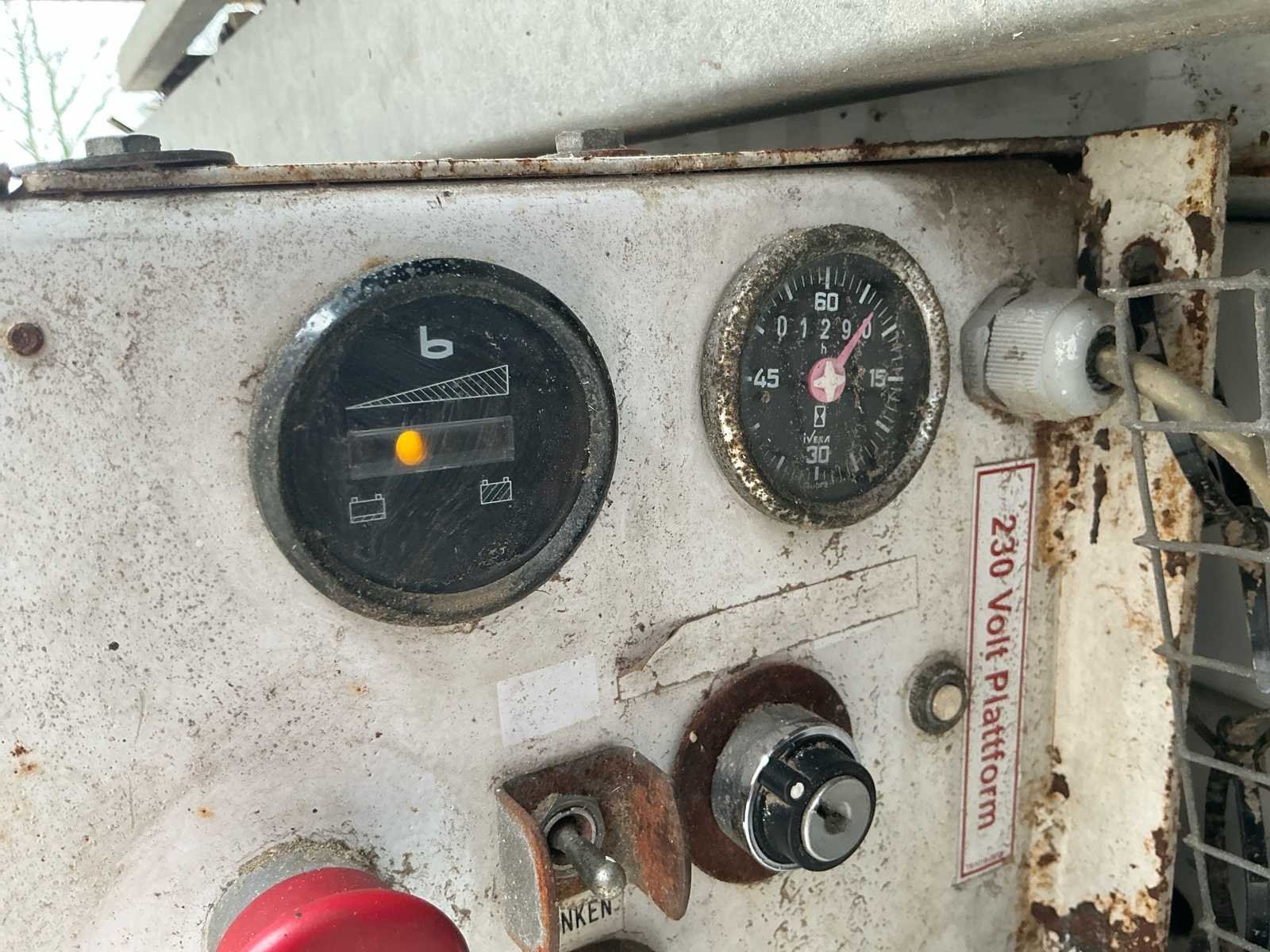 Voorzien van interne lader. Nee Merk: TKD Type: 120 15 Bouwjaar: 1999 Serienummer: 1176 Elektrisch: true Schaarhoogwerker: true Werkhoogte: 12000mm Plateau afm. l: 3500mm Plateau afm. b: 1350mm Platform capaciteit: 250kg Accu lader: true Afgelezen urenstand: 1290 Eigen gewicht: 2460kg Totale afmeting L: 3850mm Totale afmeting Breedte: 1500mm Totale afmeting Hoogte: 2280mm