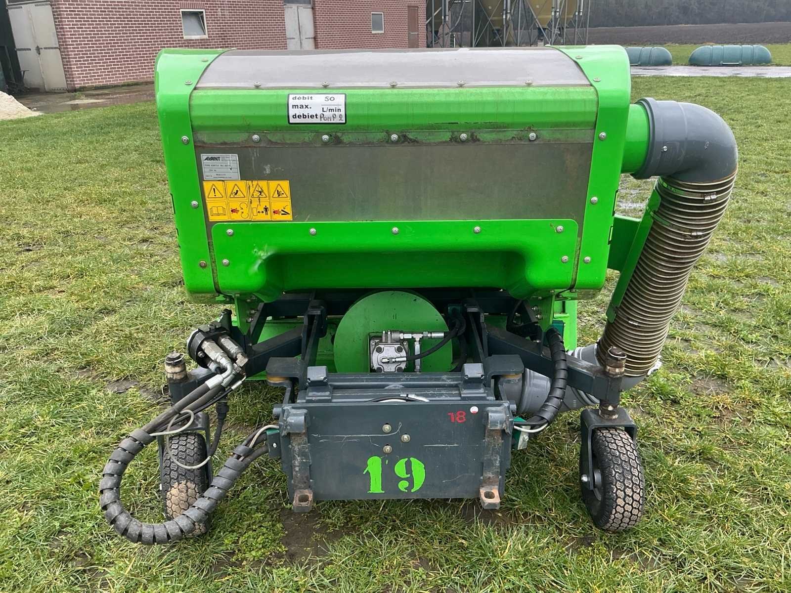 Maximaal 50 liter per minuut, snelwissel, borstel verstelbaar in snelheid Nee Merk: Avant Type: A34714 Bouwjaar: 2017 Serienummer: 00190 Eigen gewicht: 324kg Totale afmeting L: 1500mm Totale afmeting Breedte: 1300mm Totale afmeting Hoogte: 1200mm