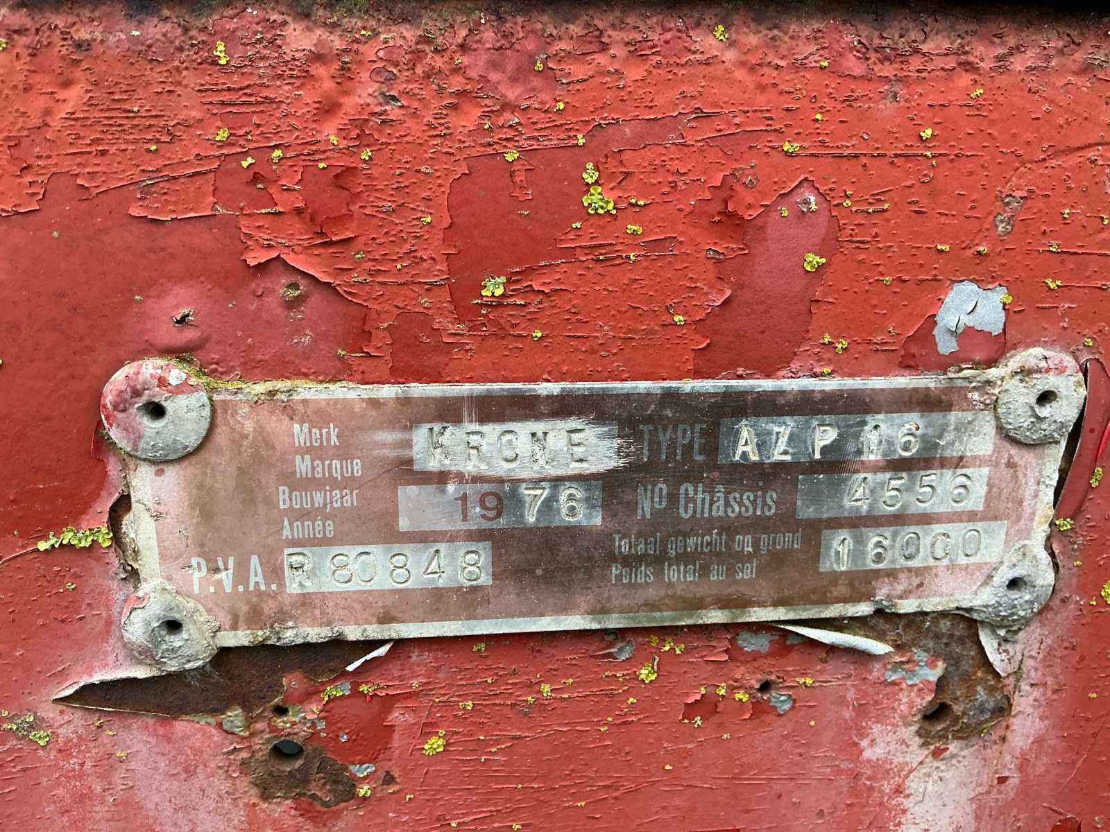 Afmeting laadvloer: 2500 x 6000. Voorzien van: trekspanaansluiting, luchtdrukremmen, luchtvering, kopschot, dubbellucht banden, verlichting. Nee Merk: Krone Type: AZP16 Bouwjaar: 1976 Serienummer: 4556 Luchtdrukremmen: true Totale afmeting L: 8100mm Totale afmeting Breedte: 2500mm Totale afmeting Hoogte: 2100mm