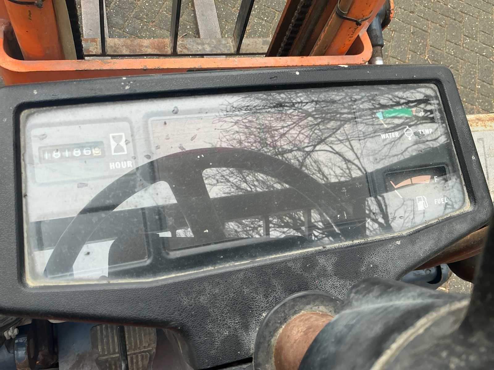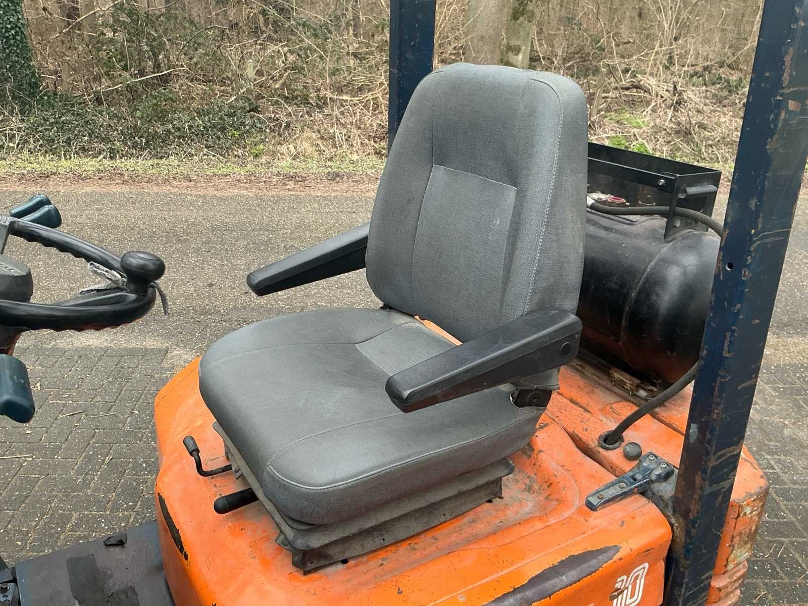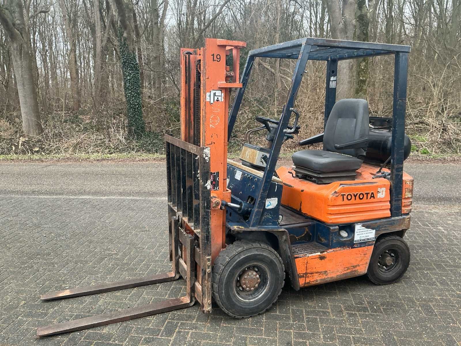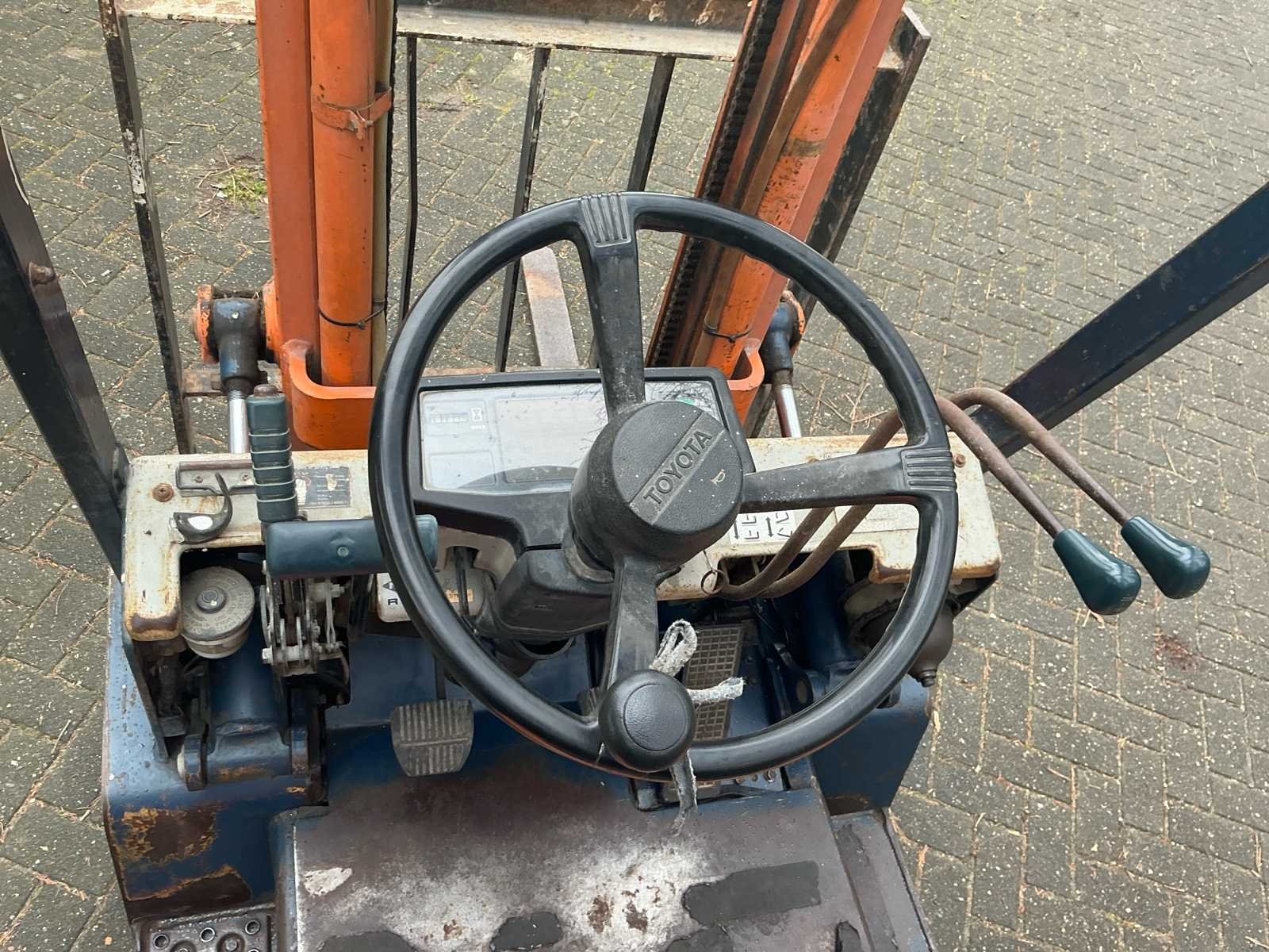 Inclusief gasfles No Merk: Toyota Type: 42-5FG10 Serienummer: 42-5FG10 Brandstof: Gas Aantal wielen: 4 Afgelezen urenstand: 18186 Duplex mast: true Eigen gewicht: 2390kg Hefvermogen: 3000kg Lepellengte: 1050mm Max. hefhoogte: 3000mm Vol rubber banden: true Minimale doorrijhoogte: 2050mm Totale afmeting L: 3200mm Totale afmeting Breedte: 1000mm Totale afmeting Hoogte: 2030mm LPG: true
