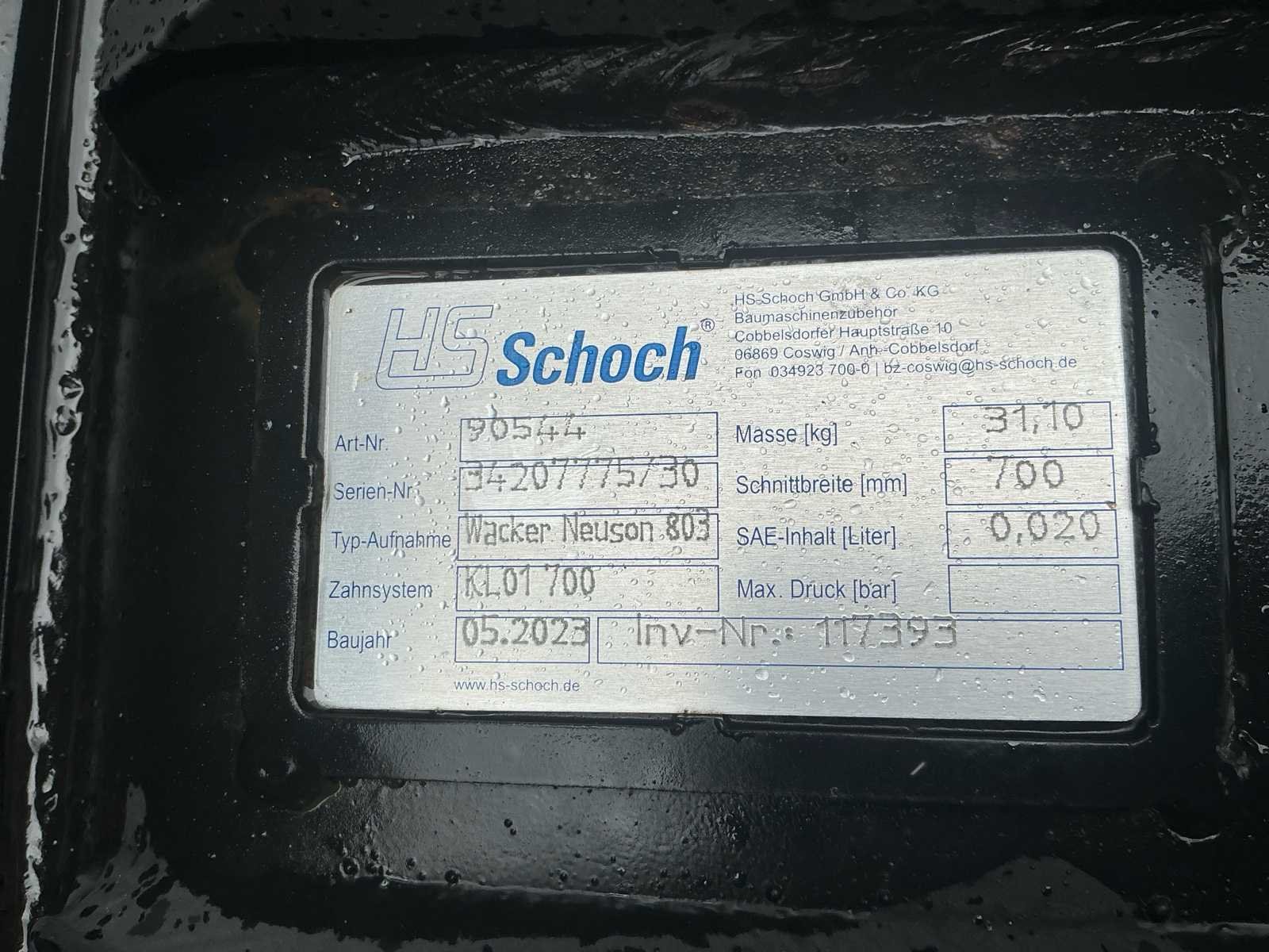 No Merk: HS Schoch Type: Wacker Neuson 803 Bouwjaar: 2023 Eigen gewicht: 31kg Totale afmeting L: 250mm Totale afmeting Breedte: 700mm Totale afmeting Hoogte: 300mm