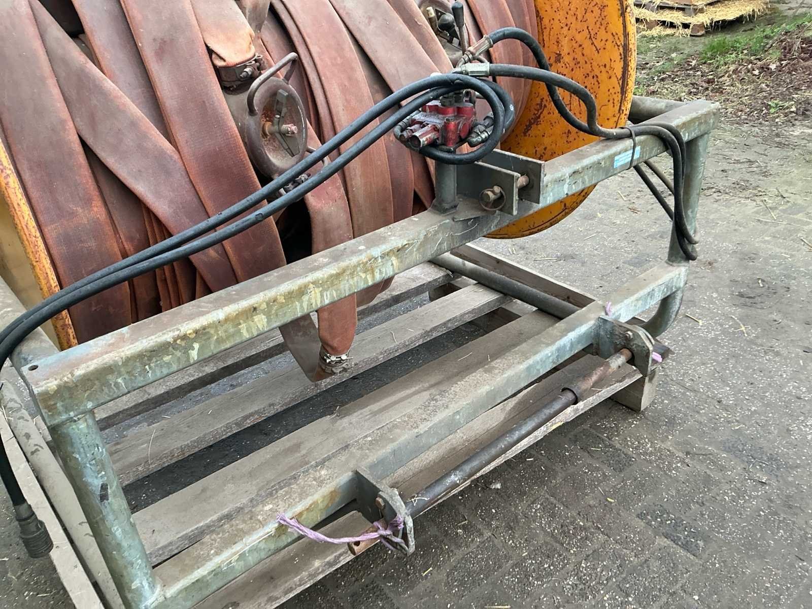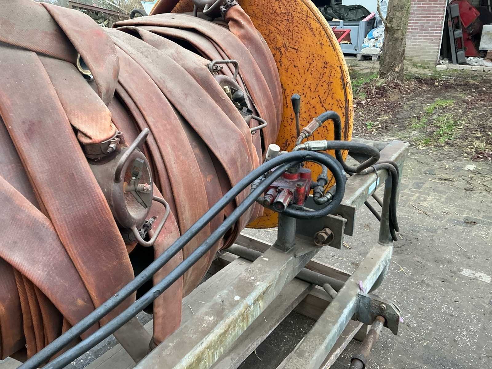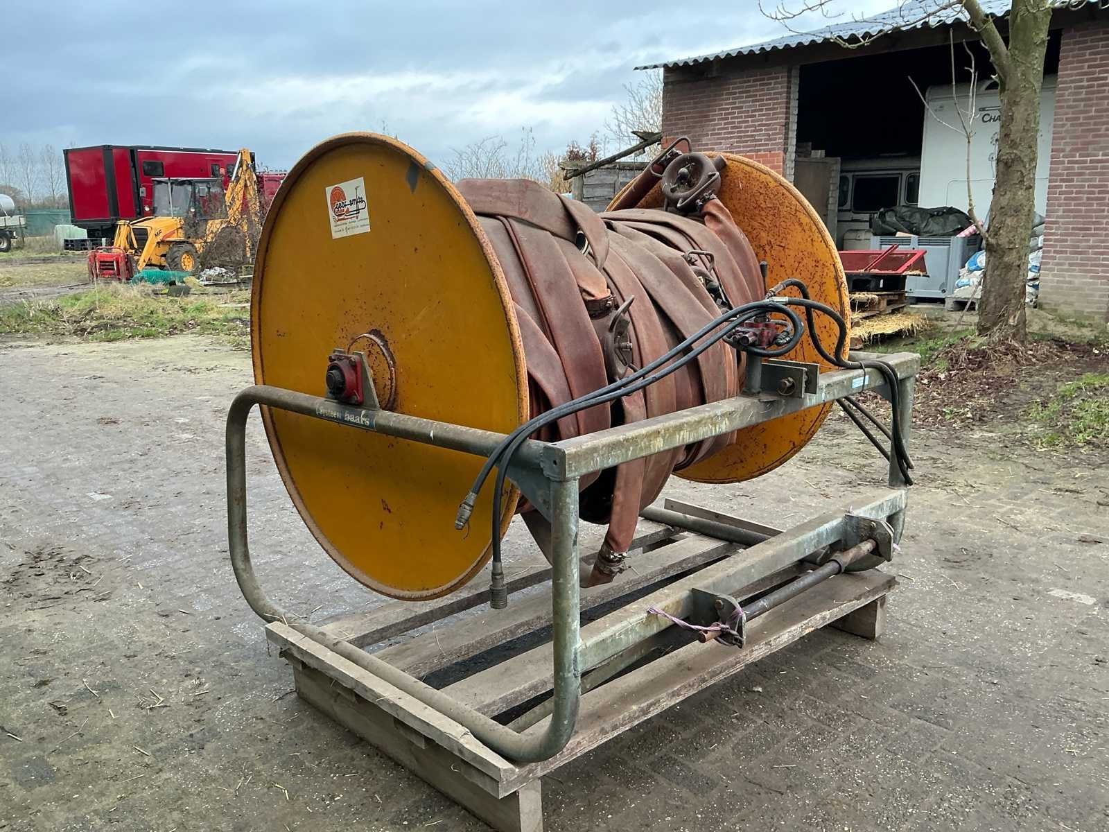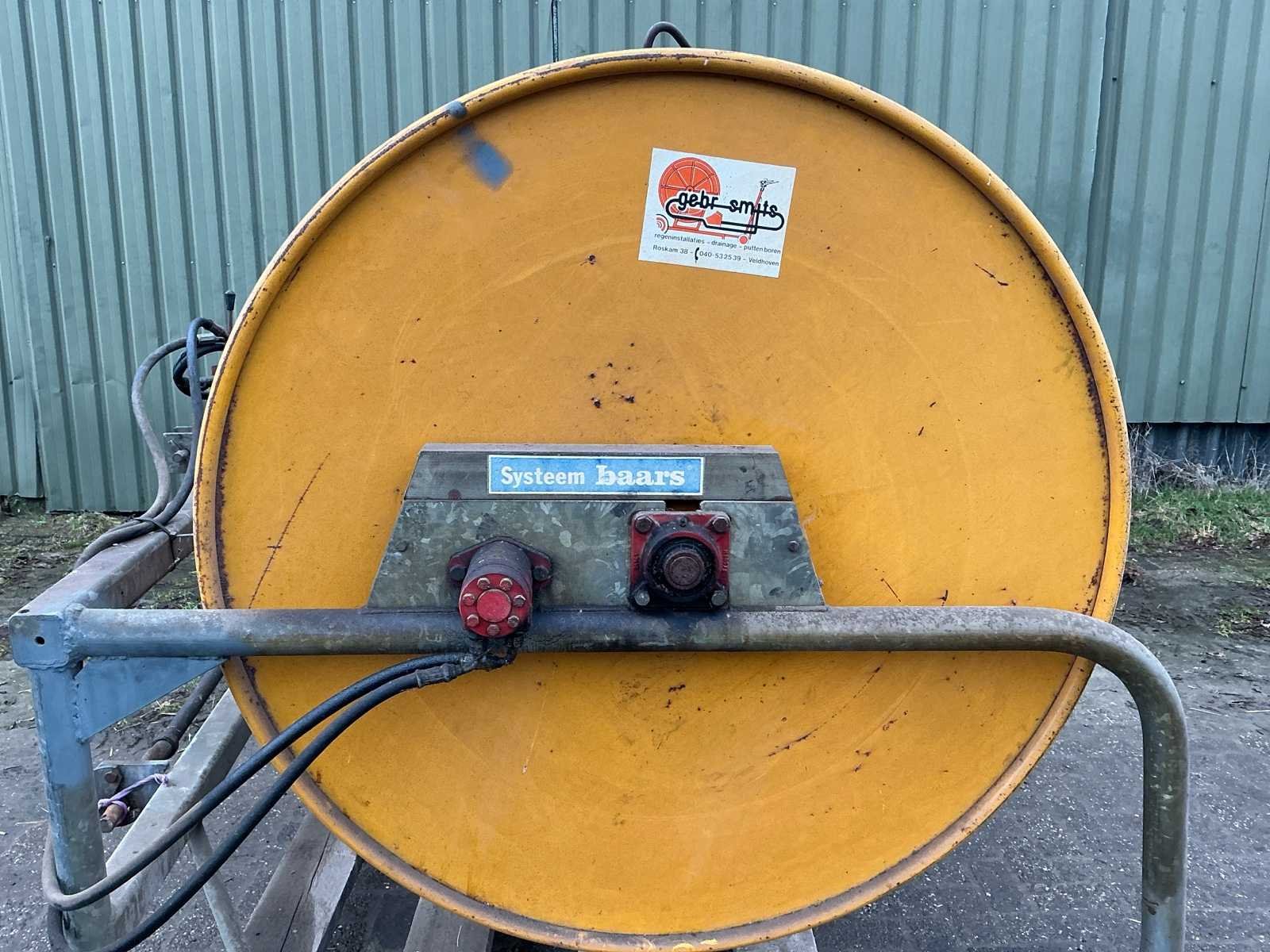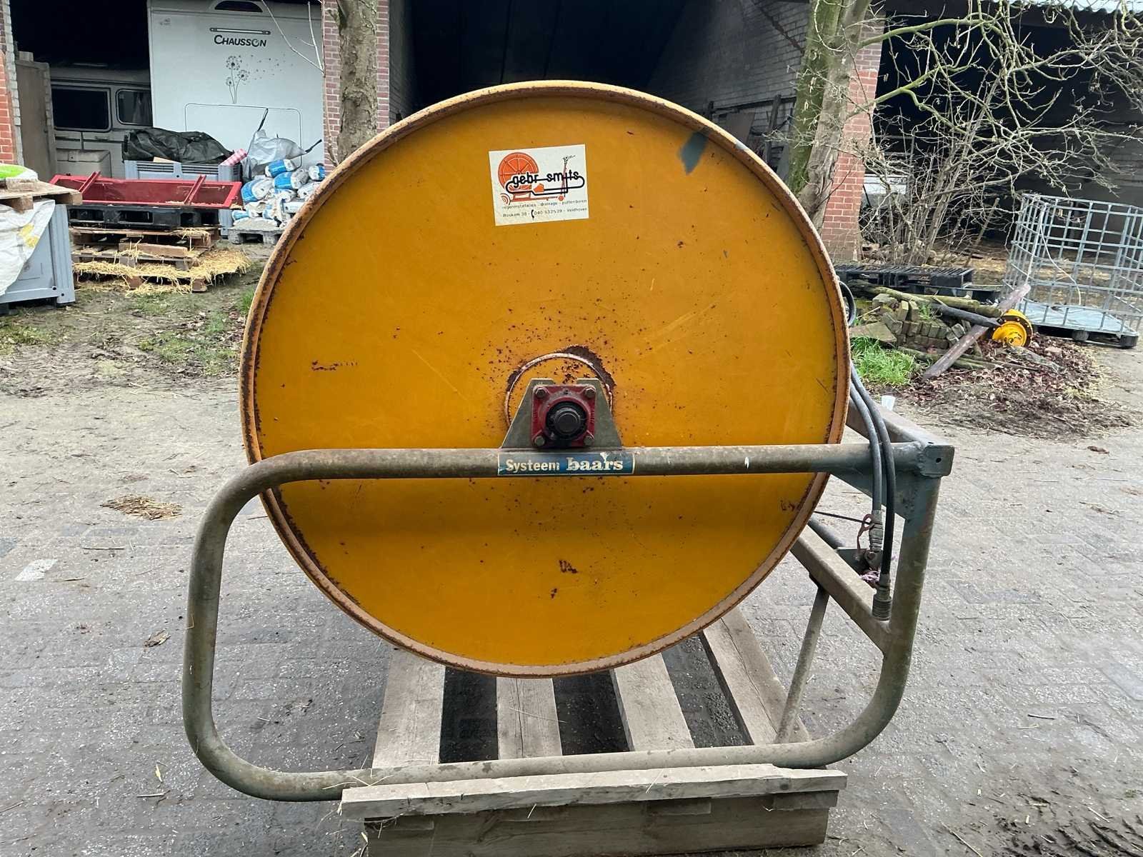 Voorzien van: 23 sproeiers, hydraulische slanghaspel in stalen frame, met dubbele trommel, hydraulische in- en uitrol, geschikt voor lange industriële slangen (±80–150 m afhankelijk van diameter), voorzien van wartel/aansluiting, bedoeld voor water-, mest- of spoeltoepassingen in agrarisch en industrieel gebruik. Nee Merk: Gebr Smits Lengte: 25000cm Type: Systeem Baars Diameter circa: 1300mm Totale afmeting L: 1700mm Totale afmeting Breedte: 1900mm Totale afmeting Hoogte: 1500mm