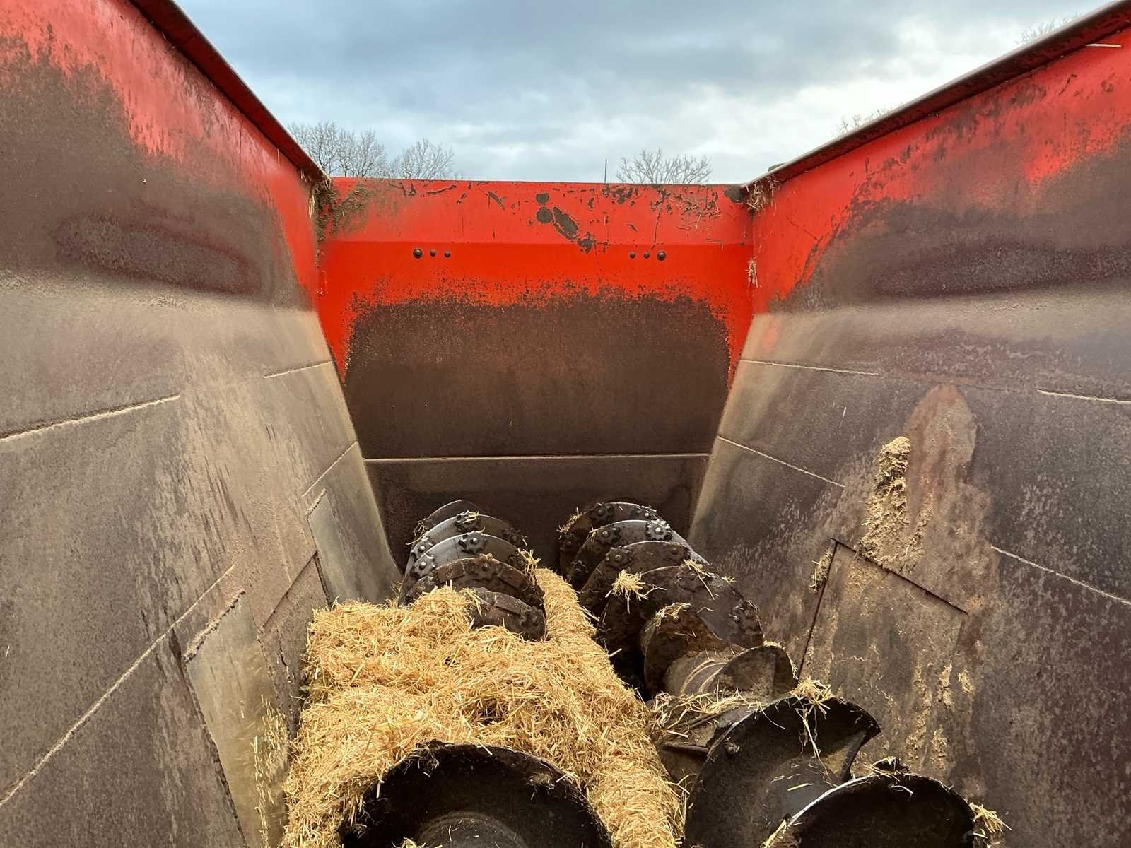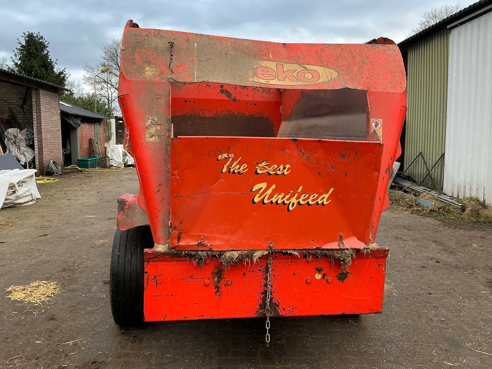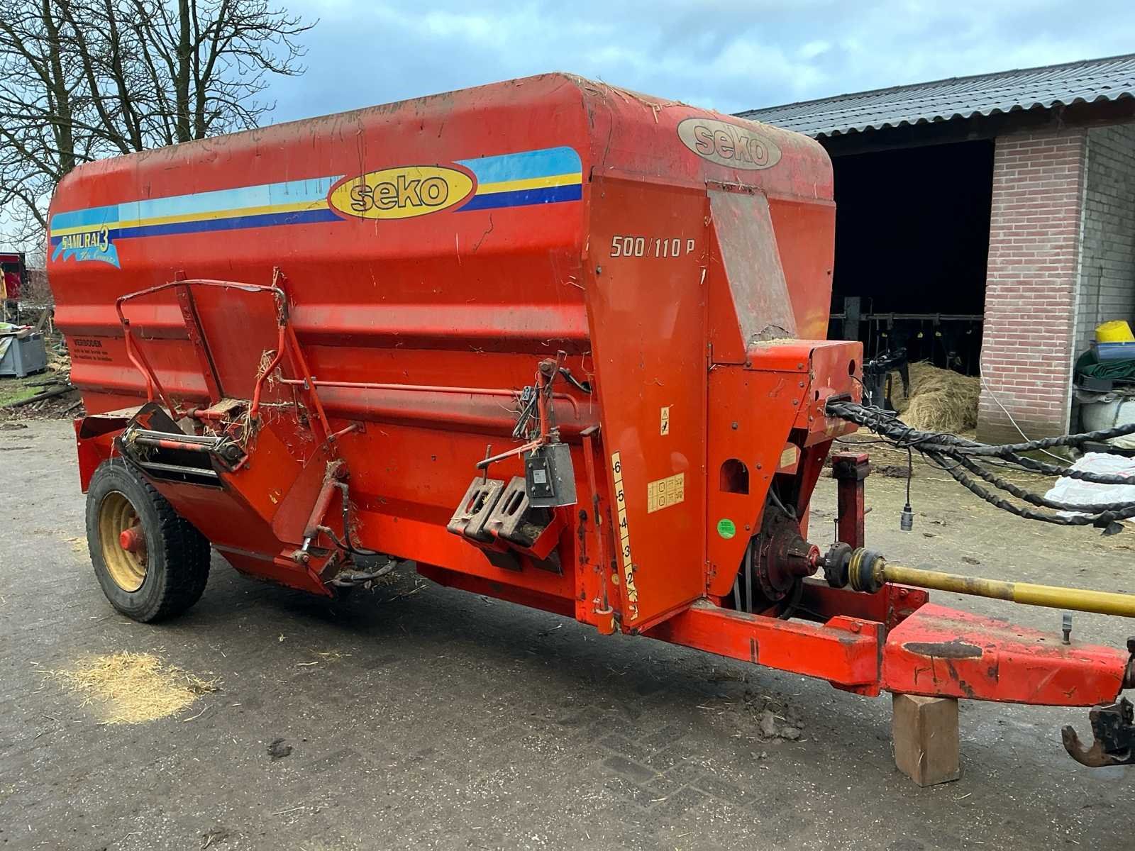 Voorzien van: Uit de jaren 90, SEKO Samurai is een getrokken voermengwagen met 2 verticale vijzel, PTO-aandrijving (540 t/min), inhoud ca. 5 m³ (dit formaat), mechanische of hydraulische uitloop, enkelas, trekoog, geschikt voor mengen en uitdoseren van ruwvoer, kuil en bijproducten achter middelgrote tractoren. Middenlosser Nee Merk: Seko Type: Samurai 3 500/110 Tankinhoud: 6m³ Aantal mengwalsen: 2 Totale afmeting L: 5600mm Totale afmeting Breedte: 2200mm Totale afmeting Hoogte: 2300mm
