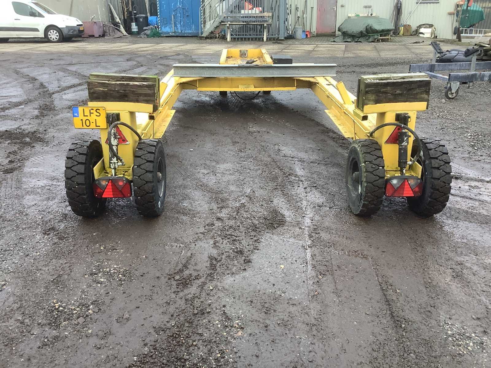 Boot trailer met hydraulische hoogte verstelling Nee Kenteken: lfs10l Merk: zelfbouw Type: hydraulische Model: u bouw Kleur: geel Lengte: 6900cm Breedte: 180cm Hoogte: 50cm Materiaal: ijzer