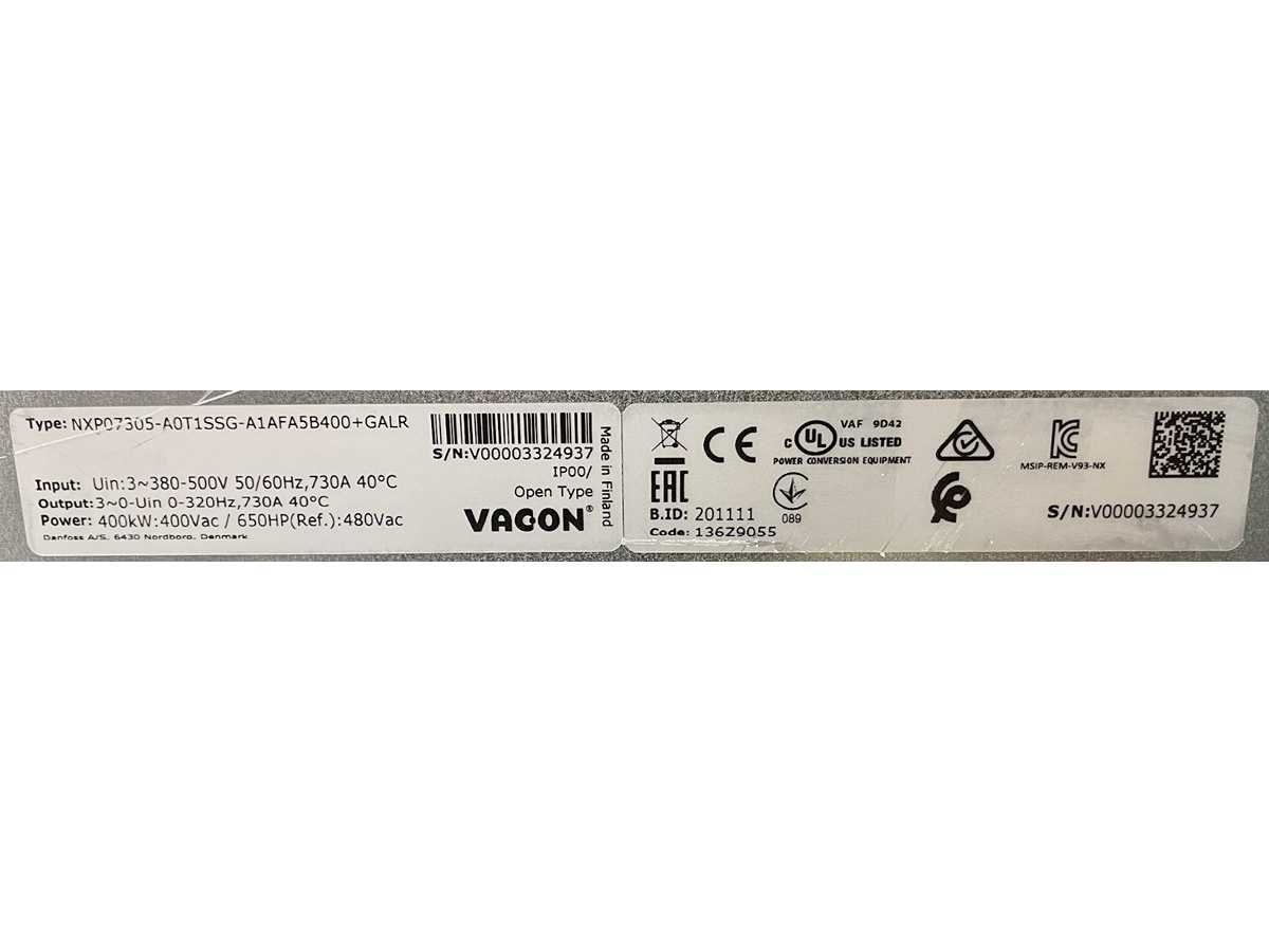 Voorzien van: ventilatieroosters, apparatuur voor aandrijven van motor van 400Kw, luchtgekoeld, 2x choke, koperen aansluitflappen, Nee Merk: Danfoss Model: Vacon Lengte: 61cm Breedte: 79cm Hoogte: 200cm Vermogen (kW): 400kW