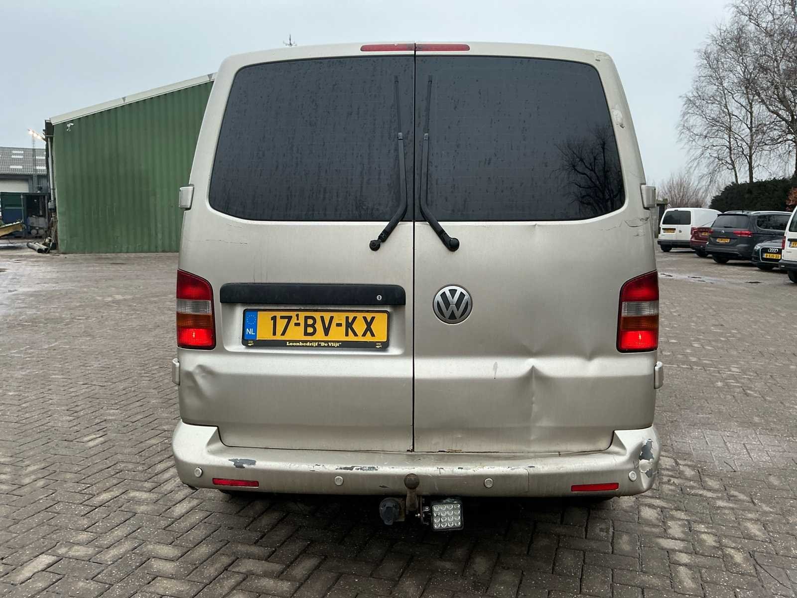 Voorzien van trekhaak; extra achteruitrij verlichting; 2 schuifdeuren; cruise control; airconditioning; parrot No Kenteken: 17BVKX Merk: Volkswagen Type: 2.5 TDI 340 4MDC MHD Model: Transporter Bouwjaar: 2005 Chassisnummer: WV2ZZZ7HZ5H067147 Afgelezen kilometerstand: 286581km Cilinderinhoud: 2461cc Vermogen (kW): 128kW Brandstof: Diesel Datum eerste toelating: 2005-11-09 Datum eerste toelating (NL): 2005-11-09 APK vervaldatum: 2026-03-28 Transmissie: Handgeschakeld Aantal zitplaatsen: 5 Kleur: niet van toepassing Nationaliteit documenten: Nederlandsche Stuurwiel: Links Bruto BPM (NL): 17846 Aantal deuren: 5 Ledig gewicht: 2120kg Laadvermogen: 680kg Aantal cilinders: 5 Velgmaat: 285/55 R17 Carrosserie: Bestelwagen Emissieklasse: 4 Kentekenpapieren compleet?: true