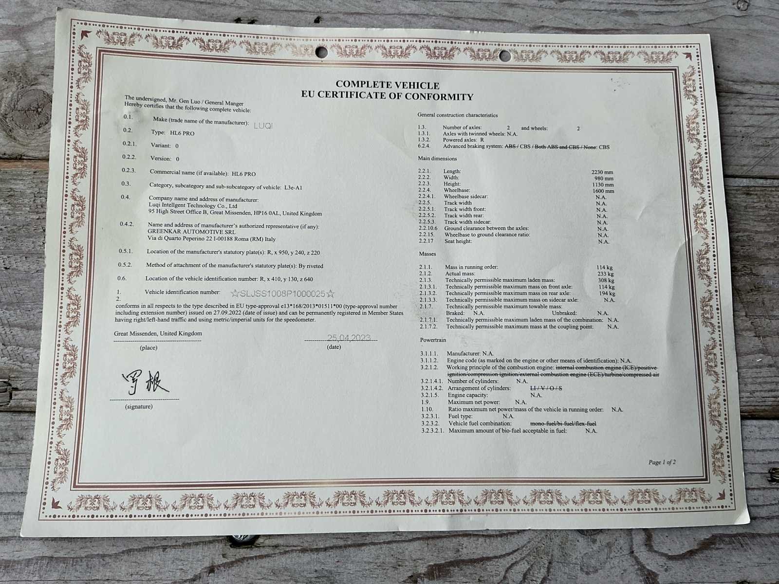 Voorzien van: alarm, achteruitrij functie No Merk: Luqi Model: HL6 Pro Brandstof: Elektrisch Chassisnummer: SLJSS1008P1000025 Datum eerste toelating: 2023-04-25 Gewicht: 233kg Vermogen (kW): 52kW Kleur: Grijs Afgelezen kilometerstand: 130km Transmissie: Automaat Aantal sleutels: 2 Startinformatie: Start en rijdt Bouwjaar: 2023 No self drive export!: true