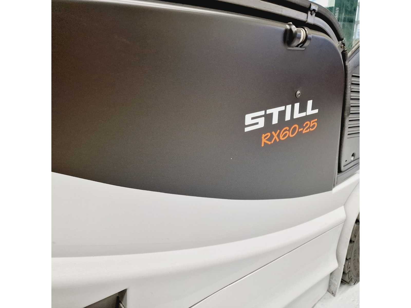 Werking onbekend Nee Merk: Still Type: RX 60-25 Bouwjaar: 2011 Serienummer: 516321A007728 Brandstof: Elektrisch Aantal wielen: 4 Afgelezen urenstand: 7142 Free-lift: true Side-shift: true Eigen gewicht: 5500kg Hefvermogen: 2500kg Lepellengte: 1200mm Hefhoogte: 4200mm Vol rubber banden: true Totale afmeting L: 3700mm Totale afmeting Breedte: 1150mm Totale afmeting Hoogte: 2650mm