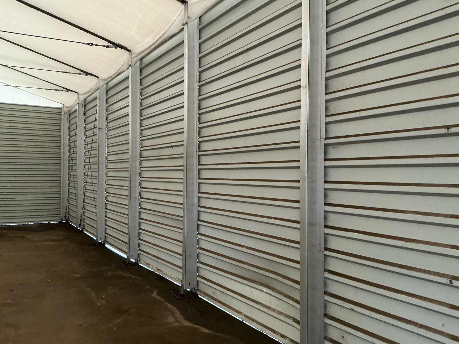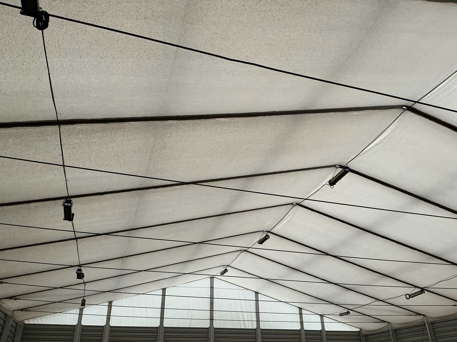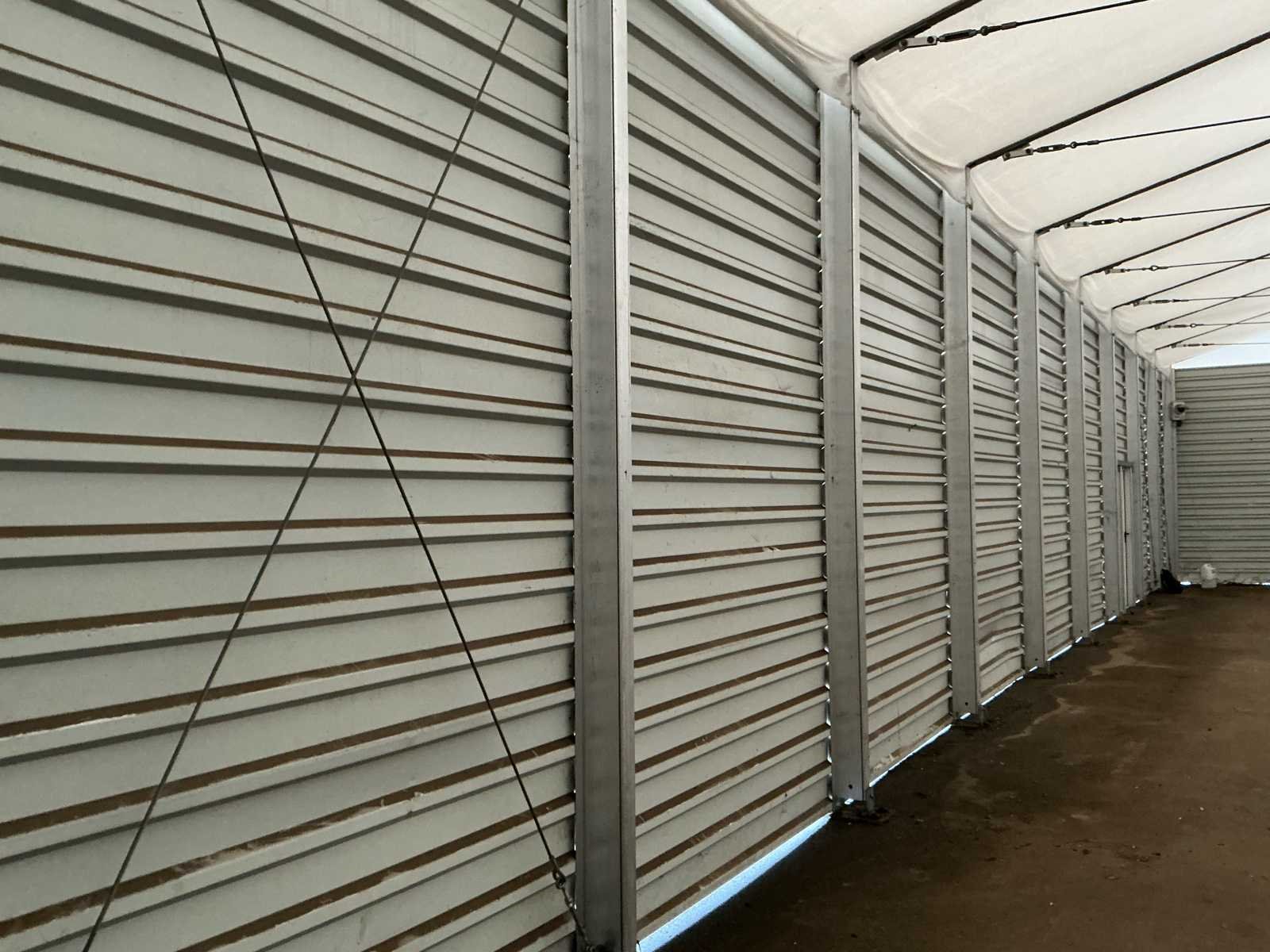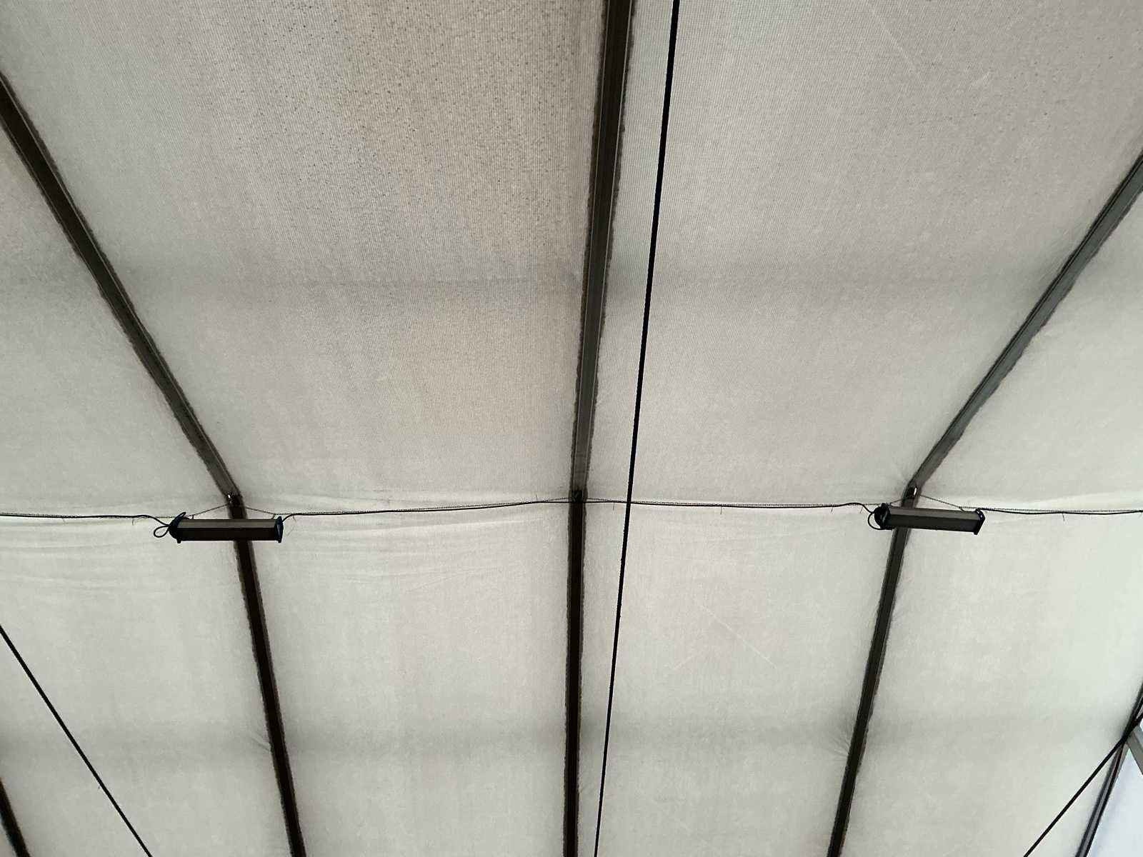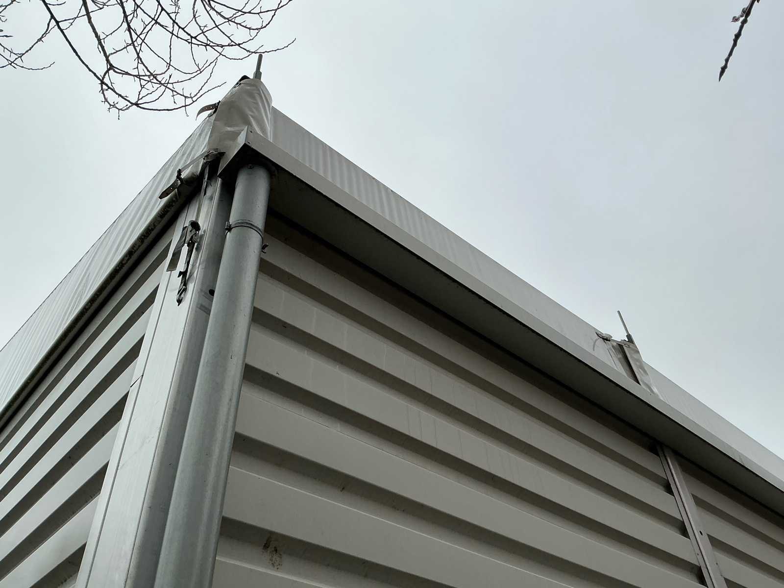 Haltec Basic tijdelijke / demontabele bedrijfshal. Afmetingen: 25 meter lengte 17,5 meter breedte 6,5 meter nokhoogte 4 meter goothoogte Doorrijbreedte schuifdeuren: 4,5 meter Doorrijhoogte schuifdeuren: 4 meter Constructie: Modulair systeem Aluminium staanders met stelmogelijkheid Funderingsvrije grondverankering d.m.v. grondpen Aluminium dakspanten Trapeziumvormig plaatmateriaal voor wanden a 2,40m x 1m per paneel PVC dakzeil met trekbanden + binnenzeil (condensatiebeschermend klasse 3) (2,5m breedte) Trapeziumvormig dubbele schuifpoort Spanners ten behoeve van dak en wandconstructie Sneeuwlast (dak) 0,20 KN/m2 Winddruk (stuwdruk) 0,60 KN/m2 Bestaande uit: 10 modulaire staander, wand en dakconstructie a 2,5m diepte, 4m goothoogte en 6,5m nokhoogte 2 losse toegangsdeuren Dubbele schuifpoort (4,5m doorrijbreedte en 4m doorrijhoogte) 15 stuks LED verlichting aan dakconstructie (220V) Regengoten langs beide lange zijden met afvoer Te gebruiken bij diverse soorten ondergrond (bestrating, asfalt etc.) De lengte van de hal is per 2,5 meter in te korten door de modulaire constructie van zowel wand als dakbekleding. Het dak bestaat uit een 2,5 meter breed dakzeil + binnenzeil wat een gelijke breedte heeft als de trapeziumvormige wandpanelen. Door koper te demonteren en afvoeren vóór 15 maart, zie onderstaande opmerking. Nee Merk: Haltec Materiaal: Aluminium Type: Basic Totaal oppervlakte: 437m² Nok hoogte: 6500mm Goot hoogte: 4000mm Totale afmeting L: 25000mm Totale afmeting Breedte: 17500mm Totale afmeting Hoogte: 6500mm