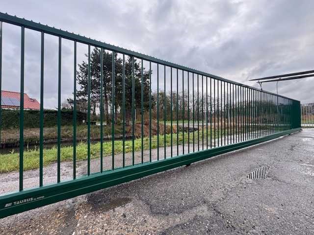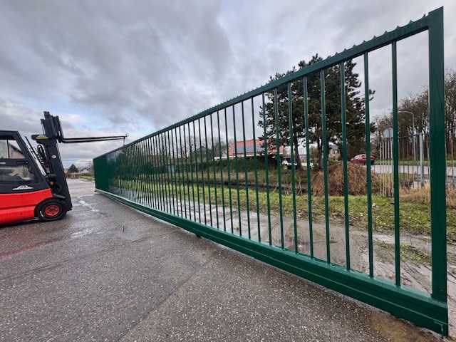 Nieuw / ongebruikt Handmatige bediening Totale lengte poort: 13,2. Doorgang: 12m. Hoogte: 2m. Kleur: groen RAL6005 Wordt geleverd met portieken, wielen en rail. Nee Merk: Kopal Model: Taurus Kleur: Groen Lengte: 1320cm Hoogte: 200cm Materiaal: Staal