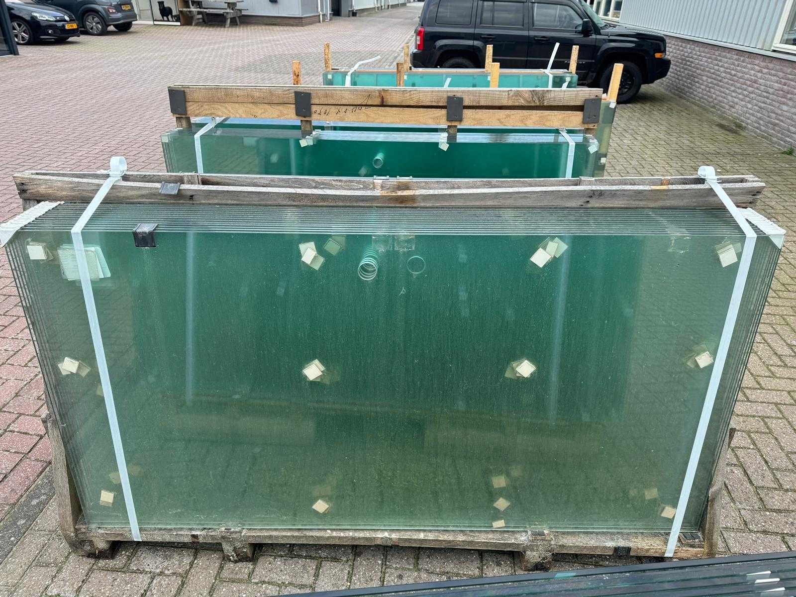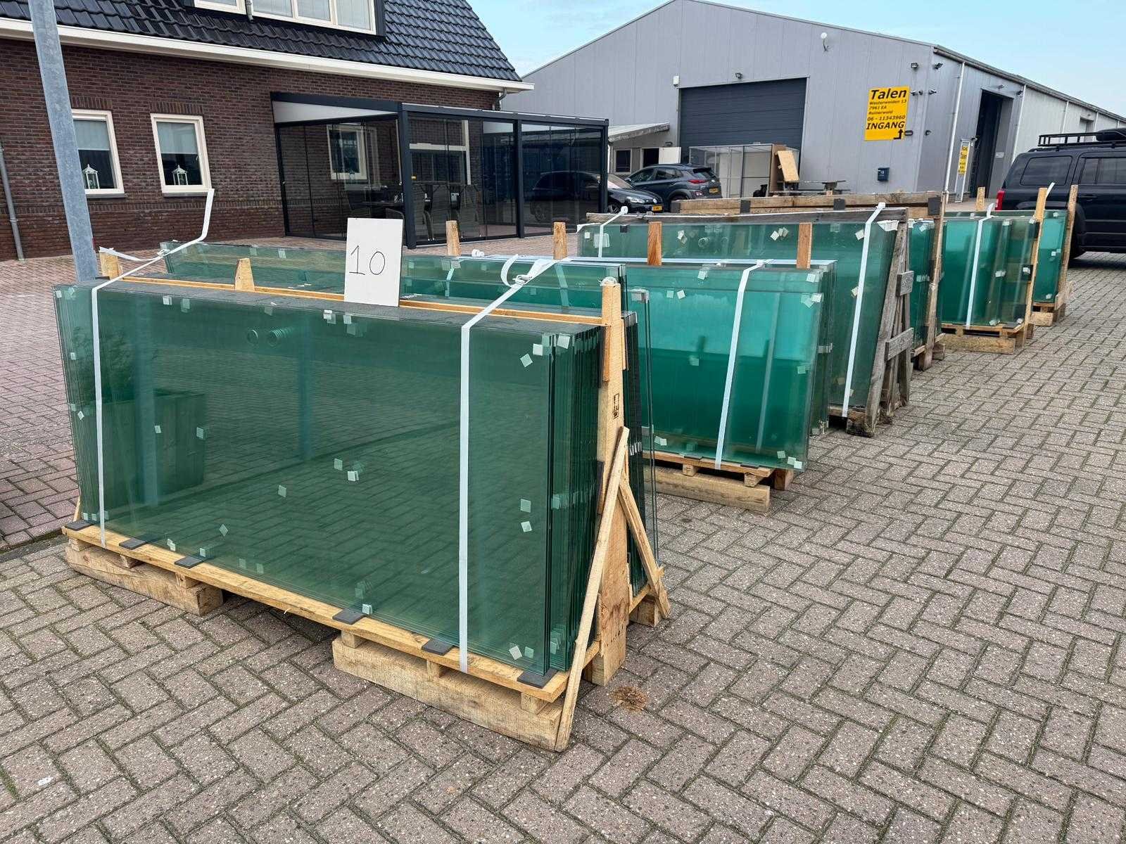 180 stuks ramen gehard veiligheidsglas 10mm dik • Diverse afmetingen • Totaal: 180 ramen • Conditie: partijhandel – kan lichte strepen, vlekjes of vegen bevatten • Verpakking: op pallet met glas • Opmerking: foto van overkapping is ter illustratie • Heftruck is aanwezig voor het afhalen Nee