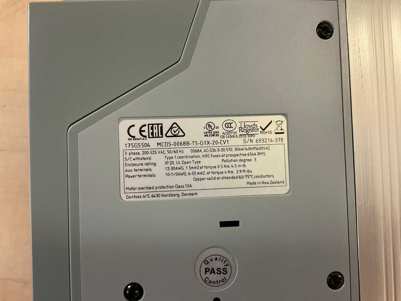 In: 3x380V Nee Merk: Danfoss Product type: VLT Soft Starter MCD5-0068B-T5-G1X-20-CV1 Digitaal: true Vermogen (kW): 30kW