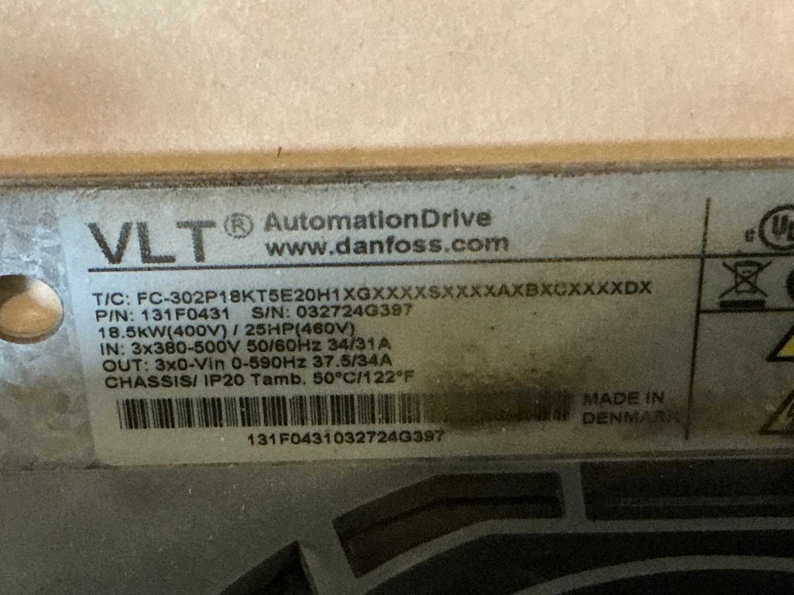 In: 3x380V Nee Merk: Danfoss Model: FC-302 Product type: VLT Automationdrive Digitaal: true Vermogen (kW): 18.5kW