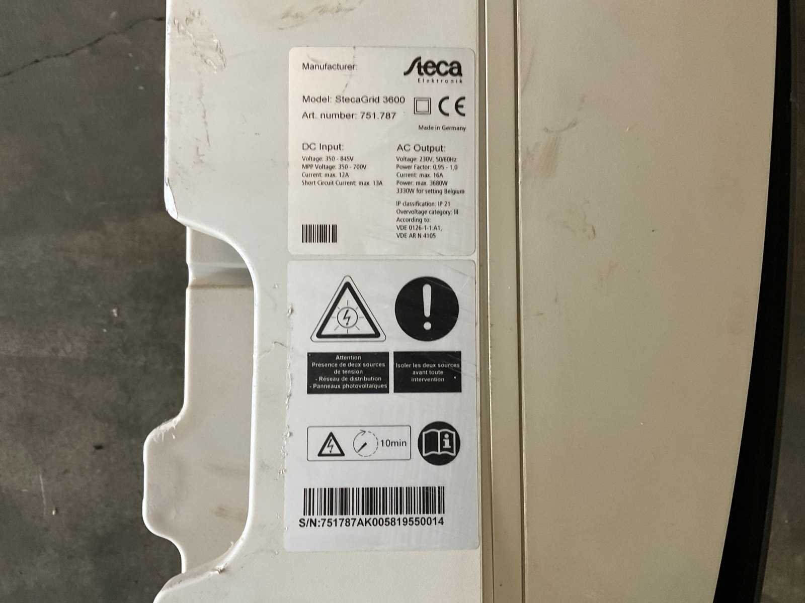 Input: 380-845V, output: 230V Nee Merk: Steca Type: StecaGrid 3600 Vermogen: 3.68kW Totale afmeting L: 340mm Totale afmeting Breedte: 210mm Totale afmeting Hoogte: 610mm