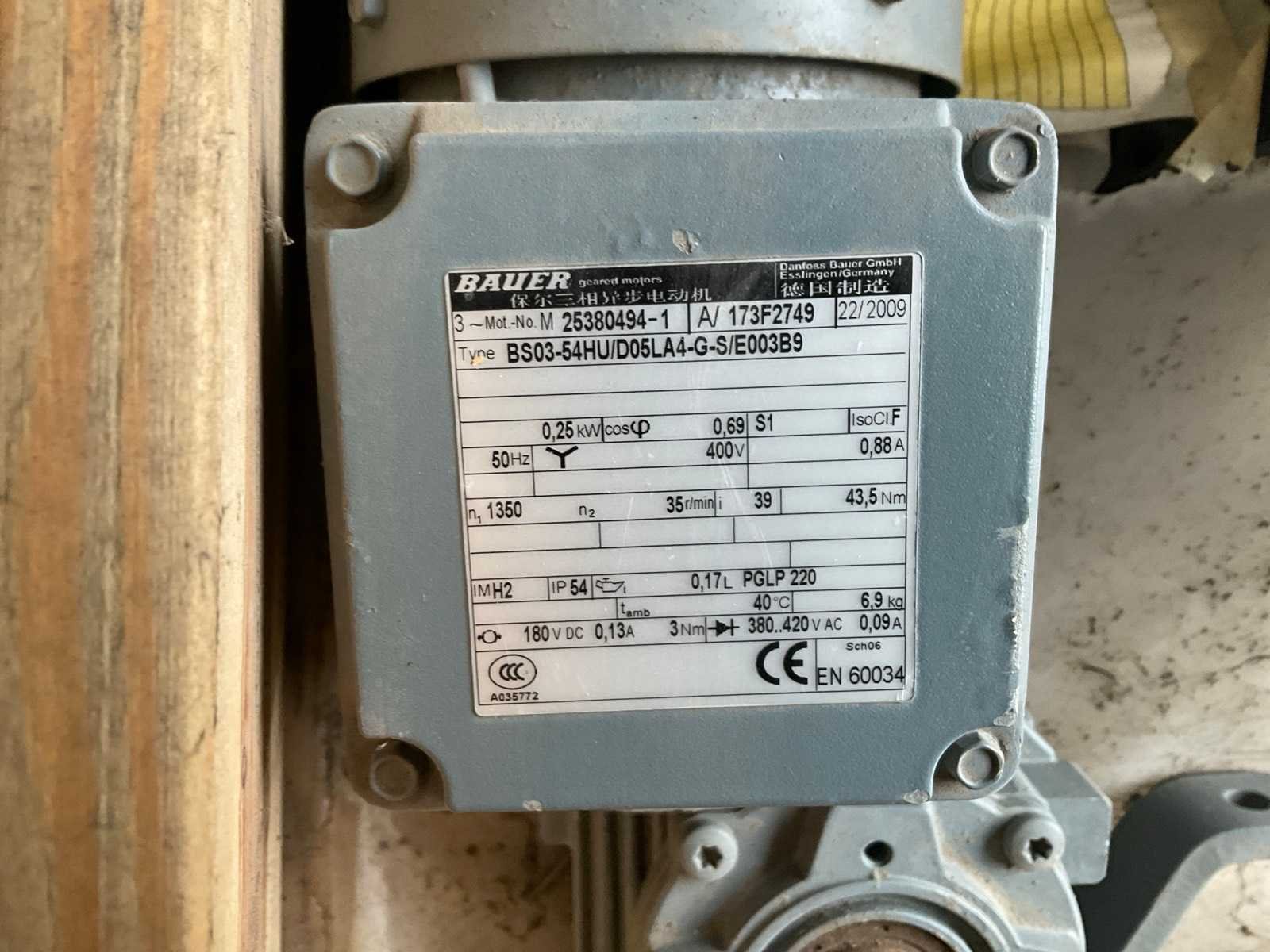 400V. Ongebruikt. Nee Merk: Bauer Capaciteit: 0,25kW, 0,55kW, 9,5kW Eigen gewicht: 200kg