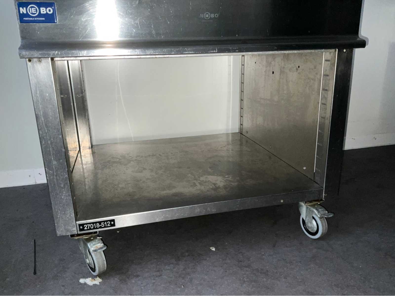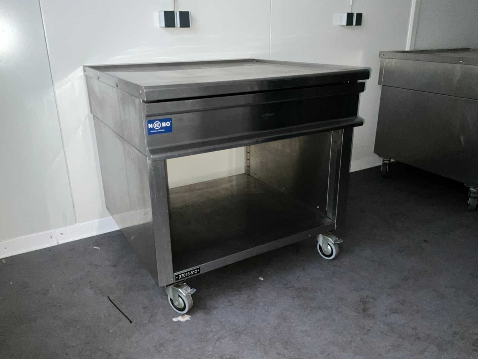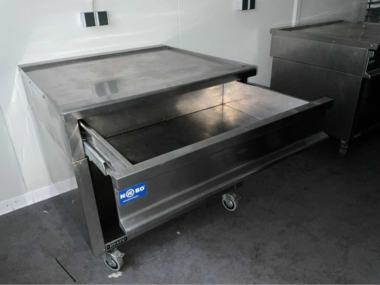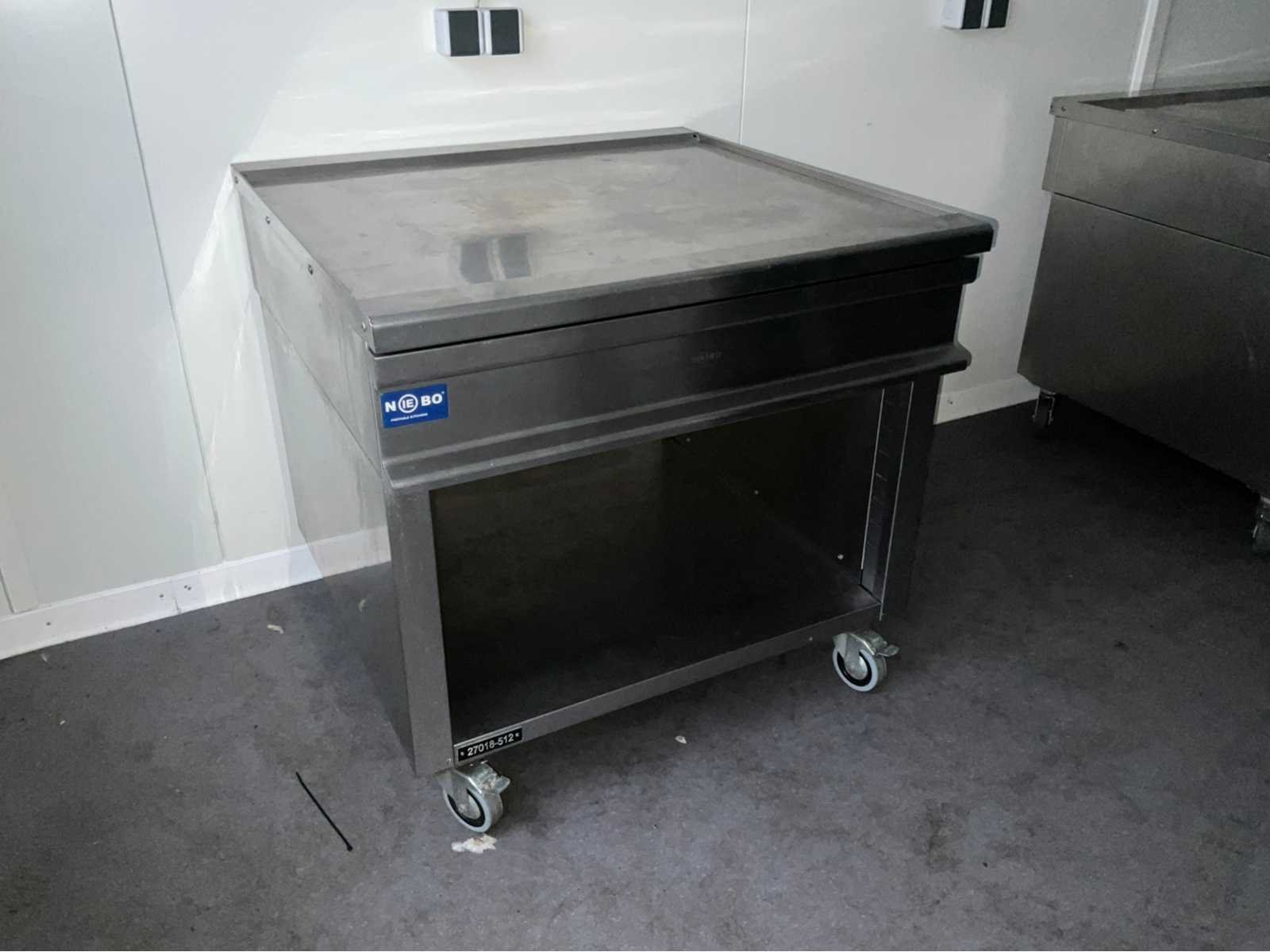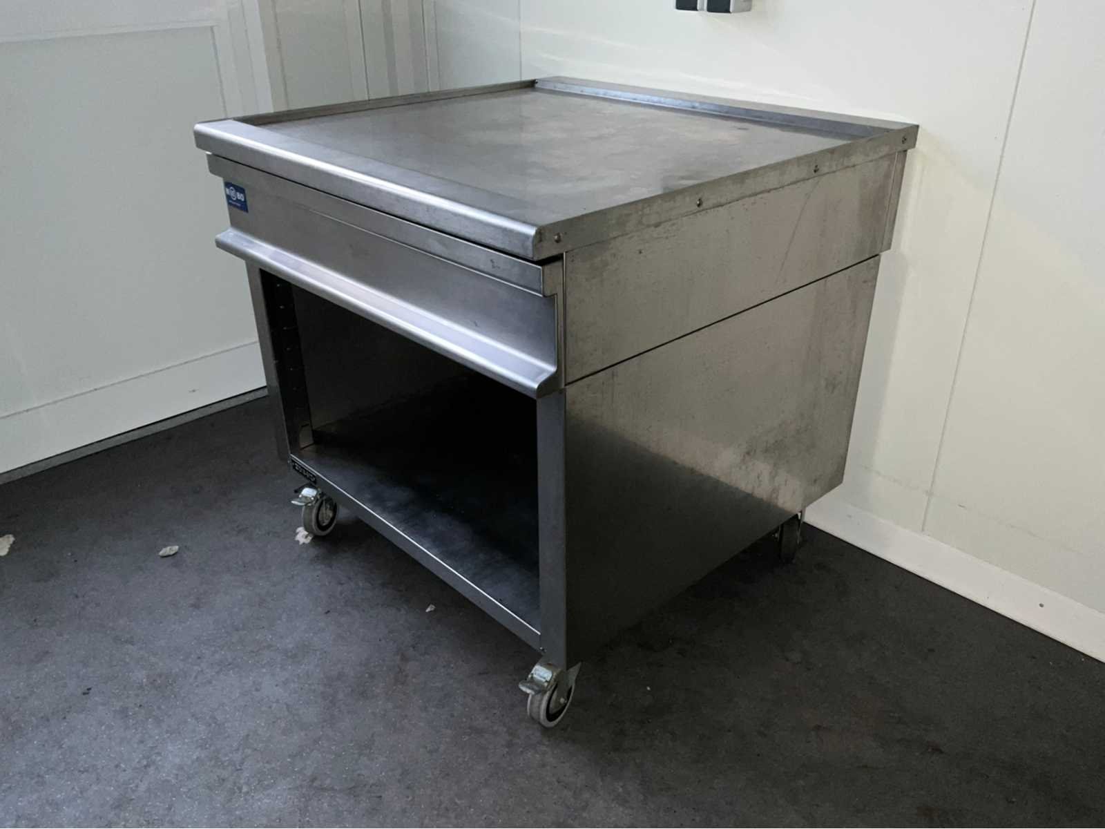 Roestvast staal; verrijdbaar; open onderkast; uitschuifbare lade; totaal afmeting 900x900x870 mm; Nee Merk: Berto’s Type: N9-8M Bouwjaar: 2012