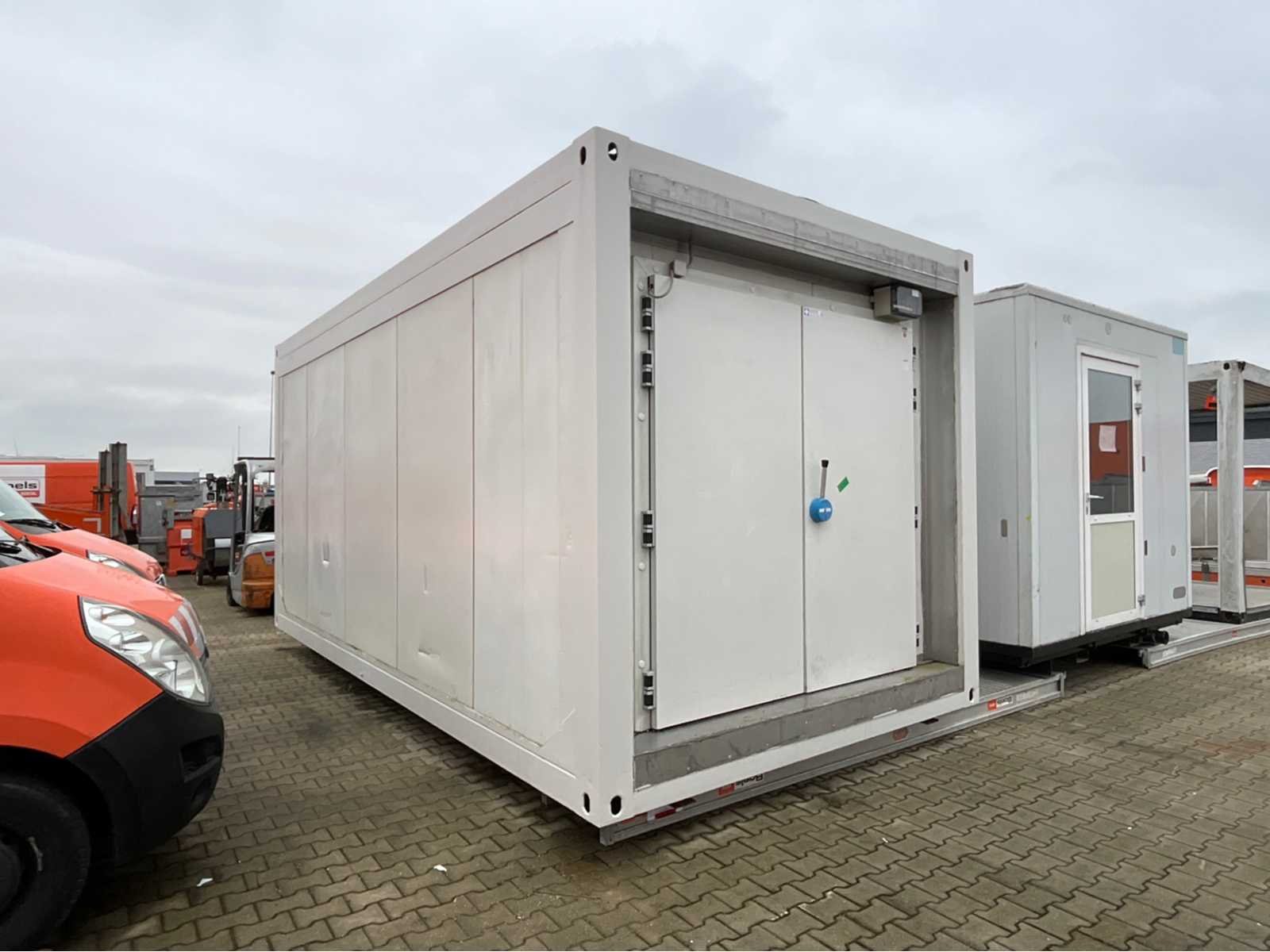 Staal frame; koelcel wand dikte 120 mm; afmeting nuttige binnenruimte 4450x2750x2250 mm; dubbele buiten koelceldeur; controle paneel; verdamper en koelcompressor; 400 Volt - 32 Ampère; roestvast staal verluchtingroosters; twist locks; working condition; de koper dient zelf te zorgen voor transport en open vrachtauto met laadkraan; Nee Merk: Pegas Container Bouwjaar: 2008 Totale afmeting L: 6150mm Totale afmeting Breedte: 3000mm Totale afmeting Hoogte: 2950mm