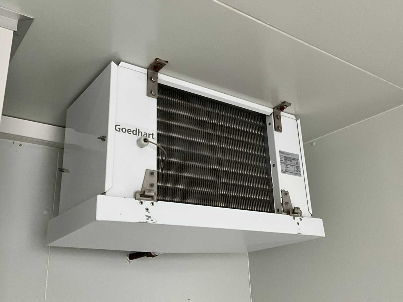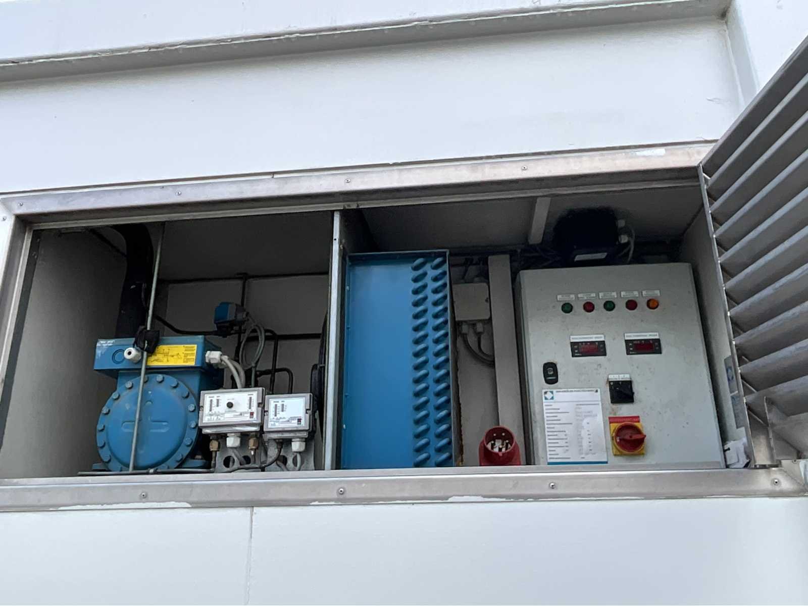 Koelcompressor; verdamper: staal frame; koelcel wand dikte 135 mm; buiten koelceldeur; controle paneel; roestvast staal verluchtingroosters; working condition; Nee Merk: CHB Peter Bonitz Type: FC38SBI Bouwjaar: 2009 Totale afmeting L: 3000mm Totale afmeting Breedte: 3000mm Totale afmeting Hoogte: 3000mm