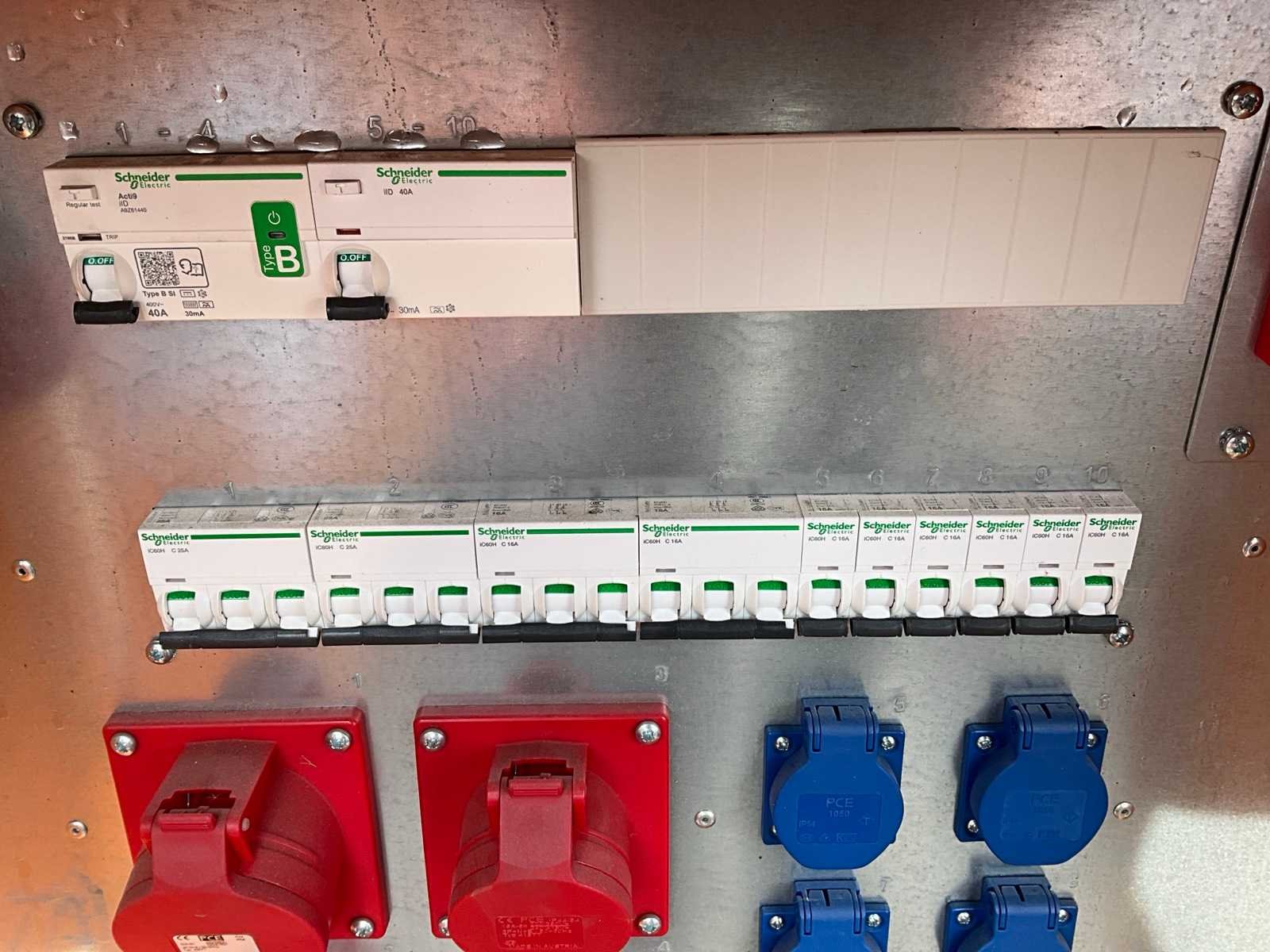 Gegalvaniseerd buisstaal onderstel; zekeringen; hijsoog; working condition not verified; Nee Merk: Merz Type: M-EV 32/22-6/G/E/X Bouwjaar: 2021 Serienummer: A121005054090016 Aansluiting: 32A Aantal uitgangen 230v: 6 Aantal uitgangen 380 v / 16 a: 2 Aantal uitgangen 380 v / 32 a: 2 Totale afmeting L: 450mm Totale afmeting Breedte: 800mm Totale afmeting Hoogte: 950mm