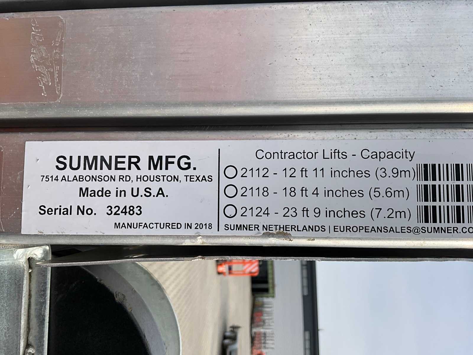 Verrijdbaar; gegalvaniseerd staal / aluminium; opklapbaar onderstel; toepassing: onderhoudswerkzaamheden / montage werkzaamheden / installatie werkzaamheden; working condition not verified; Nee Merk: Sumner Manufacturing Type: 2124 Bouwjaar: 2018 Serienummer: 32483 Handbediend: true Max. hefhoogte: 7500mm Max. hefcapaciteit: 300kg Totale afmeting L: 860mm Totale afmeting Breedte: 800mm Totale afmeting Hoogte: 2130mm Eigen gewicht: 166kg
