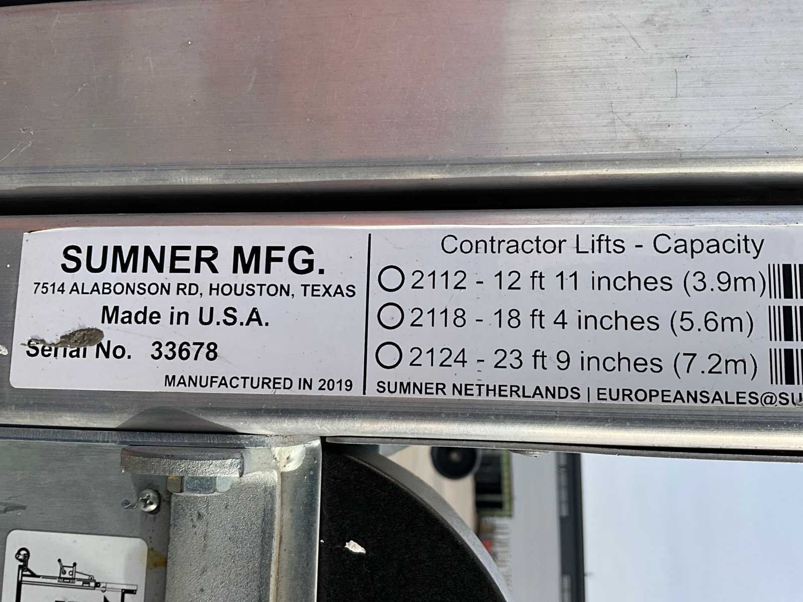 Handbediend; verrijdbaar; gegalvaniseerd staal; staalkabellier; opklapbaar onderstel; staalkabellier; toepassing: onderhoudswerkzaamheden / montage werkzaamheden / installatie werkzaamheden; working condition not verified; Nee Merk: Sumner Manufacturing Type: 2118 Bouwjaar: 2019 Serienummer: 33678 Handbediend: true Max. hefhoogte: 5600mm Max. hefcapaciteit: 296kg Totale afmeting L: 860mm Totale afmeting Breedte: 800mm Totale afmeting Hoogte: 2130mm Eigen gewicht: 146kg