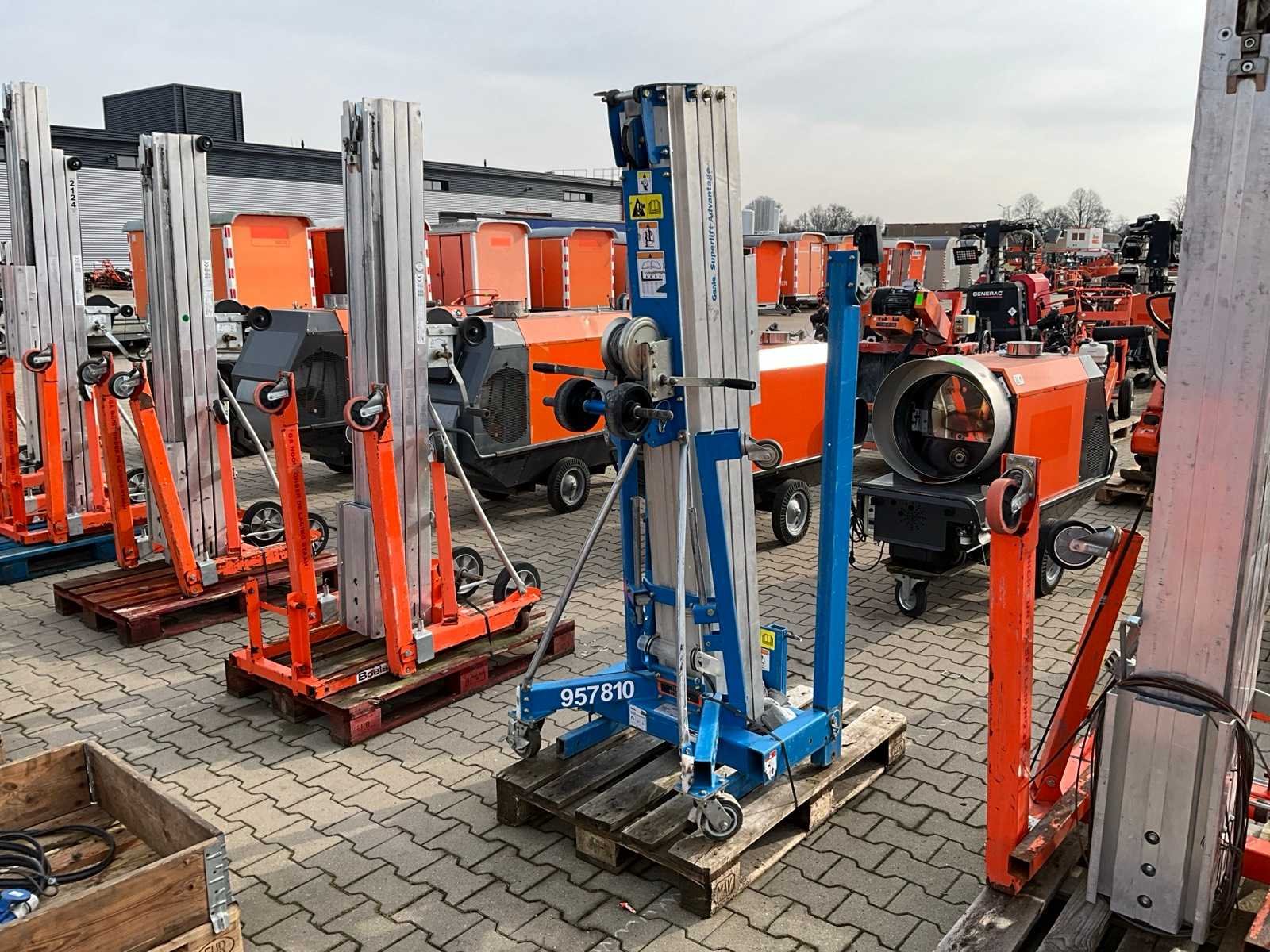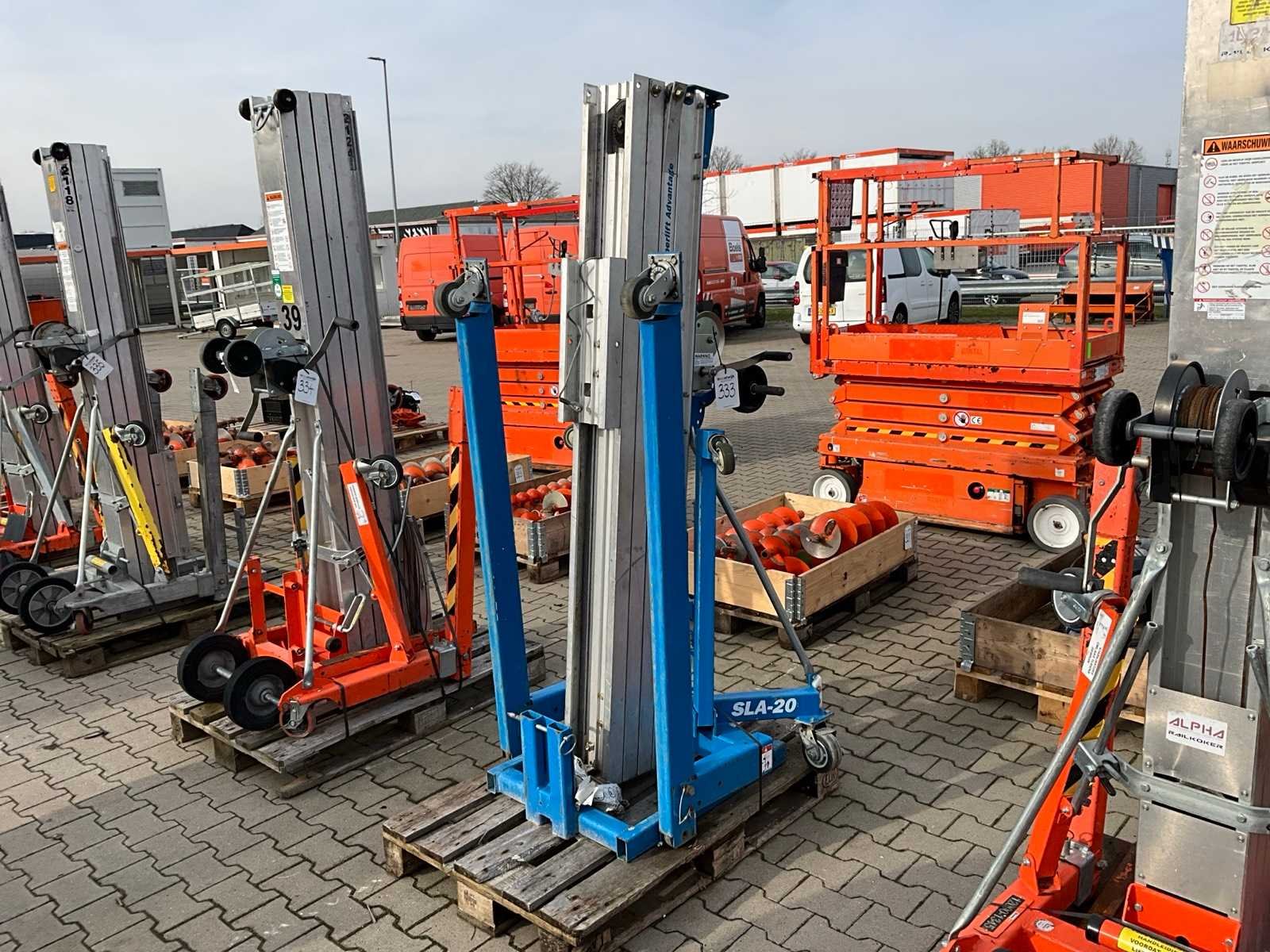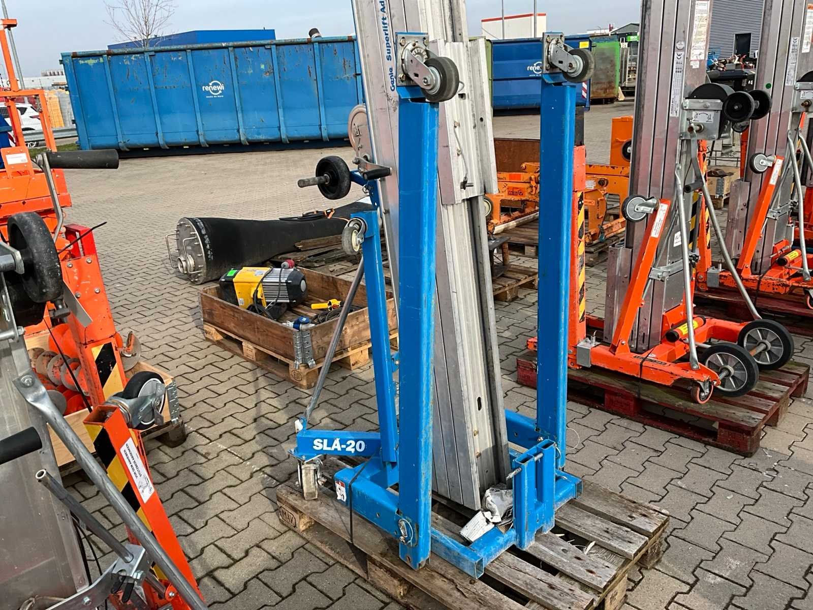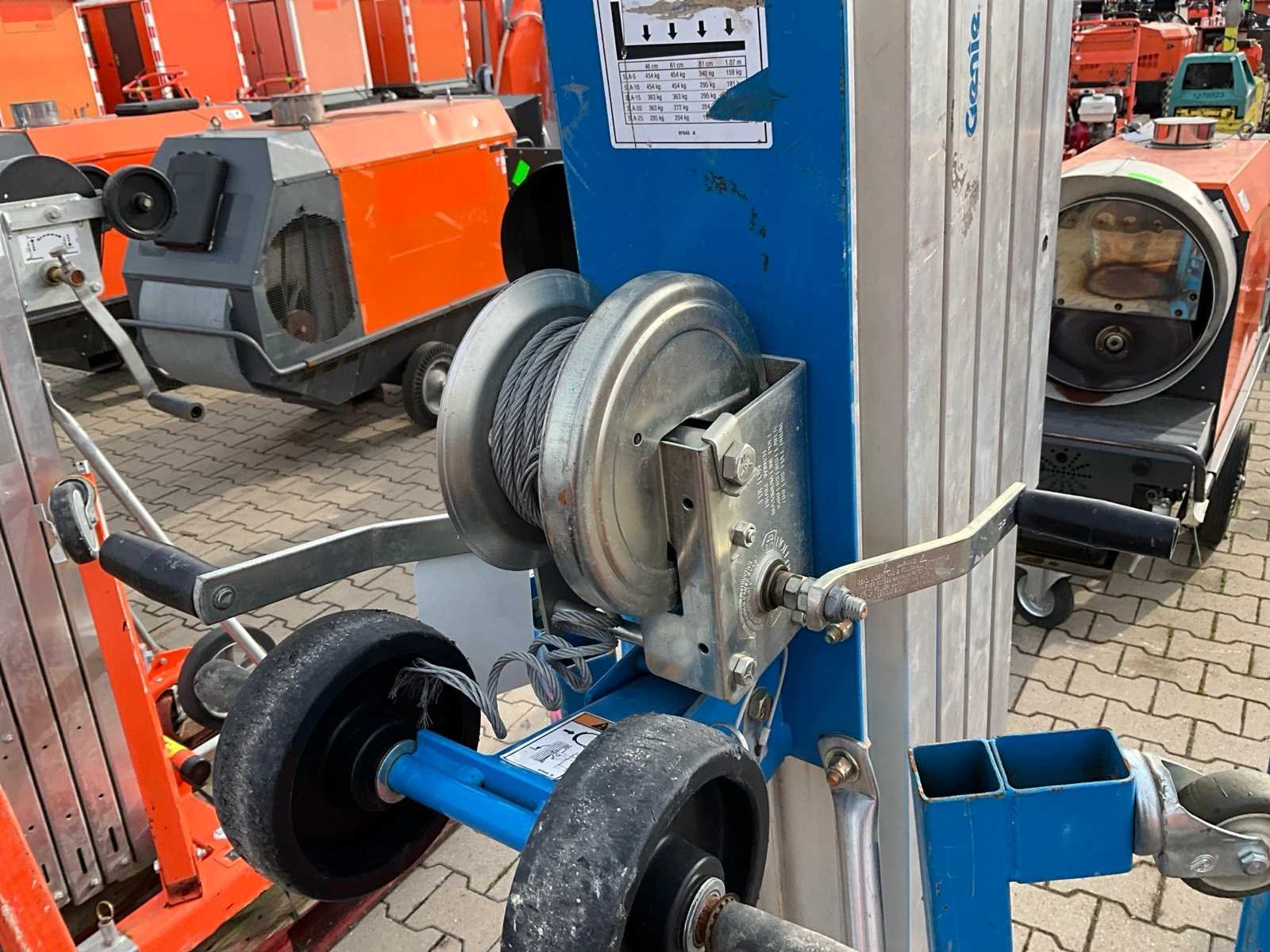 Handbediend; verrijdbaar; gegalvaniseerd staal; staalkabellier; opklapbaar onderstel; staalkabellier; toepassing: onderhoudswerkzaamheden / montage werkzaamheden / installatie werkzaamheden; incompleet; not working; staalkabel defect; Nee Merk: Genie Type: SLA-20 Bouwjaar: 2020 Serienummer: SLAP-76519 Handbediend: true Max. hefcapaciteit: 363kg Totale afmeting L: 860mm Totale afmeting Breedte: 800mm Totale afmeting Hoogte: 2130mm Eigen gewicht: 146kg