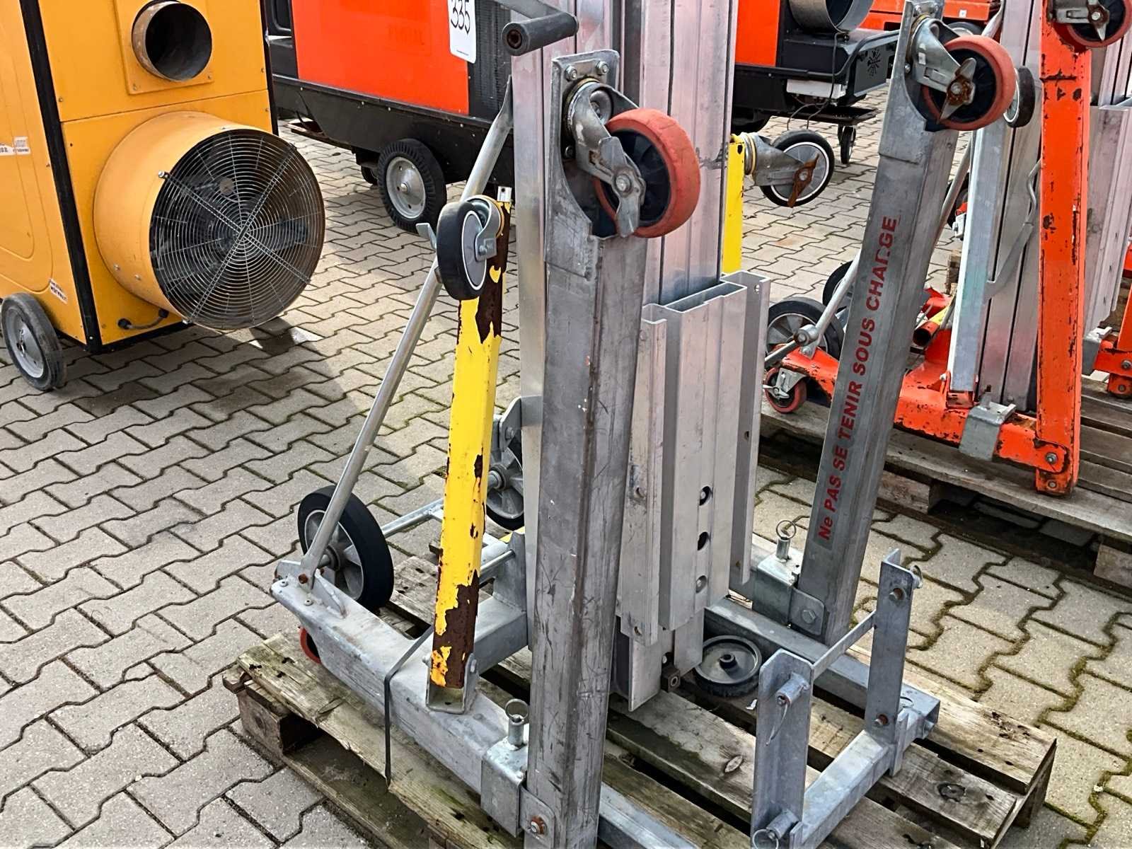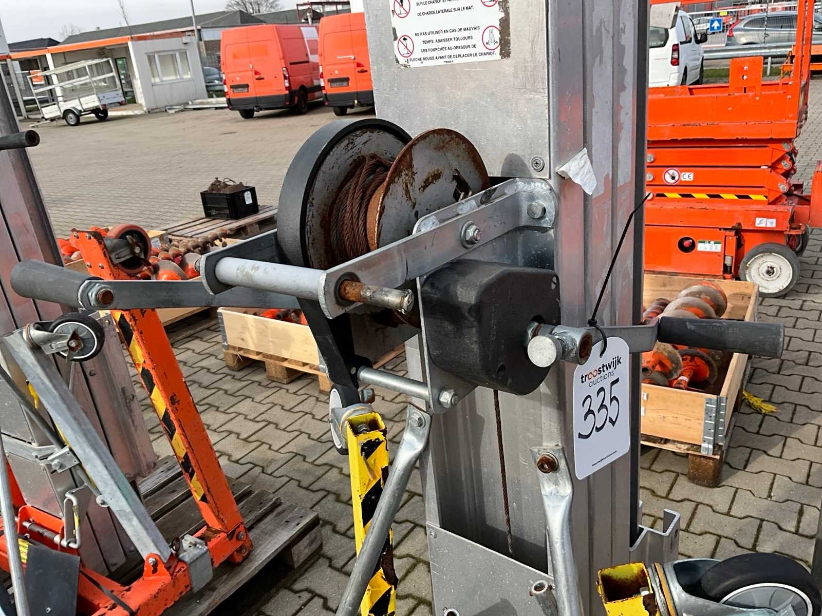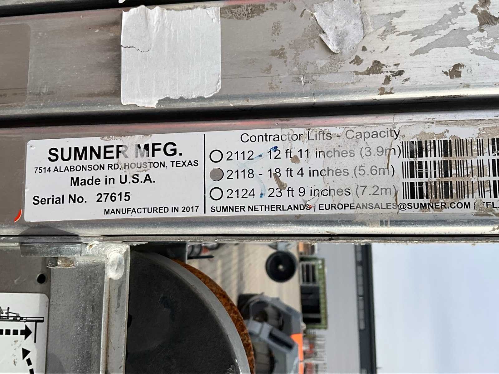 Handbediend; verrijdbaar; gegalvaniseerd staal; staalkabellier; opklapbaar onderstel; staalkabellier; toepassing: onderhoudswerkzaamheden / montage werkzaamheden / installatie werkzaamheden; working condition not verified; Nee Merk: Sumner Manufacturing Type: 2118 Bouwjaar: 2017 Serienummer: 27615 Handbediend: true Max. hefhoogte: 5600mm Max. hefcapaciteit: 296kg Totale afmeting L: 860mm Totale afmeting Breedte: 800mm Totale afmeting Hoogte: 2130mm Eigen gewicht: 146kg