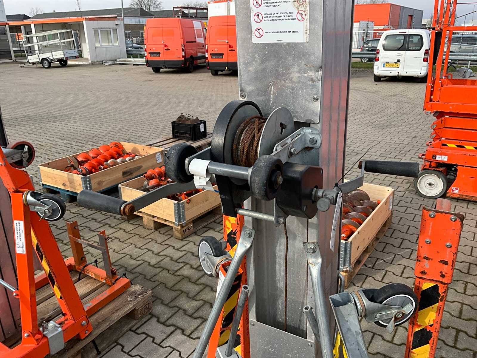Handbediend; verrijdbaar; gegalvaniseerd staal; staalkabellier; opklapbaar onderstel; staalkabellier; toepassing: onderhoudswerkzaamheden / montage werkzaamheden / installatie werkzaamheden; incompleet; working condition not verified; Nee Merk: Sumner Manufacturing Type: 2118 Bouwjaar: 2018 Serienummer: 33665 Handbediend: true Max. hefhoogte: 5600mm Max. hefcapaciteit: 296kg Totale afmeting L: 860mm Totale afmeting Breedte: 800mm Totale afmeting Hoogte: 2130mm Eigen gewicht: 146kg