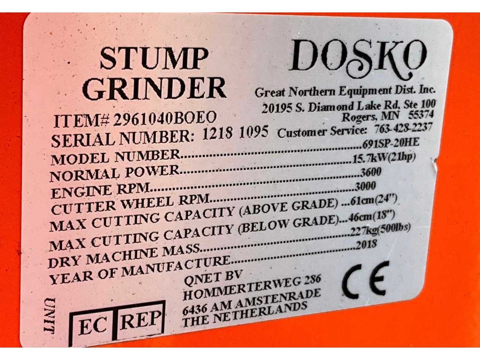 Werkbereik 450 mm onder bodemniveau; werkbereik 600 mm boven bodemniveau; Honda benzinemotor; bedieningsbeugel; 15,4 kW; 21 Pk; working condition Nee Merk: Dosko Type: 691SP-20 HE Bouwjaar: 2018 Serienummer: 12181095 Brandstofmotor aangedreven: true Brandstof: Benzine Aspen4 Eigen gewicht: 230kg Totale afmeting L: 2200mm Totale afmeting Breedte: 760mm Totale afmeting Hoogte: 145mm