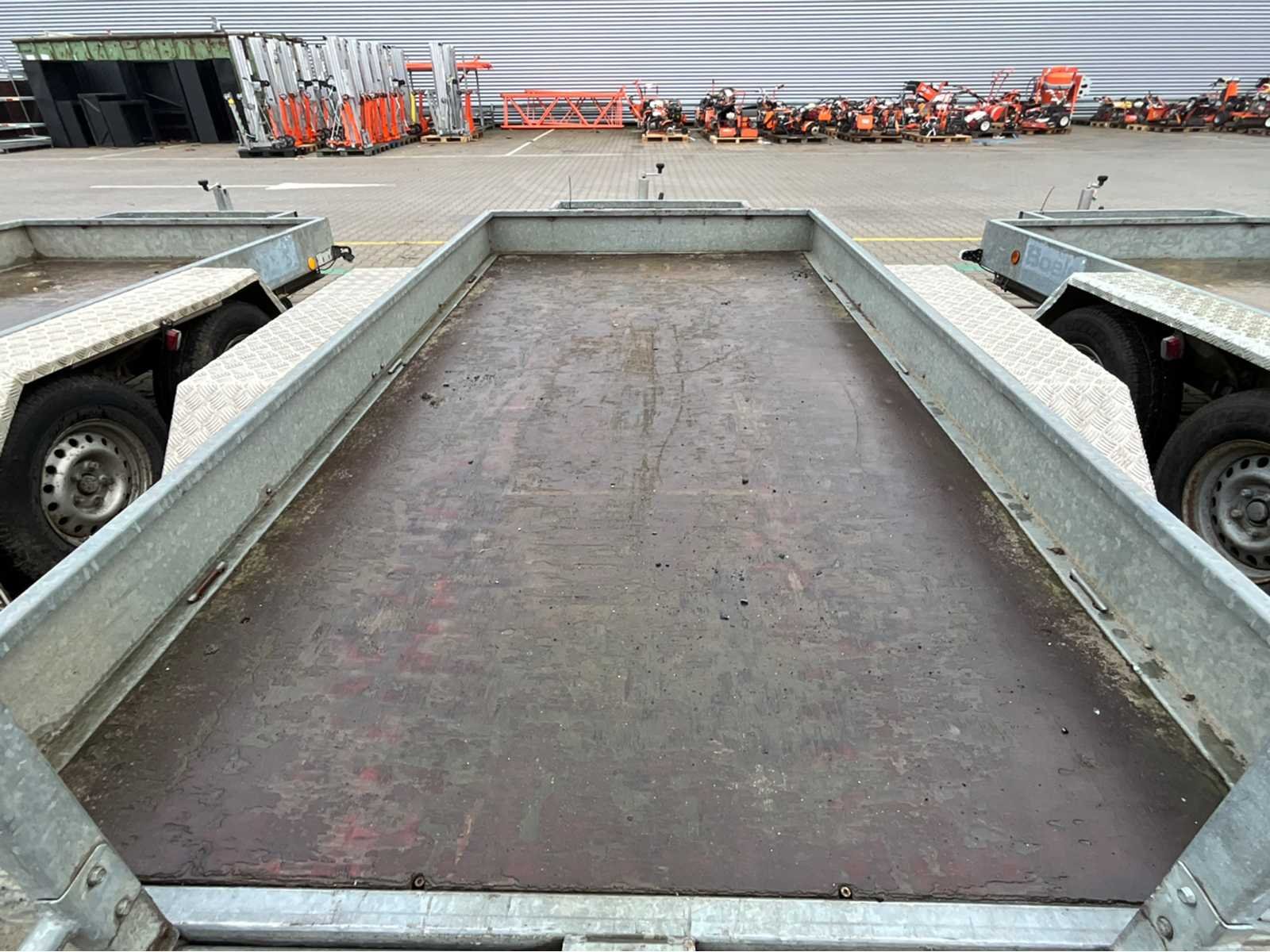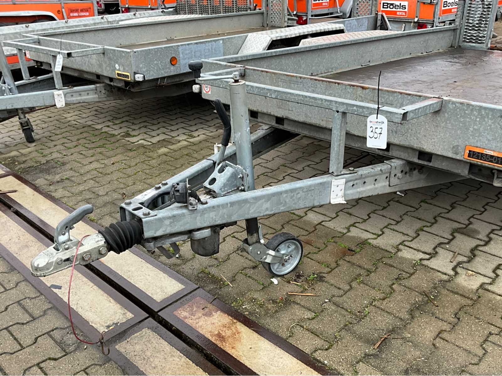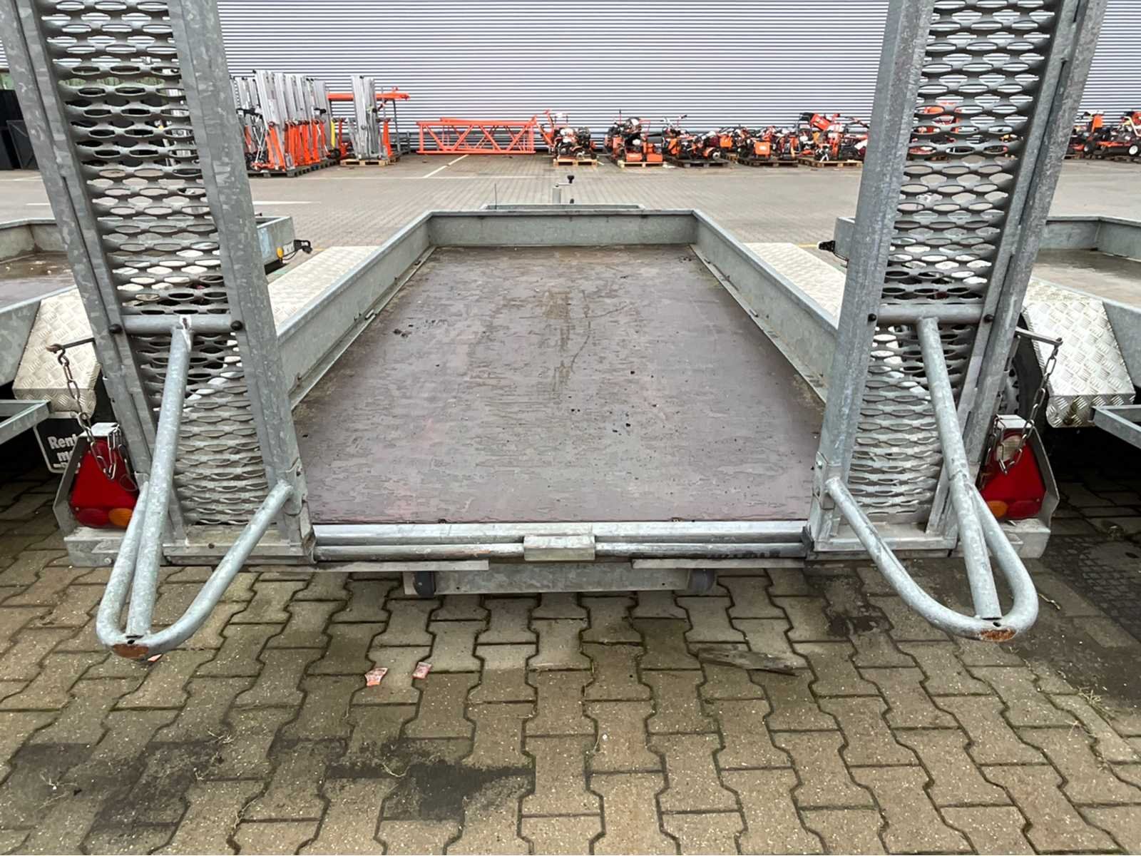 Lengte 5140 mm; breedte 2300 mm; hoogte 2180 mm; omschrijving: gegalvaniseerd staal frame; vaste oprijplaten; bindogen; graafbaksteun; neuswiel; geremd; (de koper dient bij transport over de weg zelf te voorzien in een geldig kenteken; een 7 of 9 polige aansluitstekker of verloopstuk met kabel (verlengsnoer kan ter plaatse tegen betaling aangekocht worden); eventueel extra lichtbalk); Duitse kentekenpapieren; gelijkvormigheidsattest; (VIE-YE883) Nee Merk: Atec Type: MG1 Bouwjaar: 2012 Chassisnummer: XMKM93317R2C38805 Aantal assen: 2 Laadbak afmeting l: 335cm Laadbak afmeting b: 175cm Laadvermogen: 3500kg