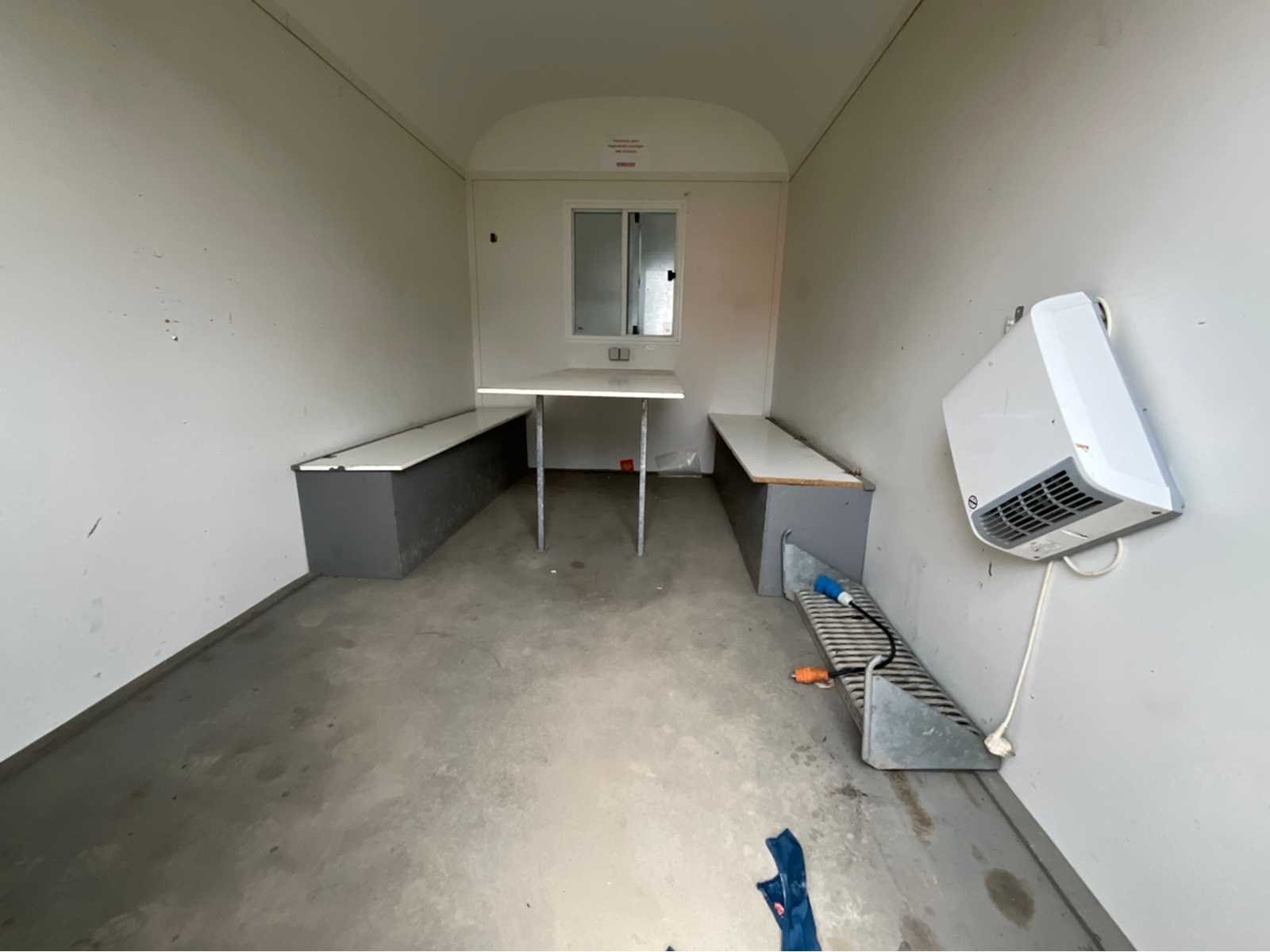 Staalplaat corpus; geremd; neuswiel; 4x stelvoet; kogelkoppeling en transportverlichting; 1x deur; raam voorzien van gegalvaniseerd staal luik; tafel; 2x zitbank; kachel; (de koper dient bij transport over de weg zelf te voorzien in een geldig kenteken; een 7 of 9 polige aansluitstekker of verloopstuk met kabel (verlengsnoer kan ter plaatse tegen betaling aangekocht worden); eventueel extra lichtbalk; Duitse kentekenpapieren; gelijkvormigheidsattest; (M-U8956) Nee Merk: Weiro Holzbau Bauwagen Type: Rasant 350 Bouwjaar: 2018 Chassisnummer VIN: W09353113JWH37673 Afmeting l: 3520mm Afmeting b: 2110mm Afmeting h: 2450mm Aantal ramen: 1 Totale afmeting L: 5120mm Totale afmeting Breedte: 2110mm Totale afmeting Hoogte: 2930mm