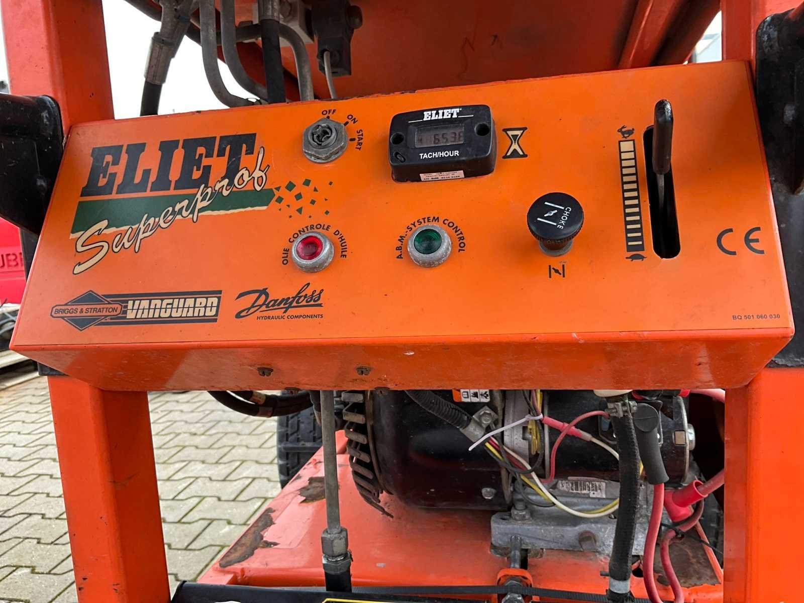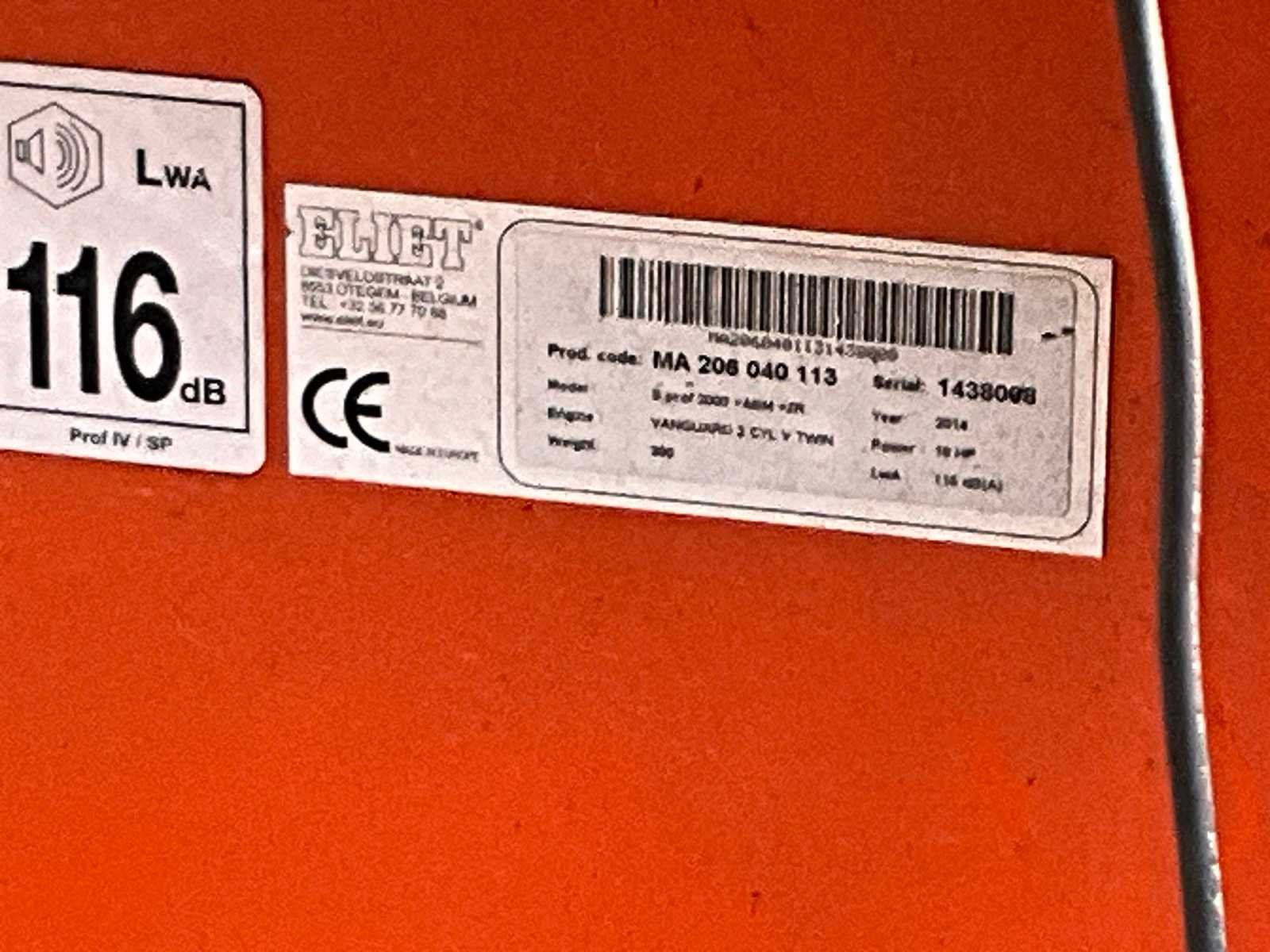 Verrijdbaar; luchtbanden; afgelezen urenstand 654 uur; benzinemotor Vanguard; 13,4 kW; working condition Nee Merk: Eliet Type: SuperProf 2000 Bouwjaar: 2014 Serienummer: 1438008 Brandstofmotor aangedreven: true Brandstof: Benzine Eigen gewicht: 332kg Totale afmeting L: 1850mm Totale afmeting Breedte: 850mm Totale afmeting Hoogte: 1400mm