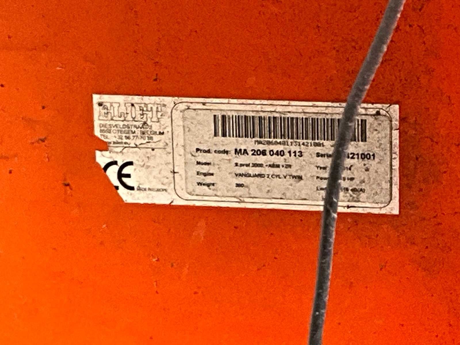 Verrijdbaar; luchtbanden; afgelezen urenstand 92 uur; benzinemotor Vanguard; 13,4 kW; working condition Nee Merk: Eliet Type: SuperProf 2000 Bouwjaar: 2014 Serienummer: 1421001 Brandstofmotor aangedreven: true Brandstof: Benzine Eigen gewicht: 332kg Totale afmeting L: 1850mm Totale afmeting Breedte: 850mm Totale afmeting Hoogte: 1400mm