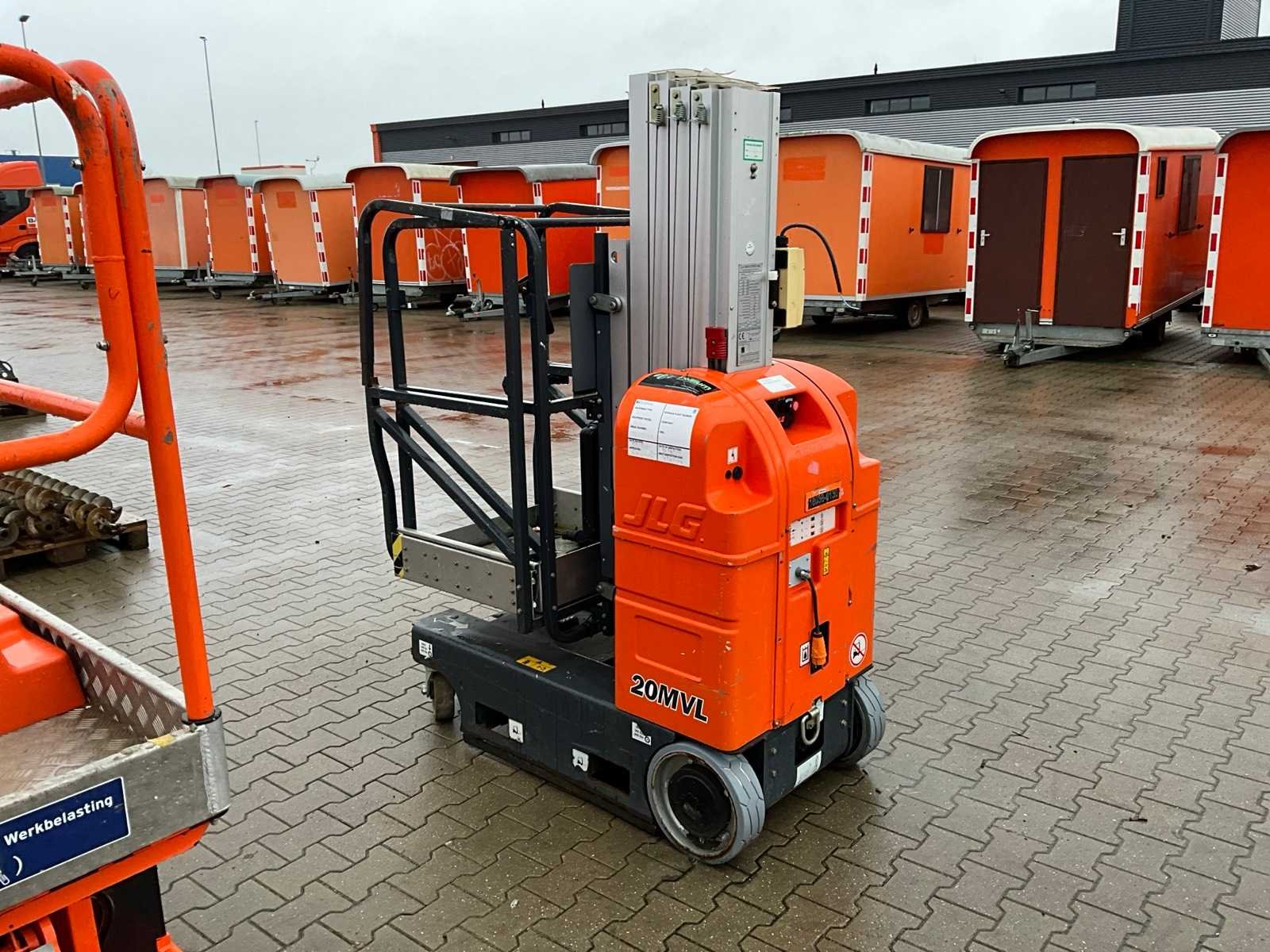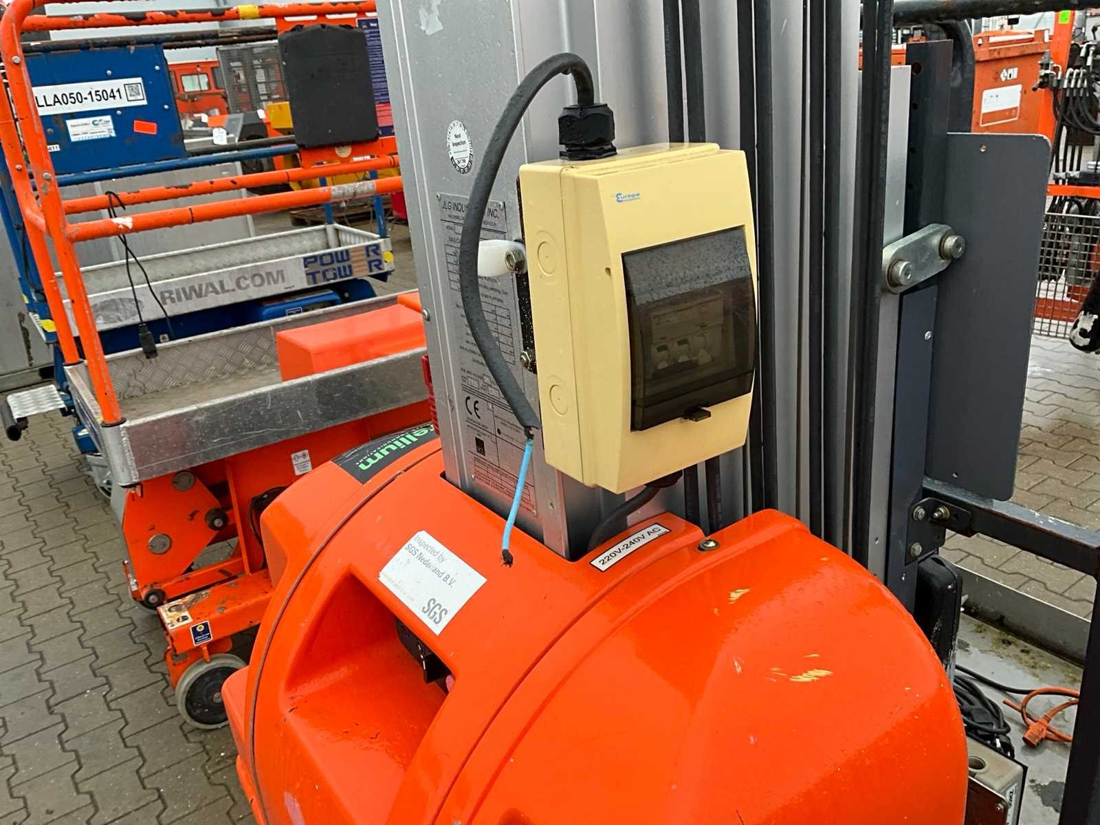 Verrijdbaar; staal / aluminium; maximum platform vloerhoogte 5940 mm; kooibediening; 230 Volt stroom aansluiting platform; uitschuifbaar plateau afmeting 1200x650 mm; ingebouwde acculader; 24 Volt; 230 Volt; not working; Nee Merk: JLG Type: 20MVL Bouwjaar: 2016 Serienummer: 0130028797 Elektrisch: true Masthoogwerker: true Werkhoogte: 7940mm Plateau afm. l: 650mm Plateau afm. b: 650mm Platform capaciteit: 160kg Accu lader: true Eigen gewicht: 1050kg Totale afmeting L: 1050mm Totale afmeting Breedte: 800mm Totale afmeting Hoogte: 2050mm
