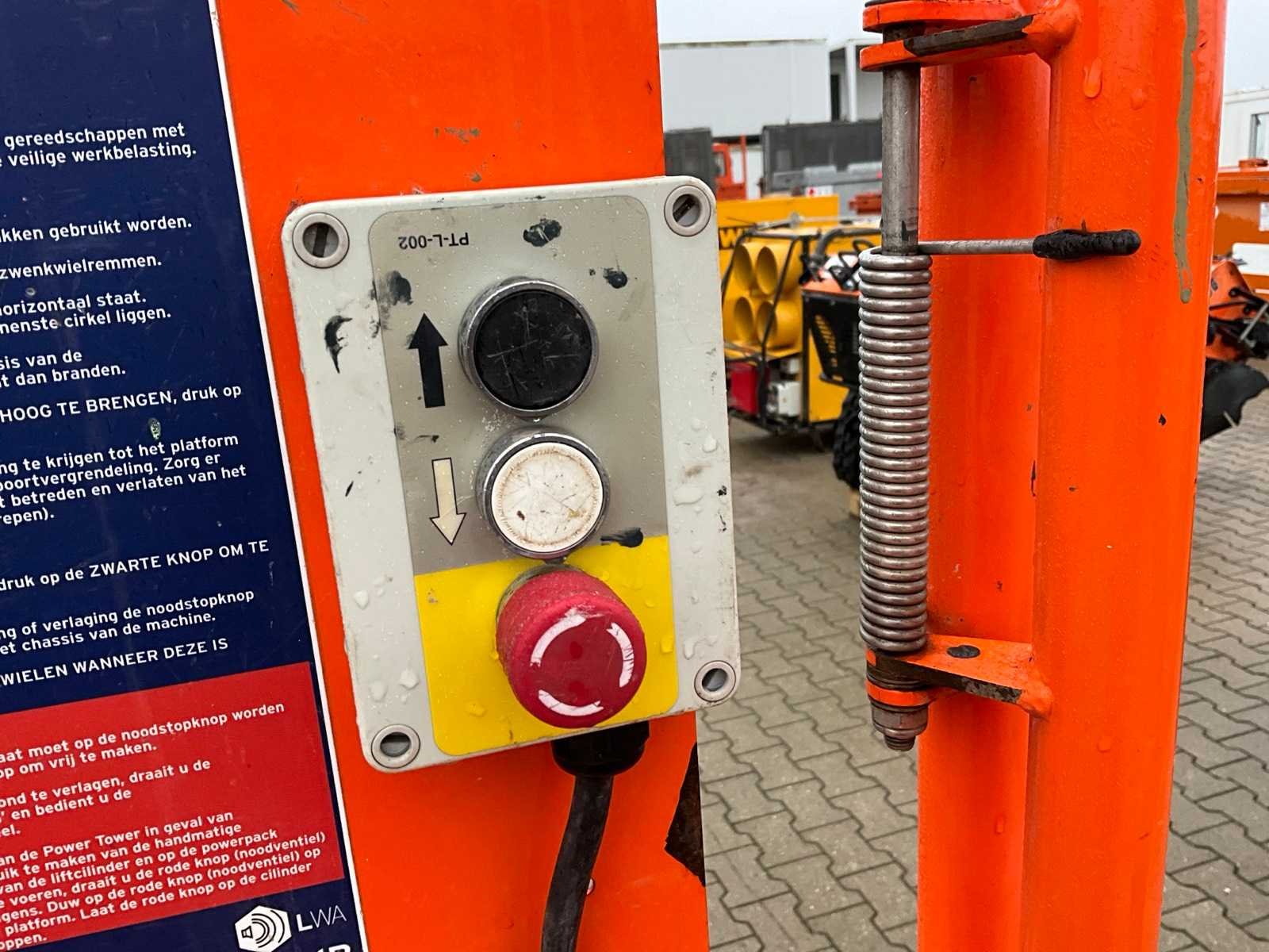 Manueel verrijdbaar; platform vloerhoogte 3100 mm; ingebouwde acculader; not working; Nee Merk: JLG Type: Power Towers Bouwjaar: 2021 Serienummer: P900007092 Elektrisch: true Knikarm hoogwerker: true Werkhoogte: 5100mm Plateau afm. l: 1500mm Plateau afm. b: 750mm Platform capaciteit: 250kg Eigen gewicht: 342kg Totale afmeting L: 1500mm Totale afmeting Breedte: 750mm Totale afmeting Hoogte: 1850mm
