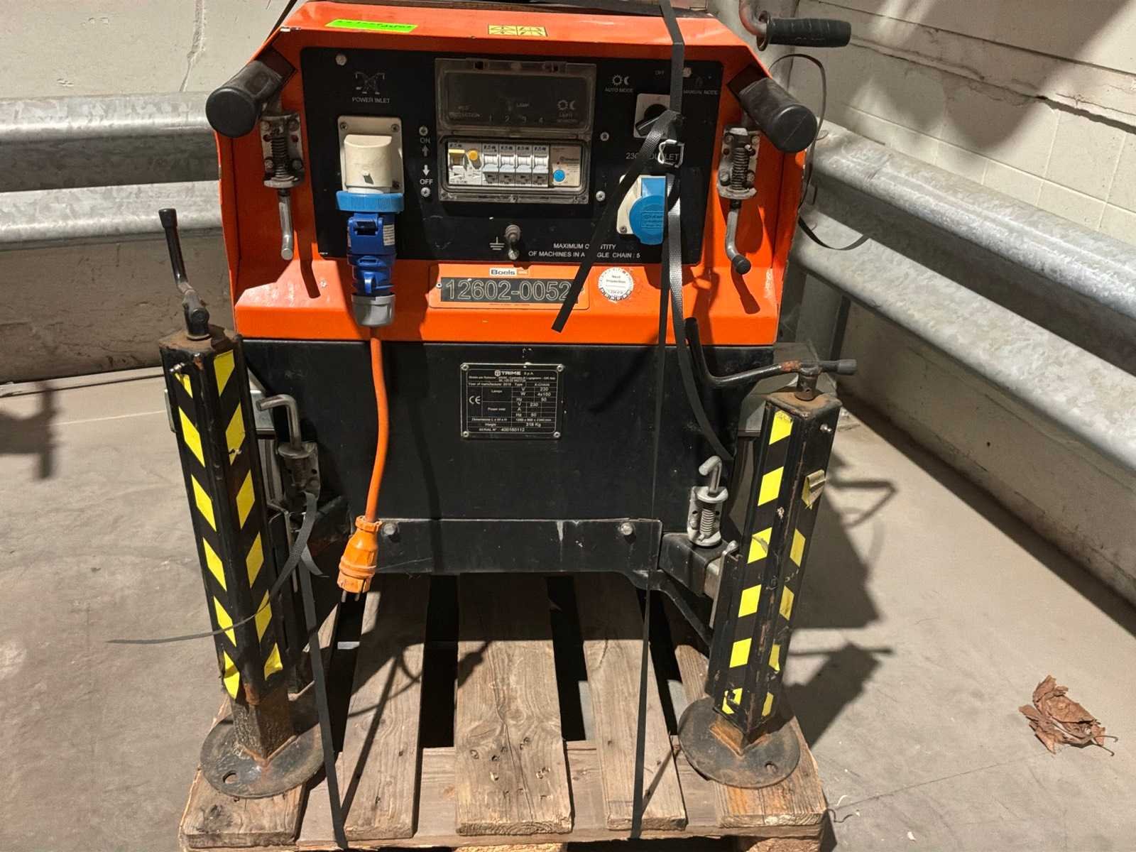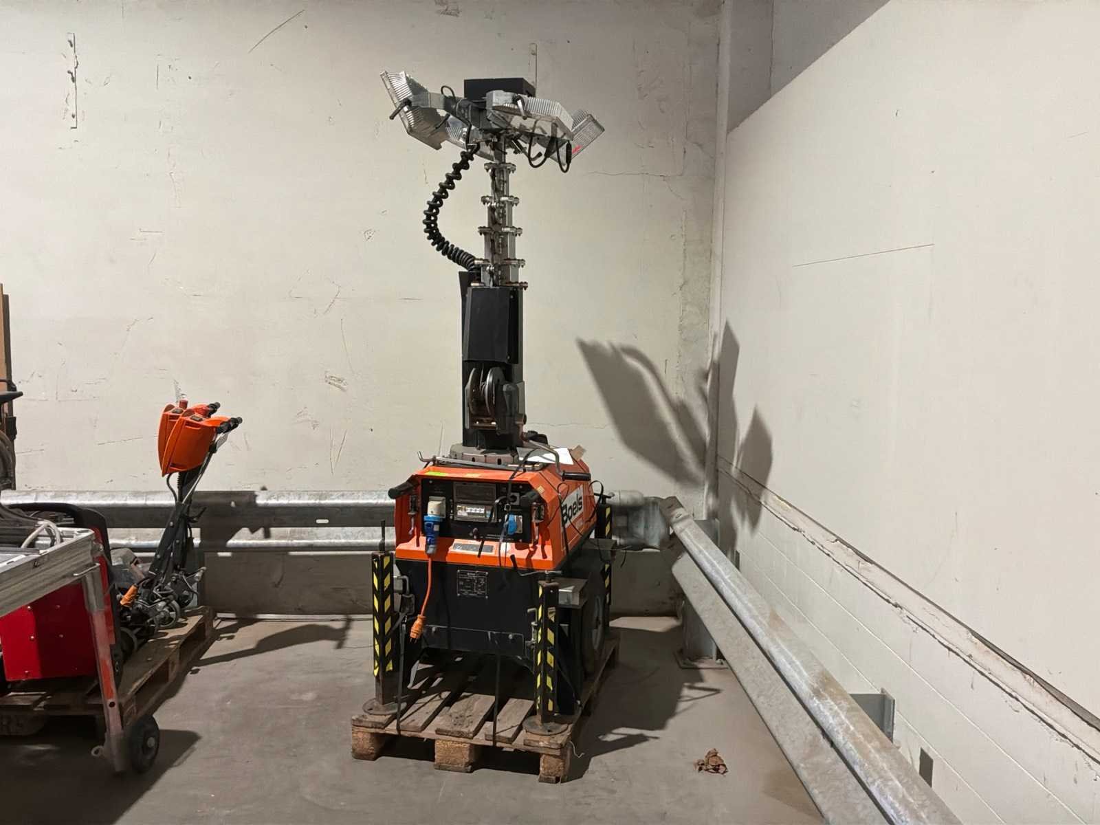 Verrijdbaar; 4x LED lamp 150 Watt waarvan 2 lampen defect; 230 Volt; maximum masthoogte circa 7 meter; voorzien van heftruck vorksleuven; 4x uitschuifbare stelvoet; hijsoog; verrijdbaar; working condition; Nee Merk: Trime Type: X-Chain Bouwjaar: 2016 Serienummer: 400160118 Eigen gewicht: 318kg Totale afmeting L: 1150mm Totale afmeting Breedte: 760mm Totale afmeting Hoogte: 2380mm