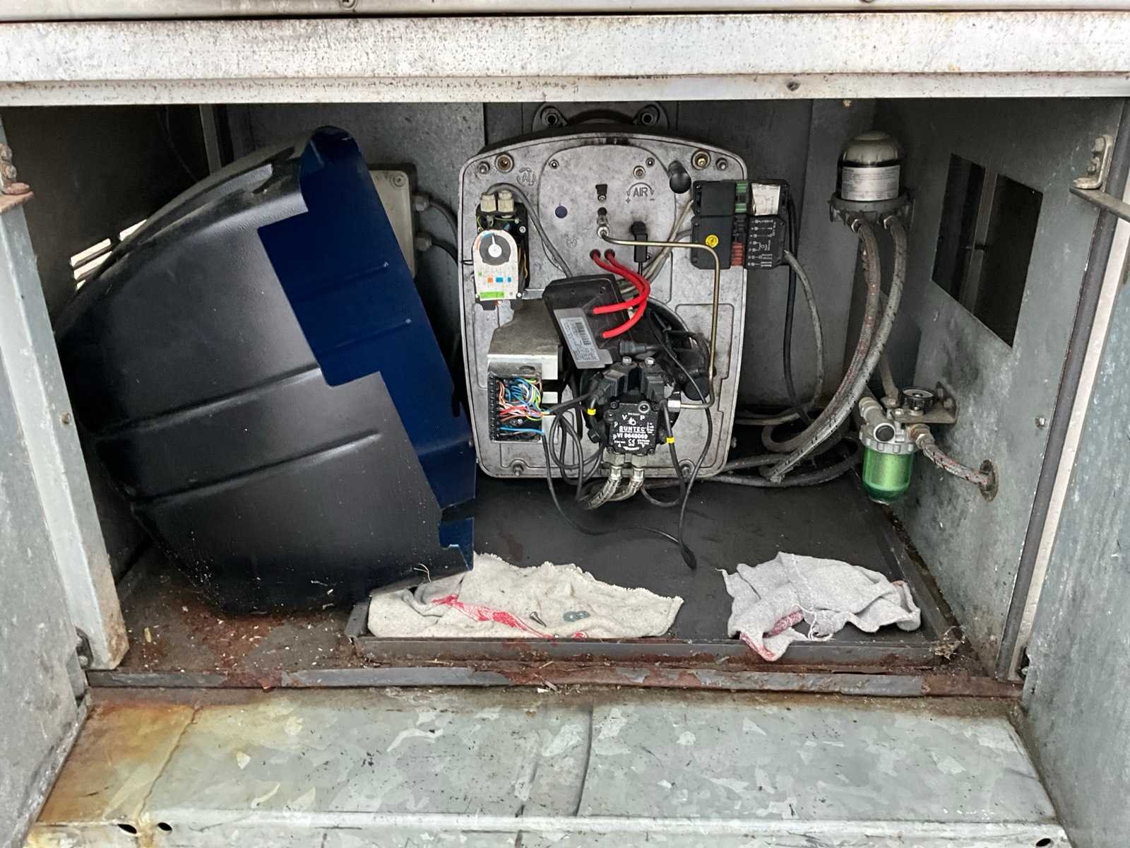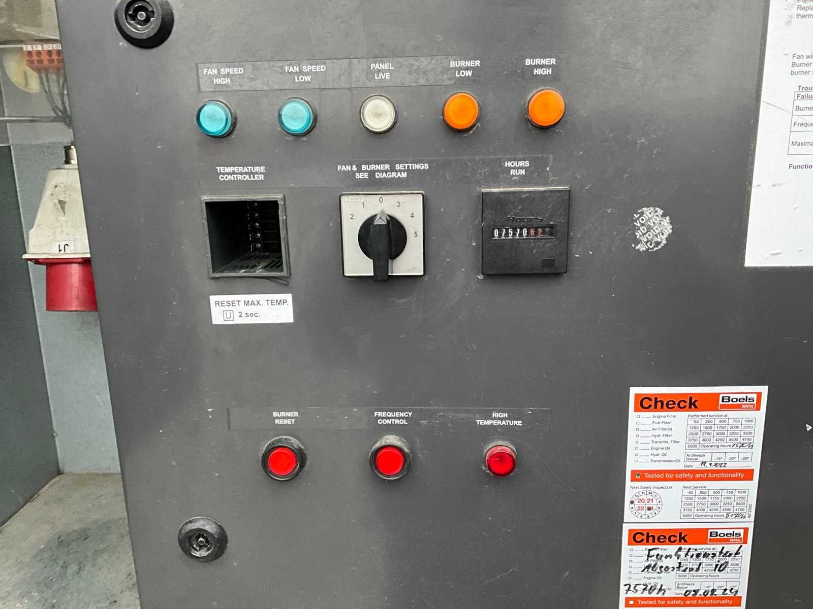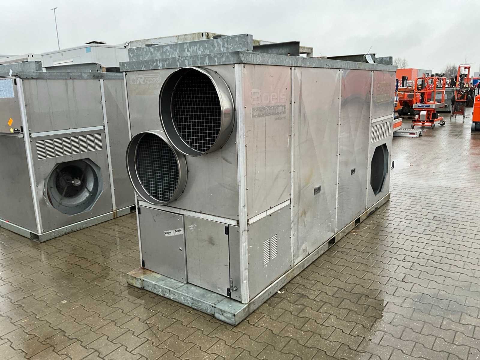 Gegalvaniseerd staal onderstel; gegalvaniseerd staal hijsframe; heftruck vorksleuven; roestvast staal behuizing; diesel gestookt; aansluiting externe brandstoftank; verbruik circa 38 liter brandstof / uur; volumestroom 24000 m3 / uur; afgelezen urenstand 7571 uur; gebruiksporen; working condition not verified; Nee Merk: Thermobile Type: IMAC-4000 E Bouwjaar: 2009 Serienummer: 530005 Vermogen: 385kW Ventilator: true Totale afmeting L: 3900mm Totale afmeting Breedte: 1200mm Totale afmeting Hoogte: 2050mm Aansluiting: 400V