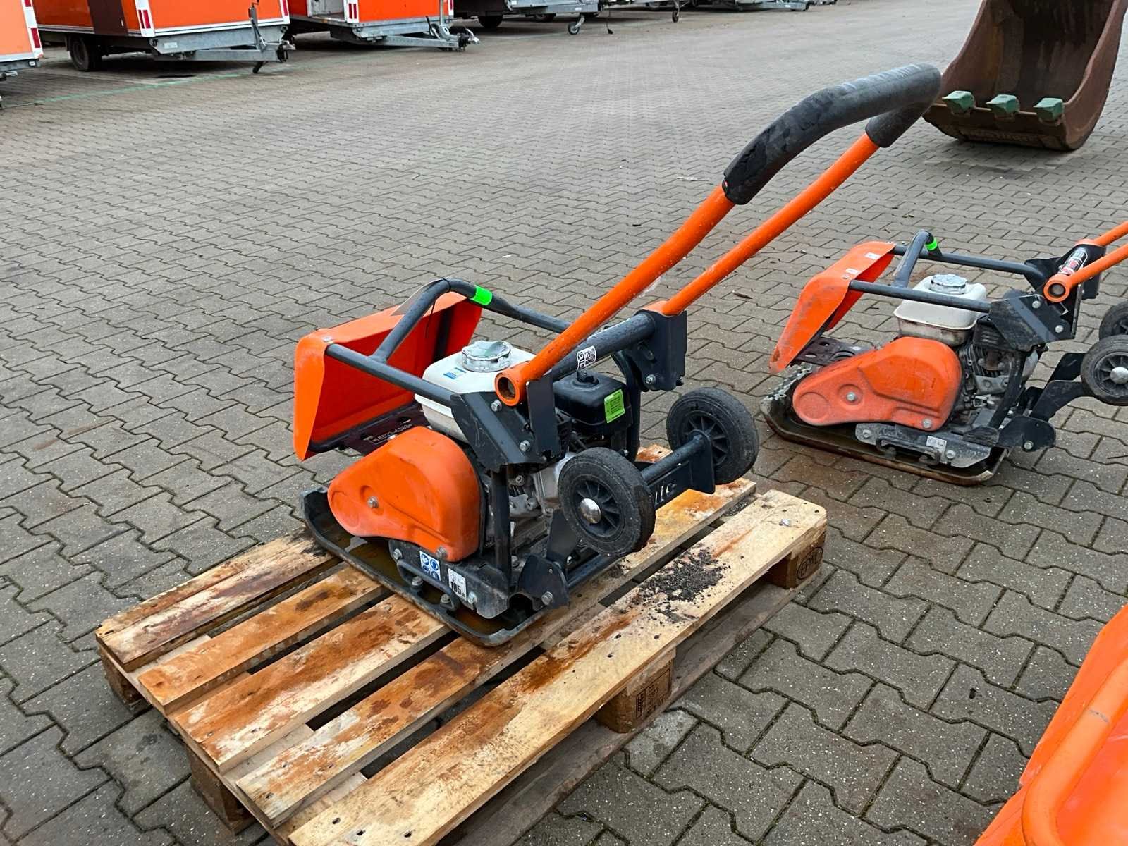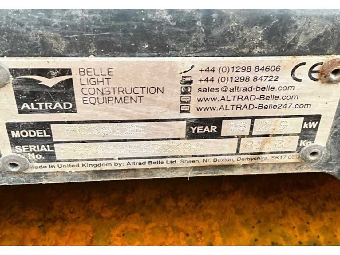 Neerklapbare beugel; wielset; toepassing: aantrillen van grond / stol / zand / klinkers / natuursteen; 4 Pk; hijsbeugel; working condition Nee Merk: Altrad / Belle Type: FC3612E Bouwjaar: 2018 Serienummer: FC3612E123386 Grondplaat afm. l: 610mm Grondplaat afm. b: 360mm Centrifugale kracht: 16kN Merk motor: Honda GX120 Motorvermogen (kW): 2.9kW Brandstof: Aspen4 Eigen gewicht: 81kg Totale afmeting L: 1050mm Totale afmeting Breedte: 400mm Totale afmeting Hoogte: 1000mm