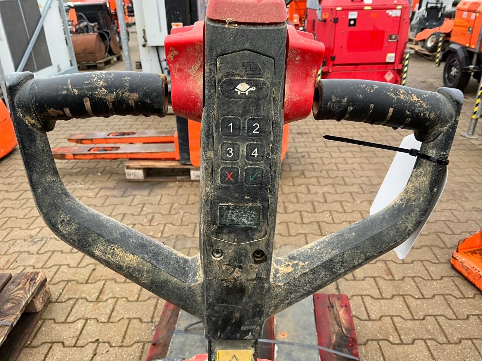 Ingebouwde acculader; not working; Nee Merk: Noblelift Type: PTE15N Bouwjaar: 2022 Serienummer: 20220800113 Hefvermogen: 1500kg Lepellengte: 1150mm Accu lader: true Eigen gewicht: 123kg Totale afmeting L: 1550mm Totale afmeting Breedte: 550mm Totale afmeting Hoogte: 1250mm
