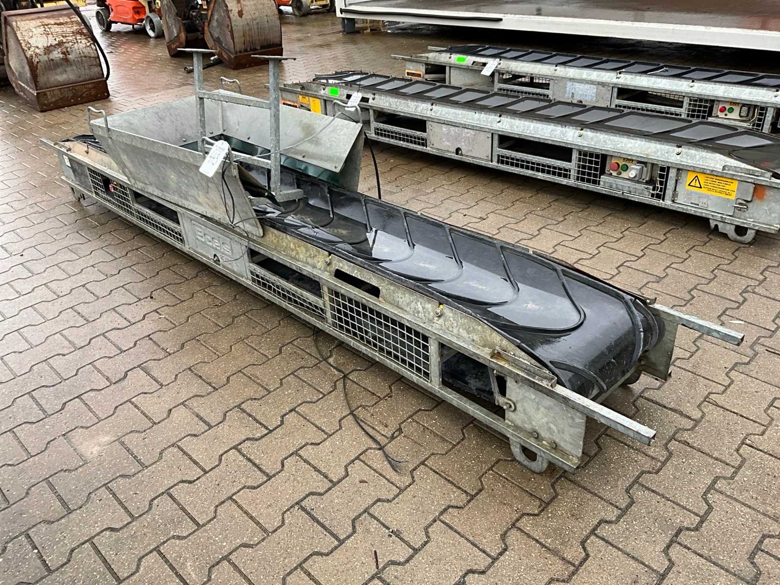 Gegalvaniseerd staal frame; capaciteit 50 ton / uur; snelheid 24 meter / minuut; maximale stijghoek 40°; maximale belasting 150 kg; 370 Watt; inclusief vultrechter en 1x steun; working condition not verified; Nee Merk: Etramo Eigen gewicht: 100kg Aansluiting: 230V Band afm. l: 3000mm Totale afmeting Hoogte: 300mm Band afm. b: 400mm Totale afmeting Breedte: 500mm Totale afmeting L: 3430mm Bouwjaar: 2017 Type: Mini Maxi Serienummer: 3S-0117-4341