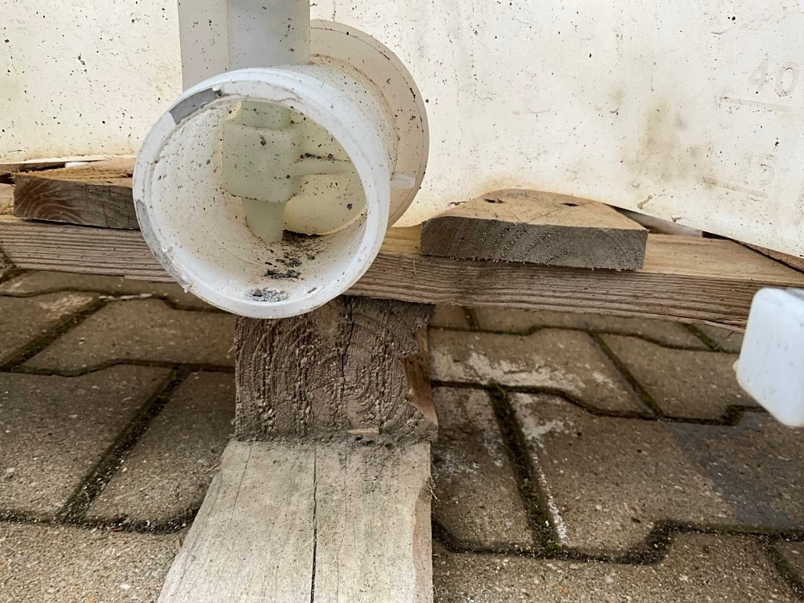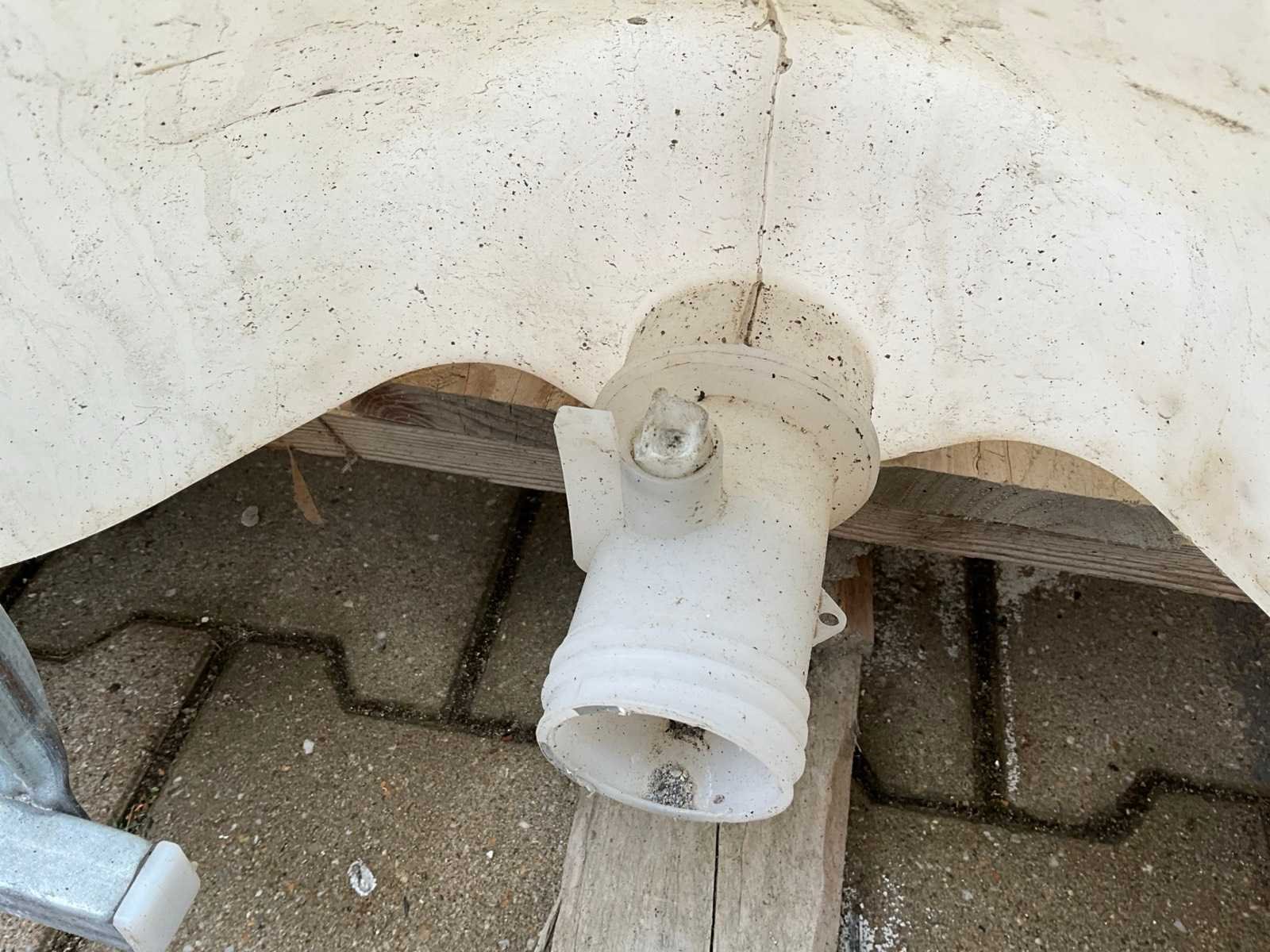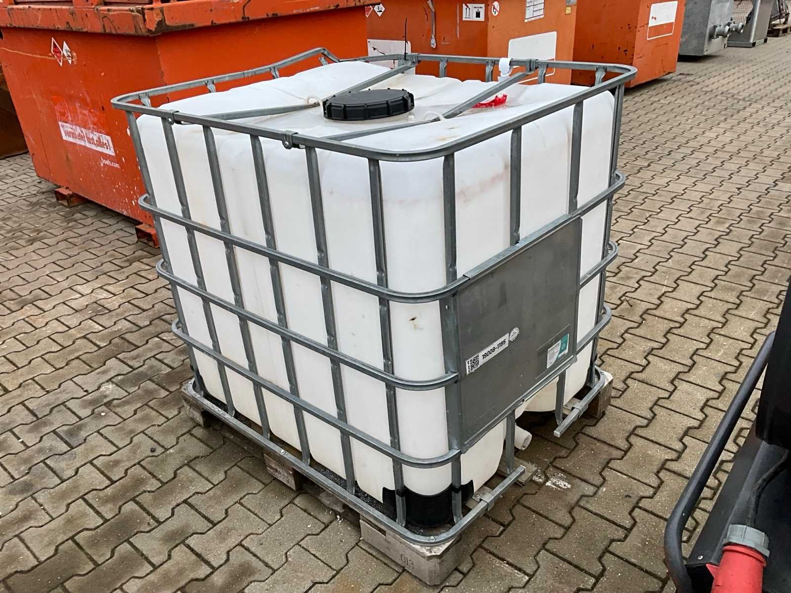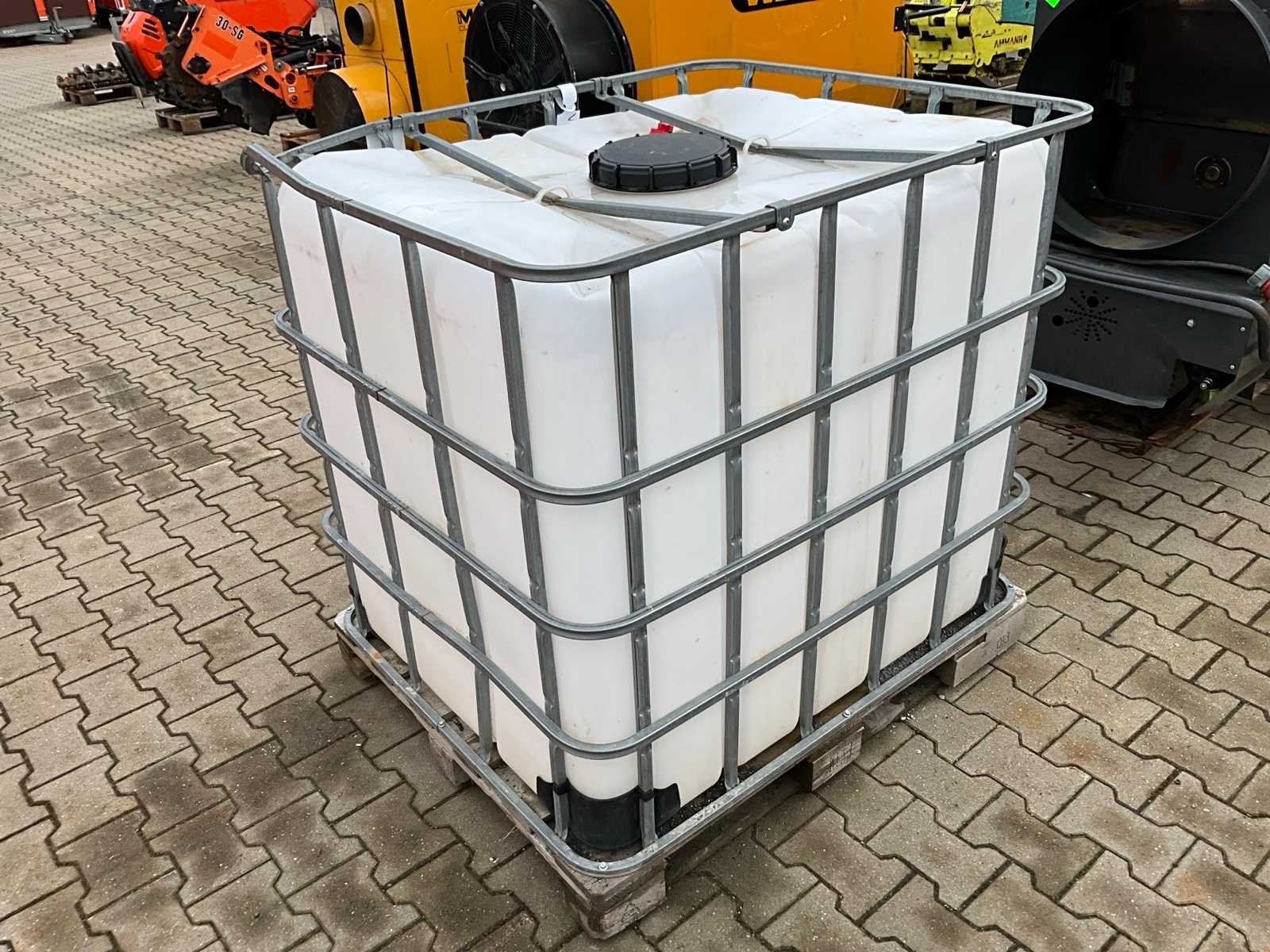 Gegalvaniseerd staal frame; kunststof kuip; capaciteit 1000 liter; gemonteerd op houten pallet; tapkraan afgebroken; dop; Nee Afmeting l: 1200mm Afmeting b: 1000mm Afmeting h: 1200mm