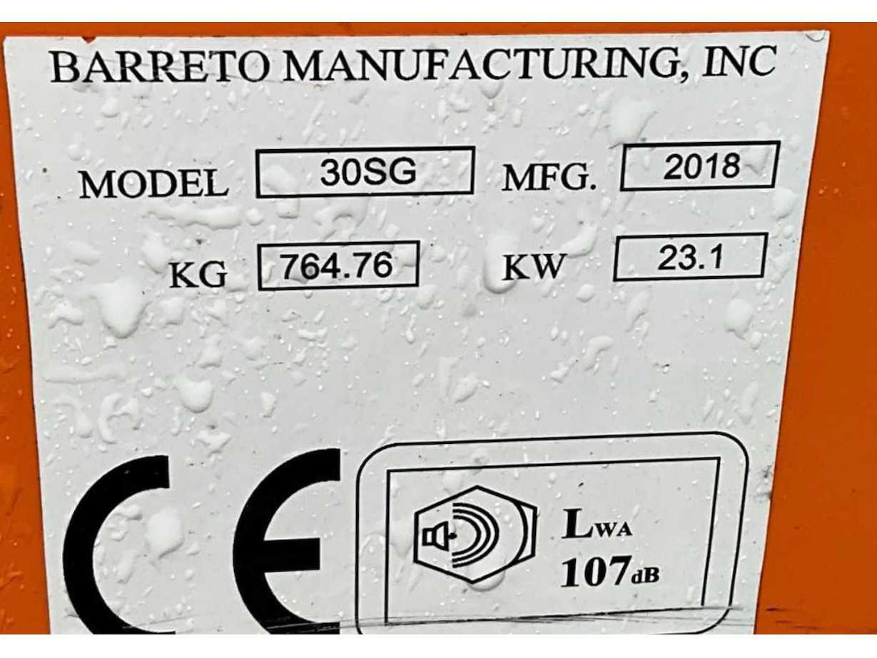 Freeskop draai en kantelbaar; Vanguard 31 PK motorblok; rupsbanden; urenstand niet afleesbaar; working condition not verified; Nee Merk: Barreto Type: E30SGB Bouwjaar: 2018 Serienummer: SG1466 Brandstofmotor aangedreven: true Brandstof: Benzine Aspen4 Vermogen: 23.1kW Eigen gewicht: 765kg Totale afmeting L: 2500mm Totale afmeting Breedte: 950mm Totale afmeting Hoogte: 1250mm