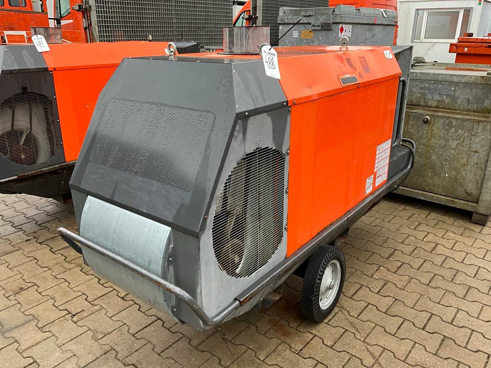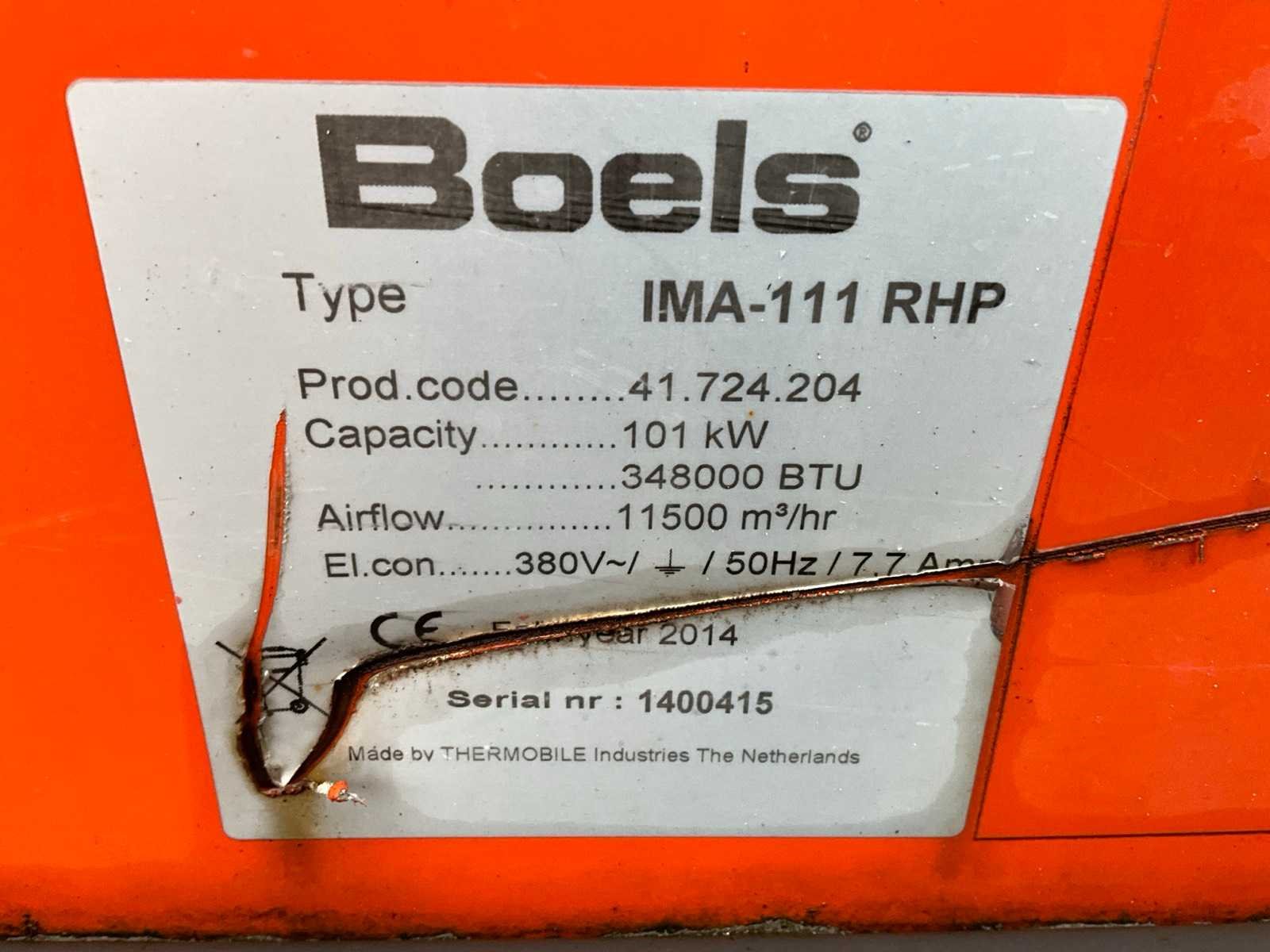 Verrijdbaar; indirect gestookt; diesel gestookt; externe brandstof aansluiting; volumestroom 11500 m3 / uur; 7,7 Ampère; luchtuitlaat diameter 600 mm; rookgasafvoer; hijsogen; heftruck vorksleuven; working condition; Nee Merk: Thermobile Type: IMA-111 RHP Bouwjaar: 2014 Serienummer: 1400415 Vermogen: 101kW Ventilator: true Totale afmeting L: 2300mm Totale afmeting Breedte: 800mm Totale afmeting Hoogte: 1450mm Aansluiting: 400V