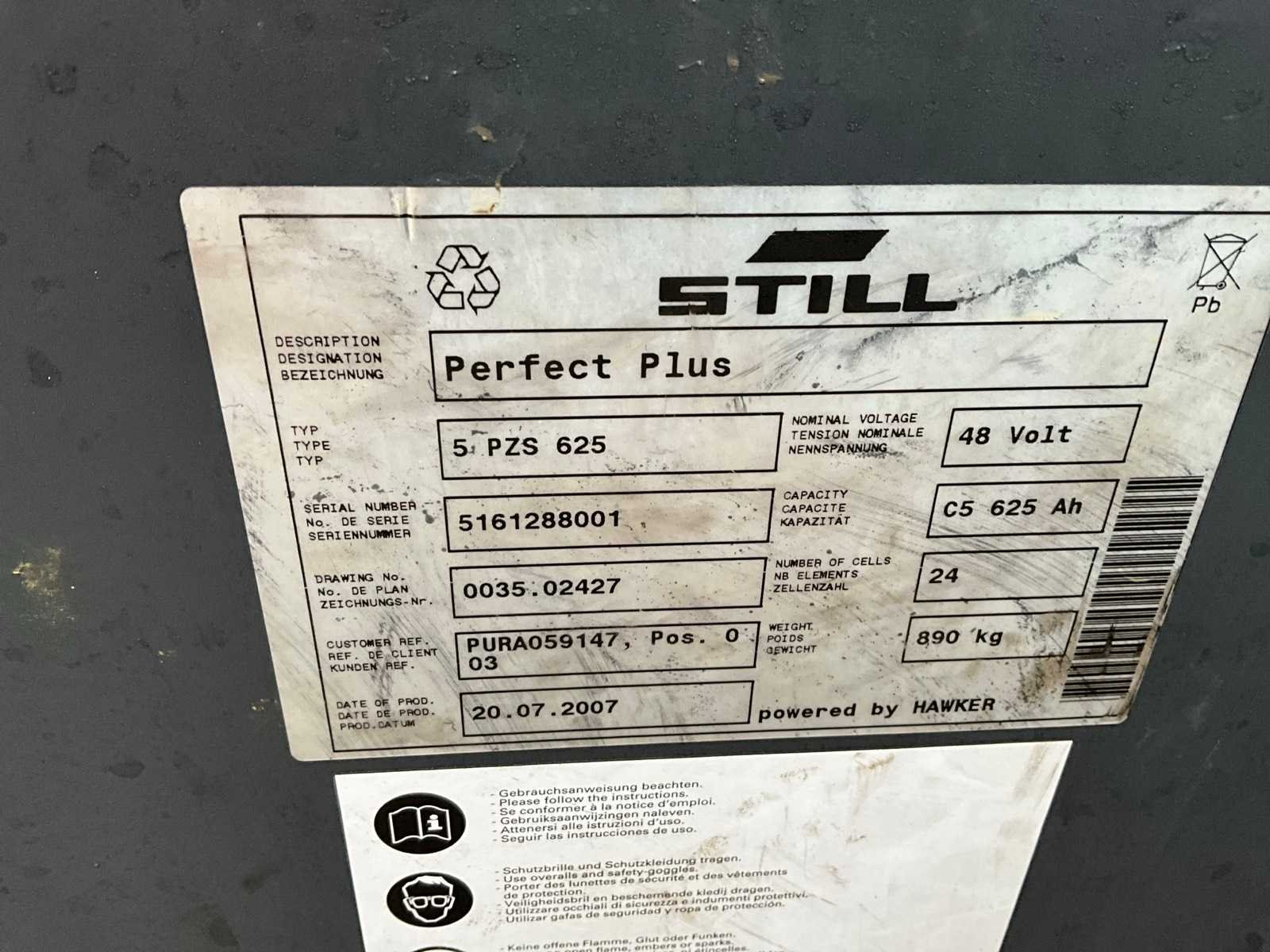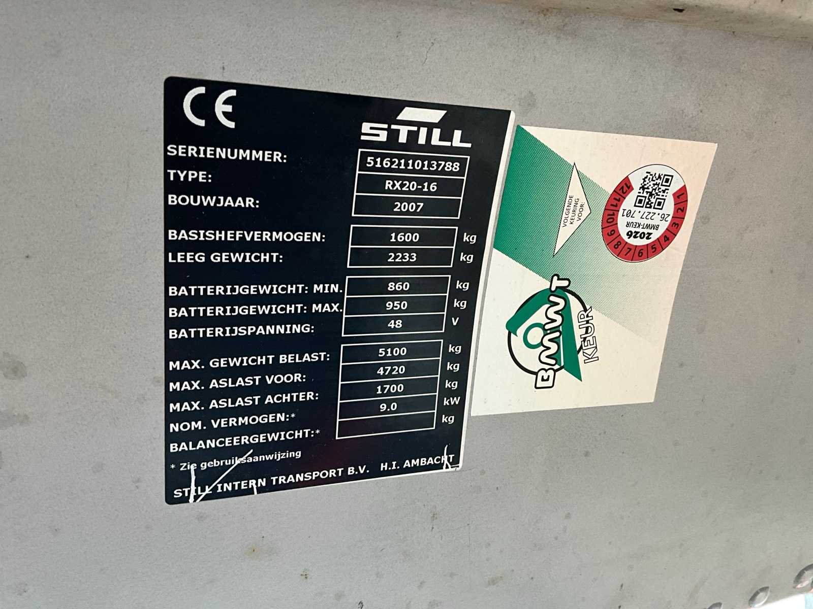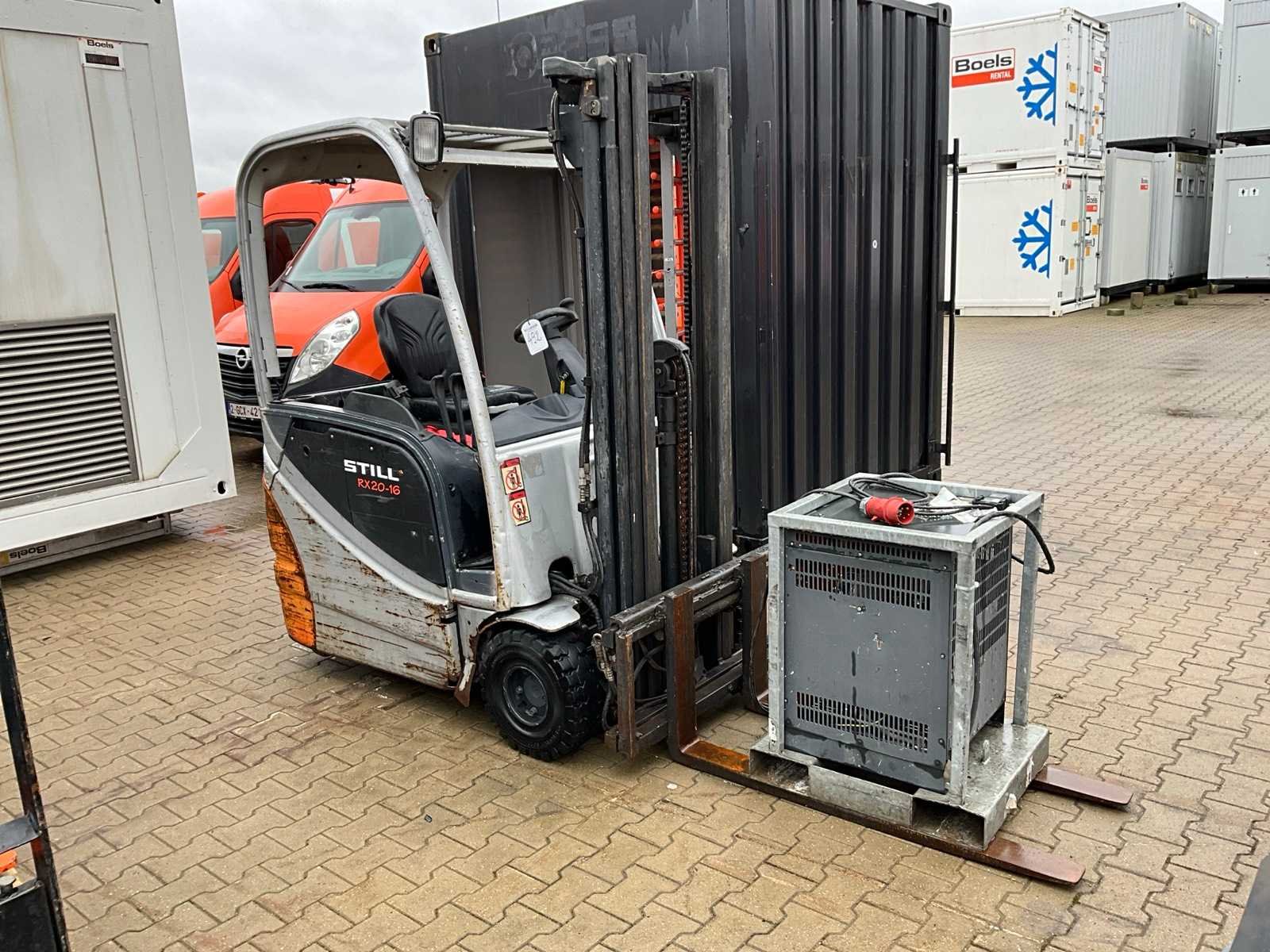 FEM2 voekenbord, 400 Volt acculader 48 Volt; not working; Nee Merk: Still Type: RX20-16 Bouwjaar: 2007 Serienummer: 516211013788 Brandstof: Elektrisch Soort band: Volrubber banden Aantal wielen: 3 Accu lader: true Free-lift: true Side-shift: true Triple mast: true Eigen gewicht: 3123kg Hefvermogen: 1600kg Lepellengte: 1200mm Min. hefhoogte: 4900mm Vol rubber banden: true Minimale doorrijhoogte: 2180mm Totale afmeting L: 3200mm Totale afmeting Breedte: 1100mm Totale afmeting Hoogte: 2200mm