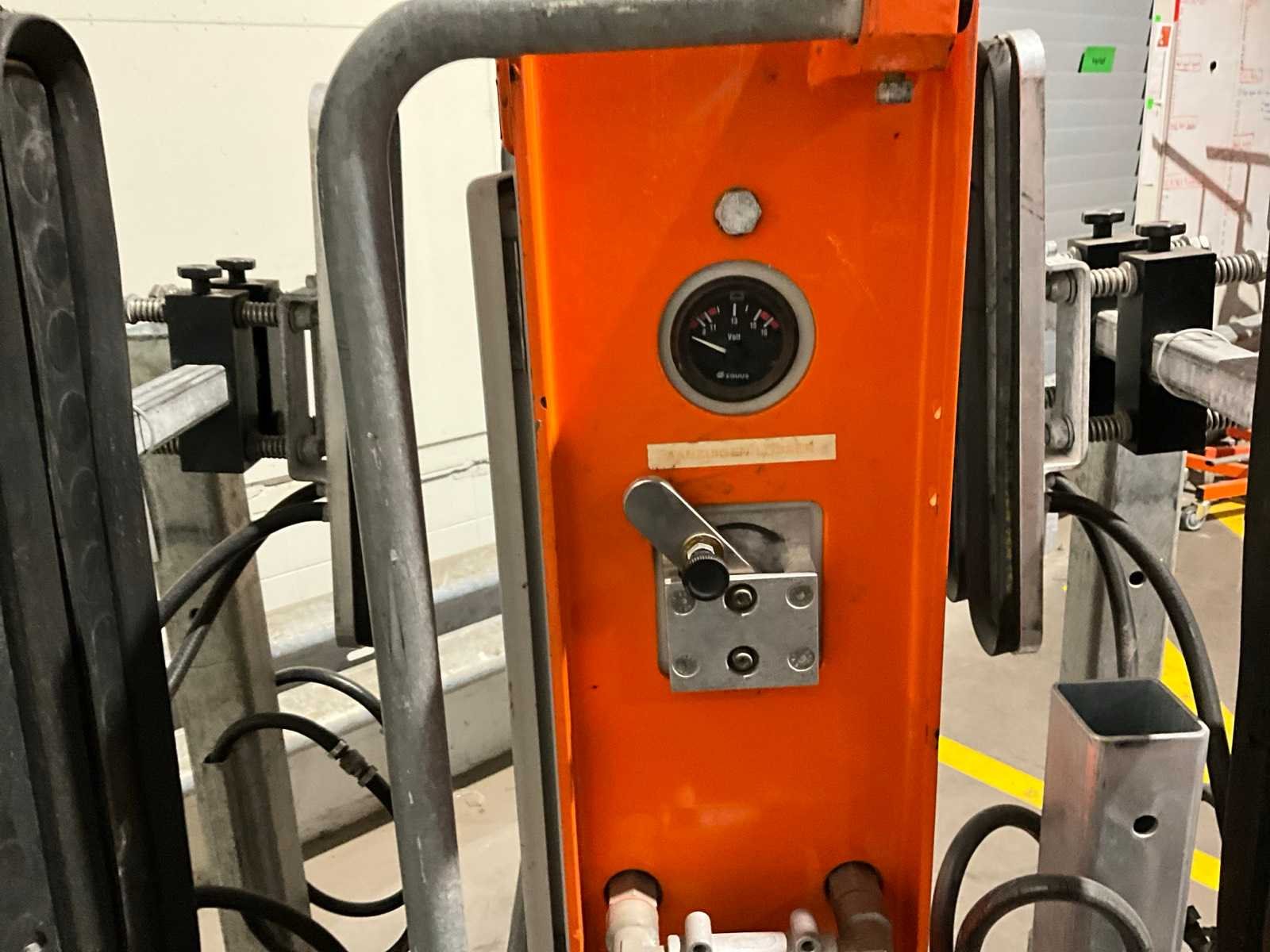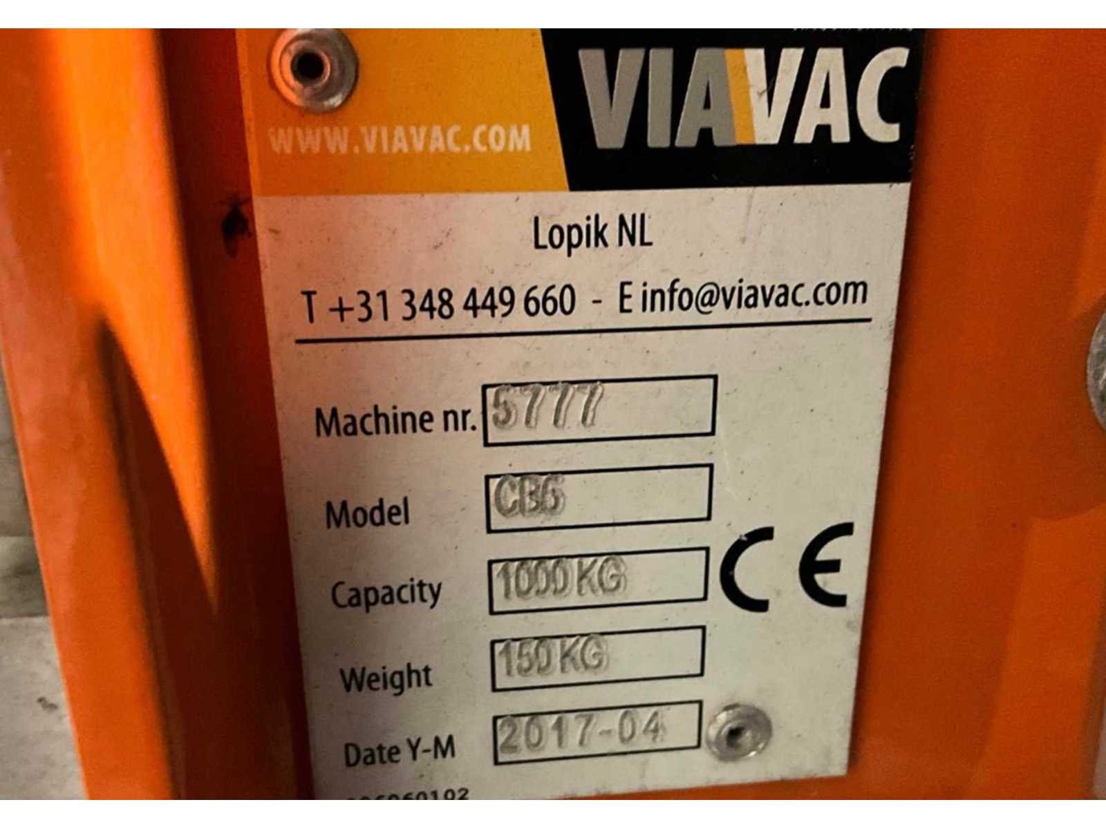 Hijsoog; 4x zuignap SP1-150x490 100 Kg; 8x zuignap SP1-90x545 60 Kg, gegalvaniseerd staal transport frame; 4x snelkoppeling luchtslang; working condition; Nee Merk: Viavac Type: Cladboy CB5 Bouwjaar: 2017 Serienummer: 5777 Hijsvermogen: 1000kg Eigen gewicht: 150kg Totale afmeting L: 1150mm Totale afmeting Breedte: 950mm Totale afmeting Hoogte: 1750mm