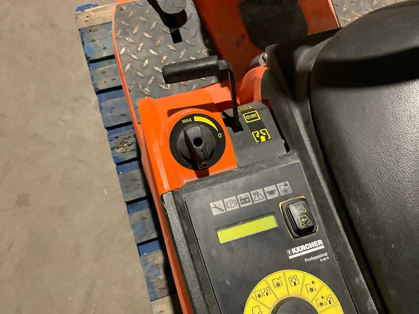 Schoon en vuil water tank; ingebouwde lader; rij motor slecht; zuigbalk ontbreekt; filter defect; not working; Nee Merk: Kärcher Professional Type: B90R Bouwjaar: 2018 Serienummer: 010042 Werkbreedte: 600mm Elektrisch: true Aansluiting: 24V Accu lader: true Oplaadbaar: true Totale afmeting L: 1400mm Totale afmeting Breedte: 650mm Totale afmeting Hoogte: 1200mm