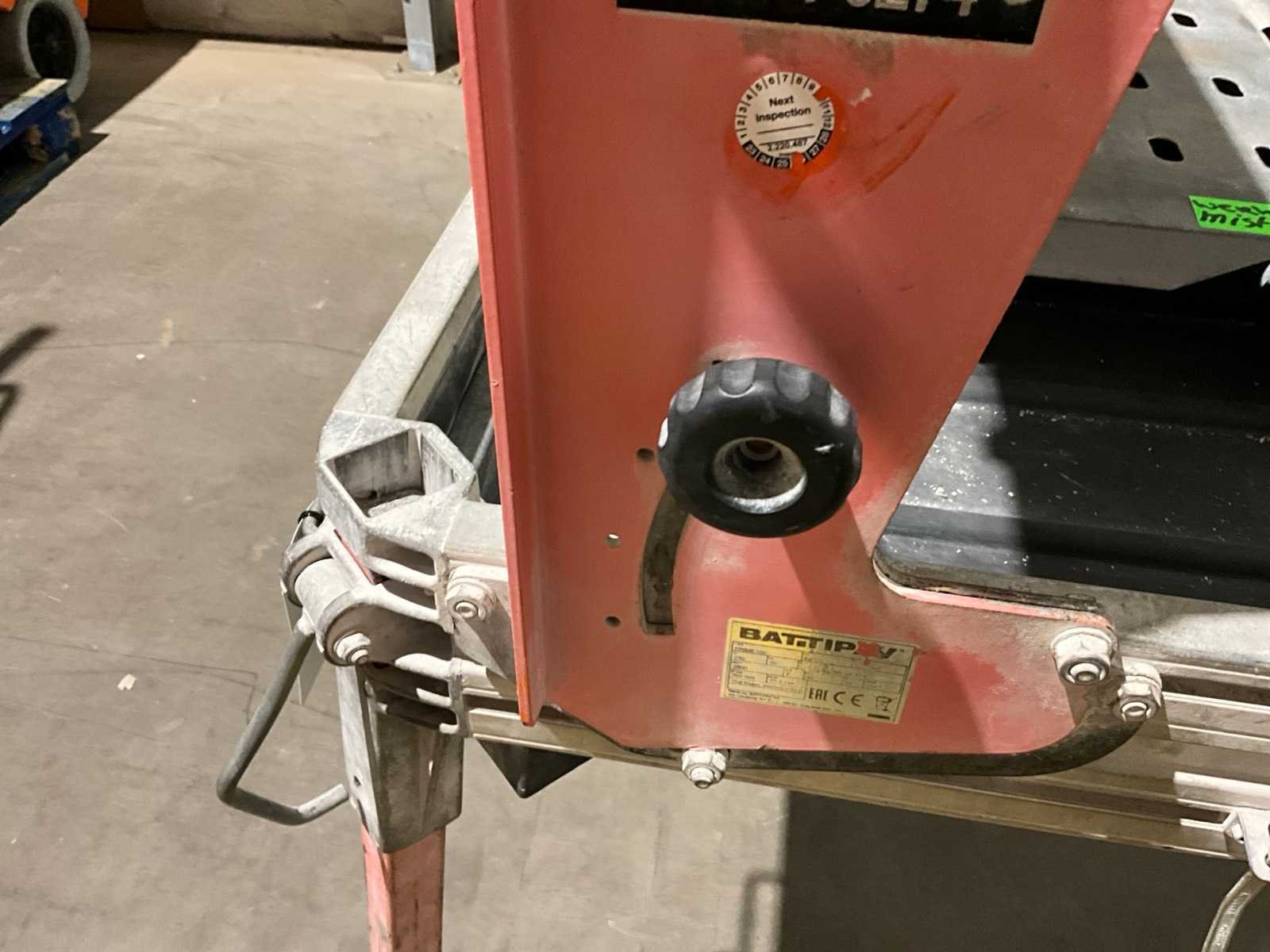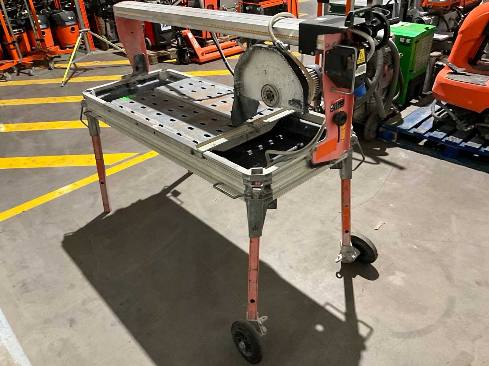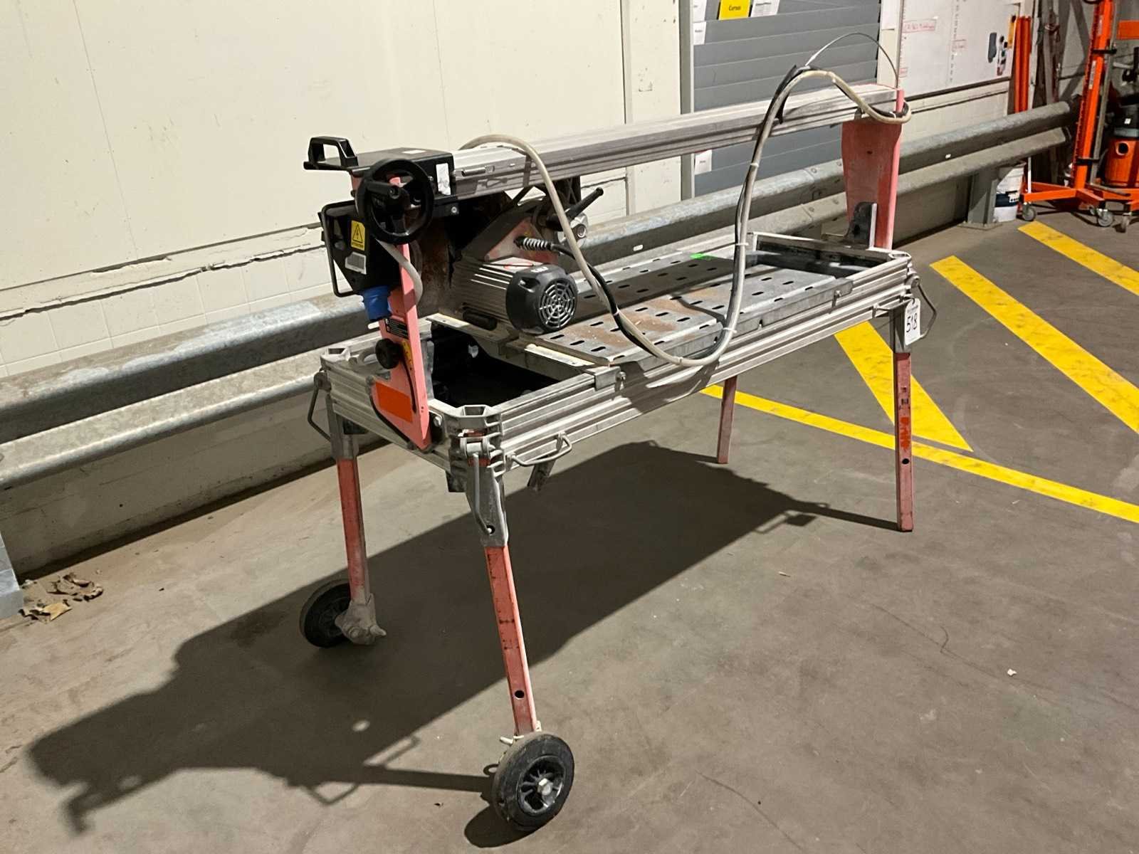 Verrijdbaar; demontabel onderstel; watergekoeld; schuin instelbaar; zaagblad; toepassing; plavuizen / vensterbabken / marmer / grindtegels / kalkzandsteen / steen / beton / natuursteen / keramische tegels; 2200 Watt; zaagbladkap ontbreekt; working condition; Nee Merk: Battipav Type: Prime 100 Bouwjaar: 2017 Serienummer: 0251435 Zaagblad Ø: 350mm Schuin instelbaar: true Aansluiting: 230V Totale afmeting L: 1550mm Totale afmeting Breedte: 800mm Totale afmeting Hoogte: 1520mm